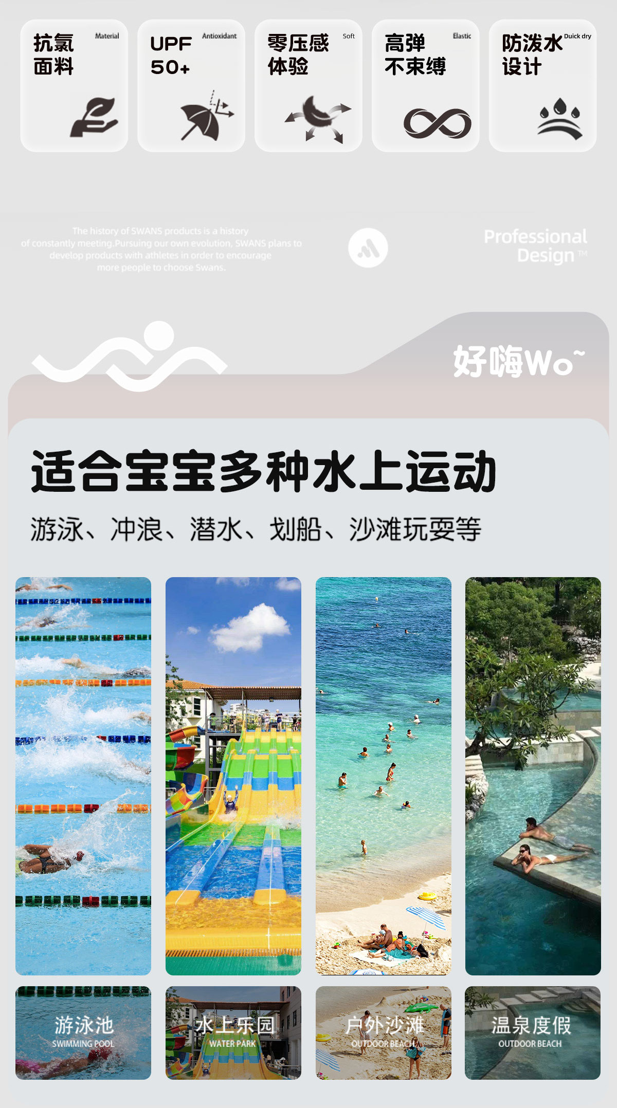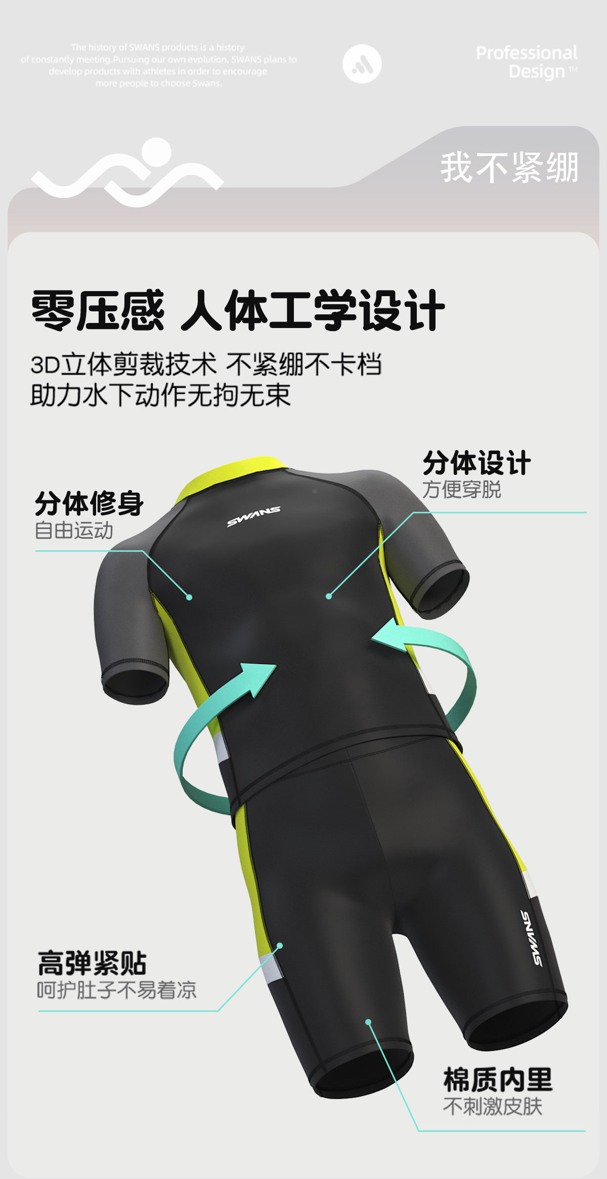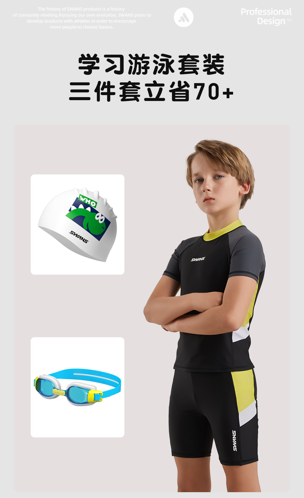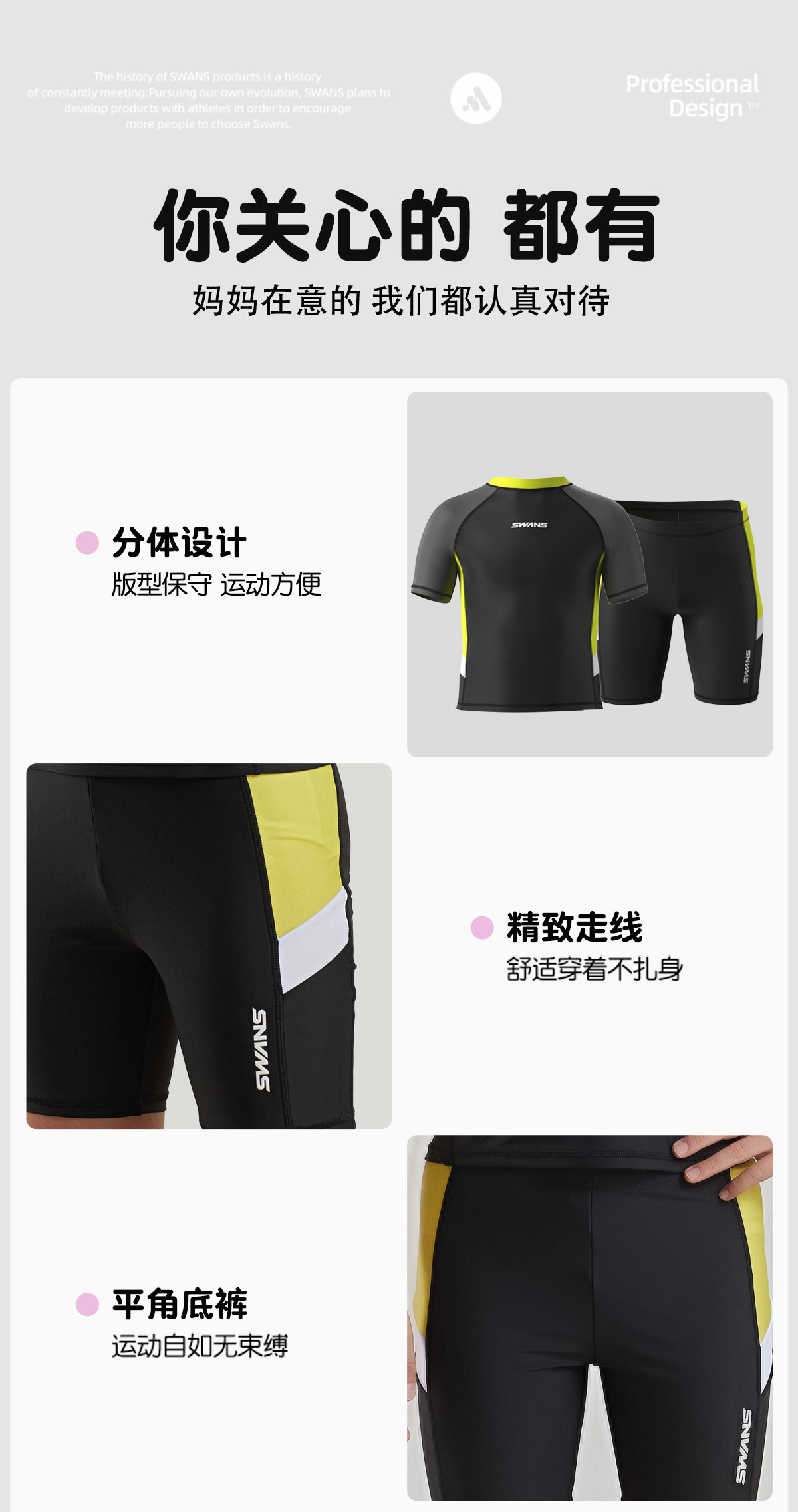 swans儿童泳衣男孩分体速干专业防晒2025新中大童男童青少年游泳