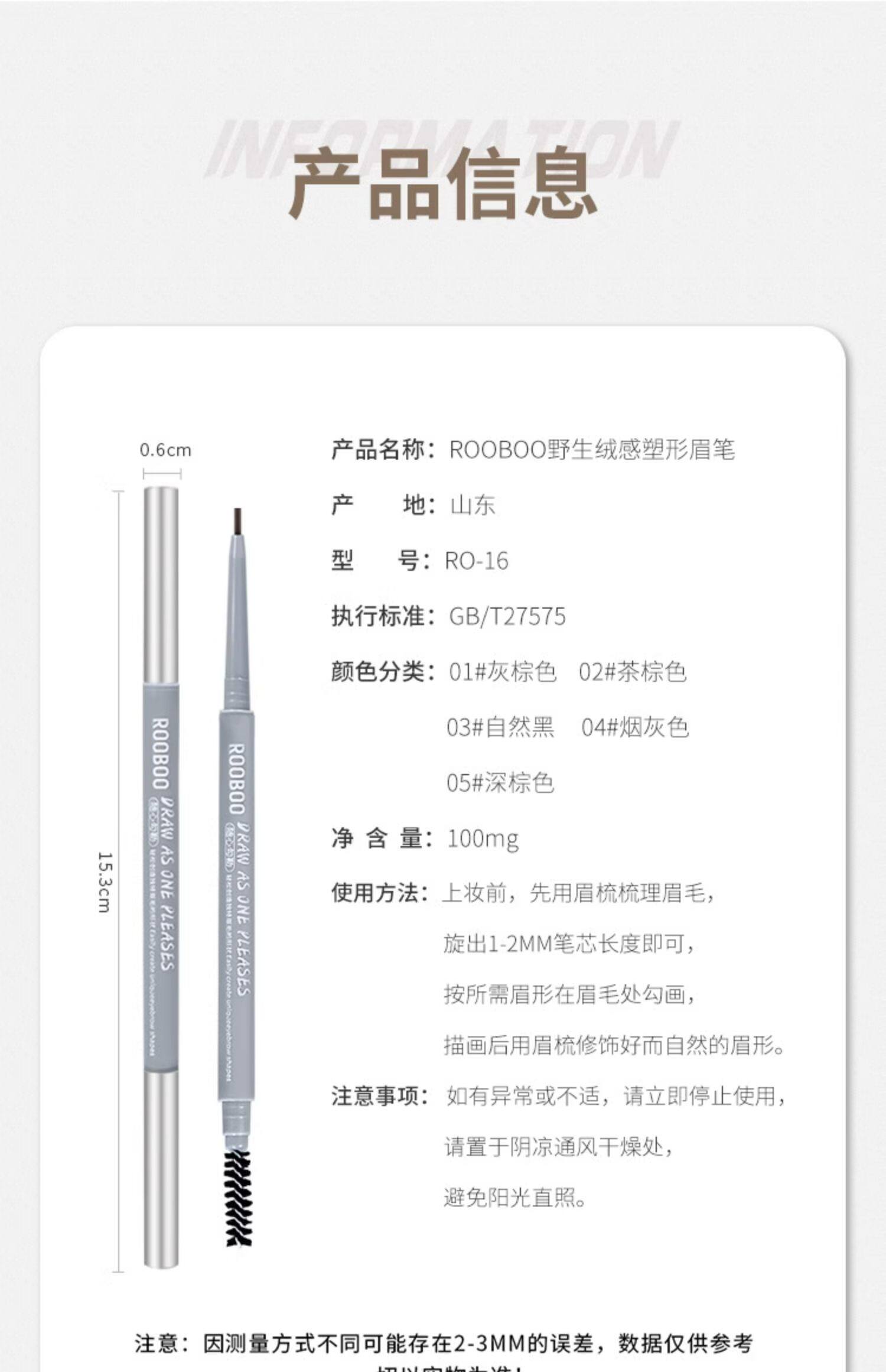 Product Name ROOBOO wild velvet shaping eyebrow pencil 01 gray brown