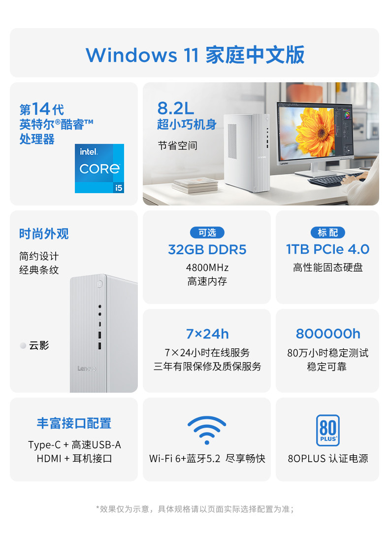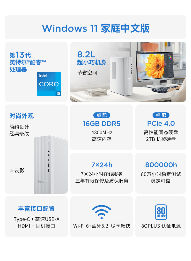 颜色分类 【小新台式机】i5-13420H | 集显 | 16G | 1TB固态,【小新台式机】i7-13620H | 集显 | 16G | 1TB固态,【510s】i7-14700 | 集显 | 16G | 1TB固态,【510s】i7-14700 | 集显 | 32G | 1TB固态,【510s尊享版】i3-14100 | 16G | 512G固态,【510s⭐】i5-14400 | 集显 | 16G | 1TB固态,【510s尊享版】i5-13400 | 集显 | 16G | 512G固态,【510s尊享版⭐】i3-14100 | 集显 | 8G DDR5 | 512G固态,【510s尊享版】i5-14400 | 16G | 512G固态,【510s尊享版】i5-14400 | 集显 | 16G DDR5 | 1TB固态,【510S尊享版⭐】i5-14400 | 16G DDR5 | 2TB HDD+512G SSD,【510s尊享版】i5-14400 | 32G DDR5 | 1TB固态,【510s尊享版】i7-14700 | 16G DDR5 | 1TB固态,【510s尊享版】i7-14700 | 32G DDR5 | 1TB固态,【510S尊享版】i7-14700 | 32G DDR5 | 2TB HDD+512G SSD,【510Pro】i5-14400 | 16G | 1TB固态,【510Pro⭐】i5-14400 | 16G | 2TB HDD+512G SSD,【510Pro⭐】i5-14400 | 32G | 1TB固态,【510Pro】i7-14700 | 32G |2TB HDD+512G SSD,【510Pro尊享版】Ultra 5 225 | 16G | 1TB 固态,【510Pro尊享版】Ultra 5 225 | 32G | 1TB固态,【510Pro尊享版】Ultra 7 265 | 32G | 1TB 固态,【小新台式机】Ultra3 205 | 16G | 1T固态,【小新台式机】Ultra5 225 | 16G | 1T固态,【小新台式机】Ultra5 225 | 16G | 2TB HDD+512G SSD,【小新台式机】Ultra5 225 | 32G | 1T固态,【小新台式机】Ultra7 265 | 32G | 1T固态,【510s⭐】i5-13400 | 集显 | 16G | 512G固态,【510s】i3-14100 | 集显 | 16G | 512G固态