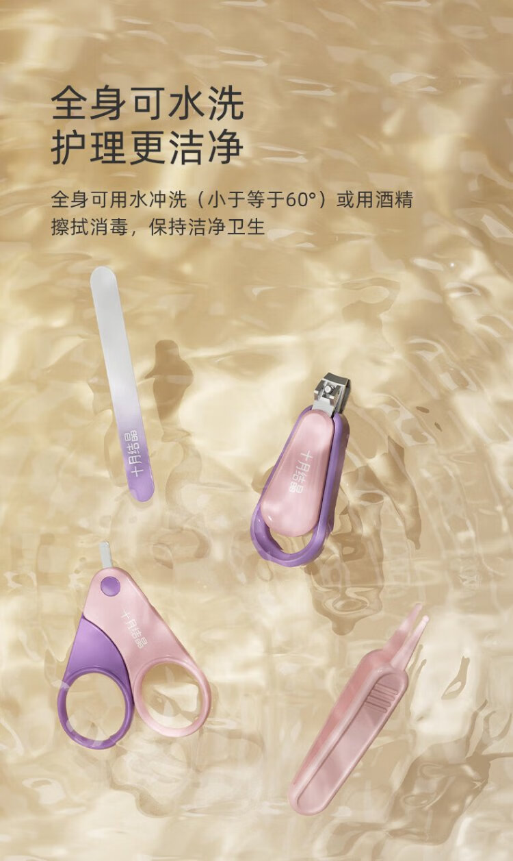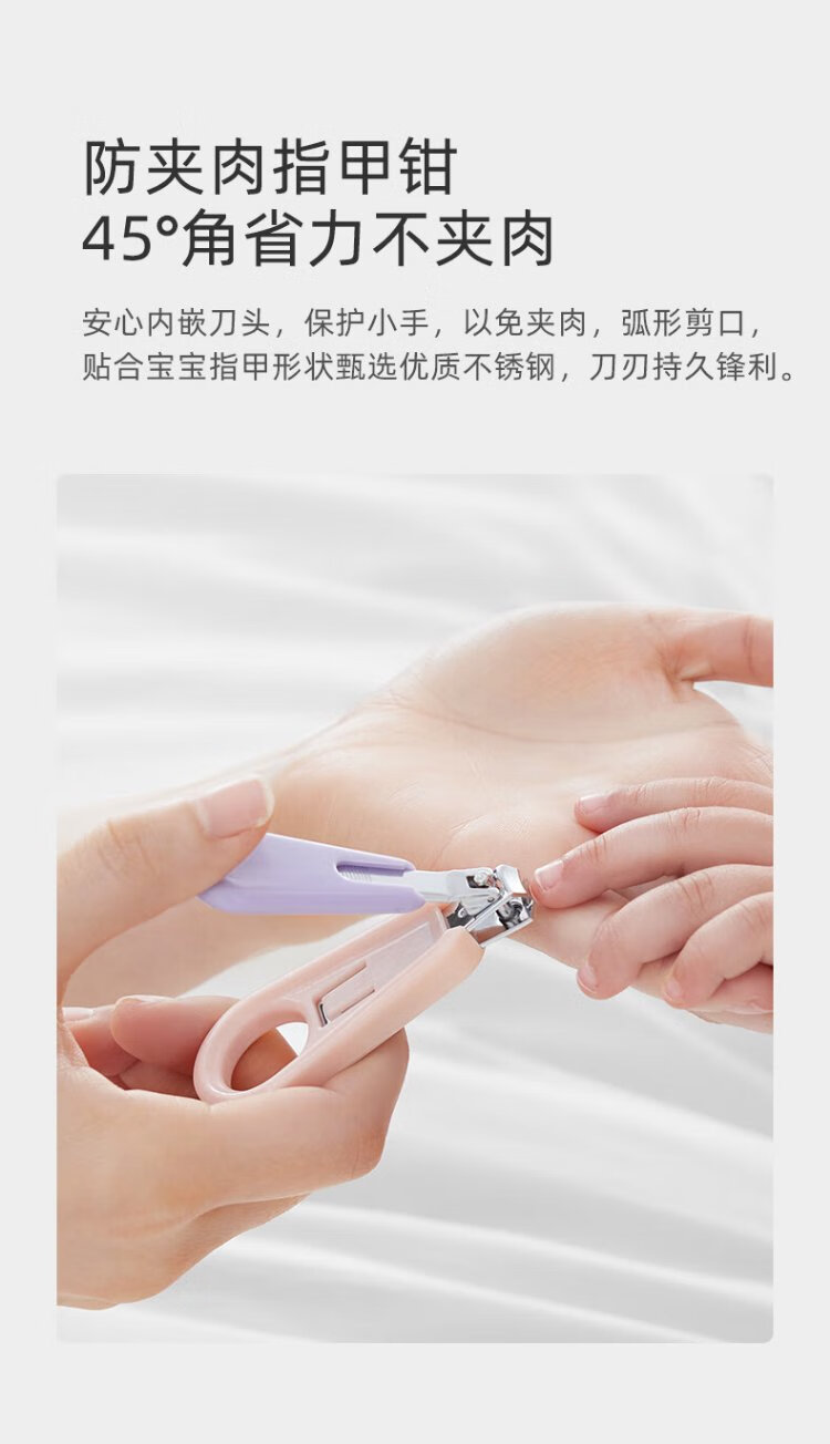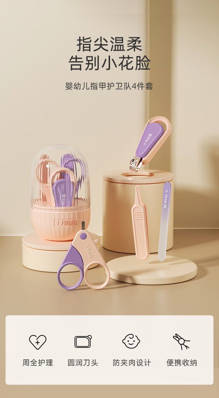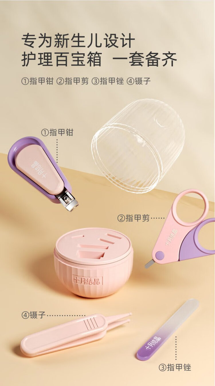 十月结晶 婴儿指甲剪套装 新生儿宝宝用幼儿儿童指甲钳防夹肉指 粉