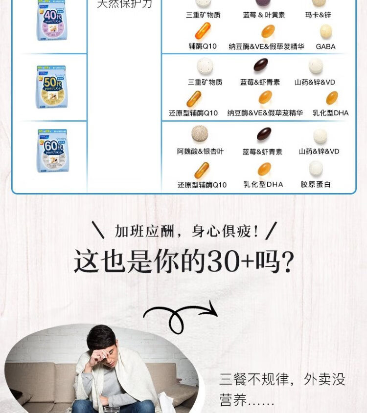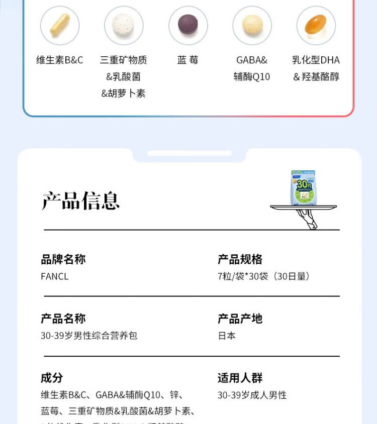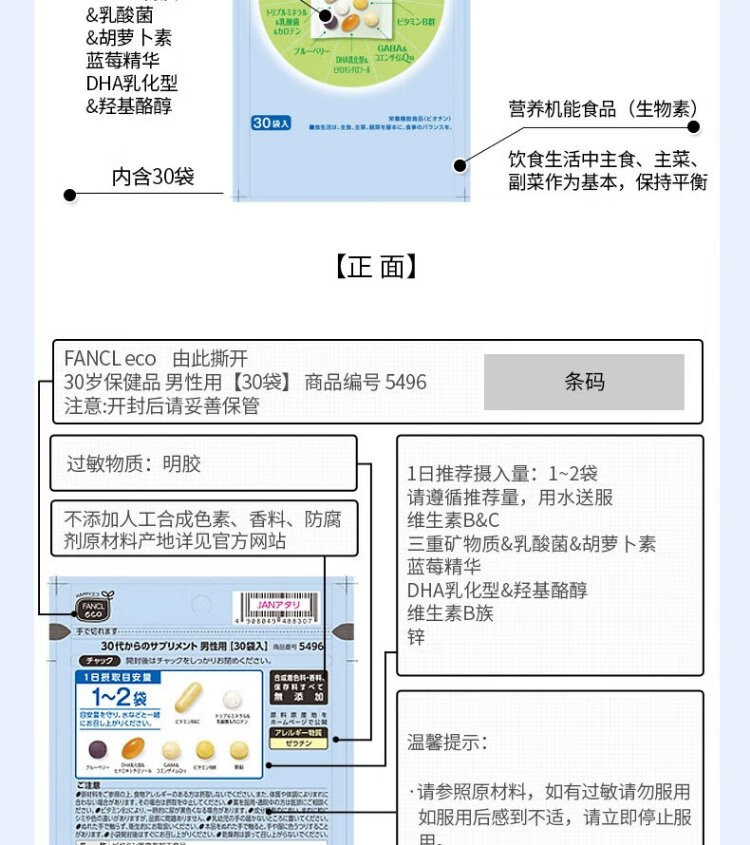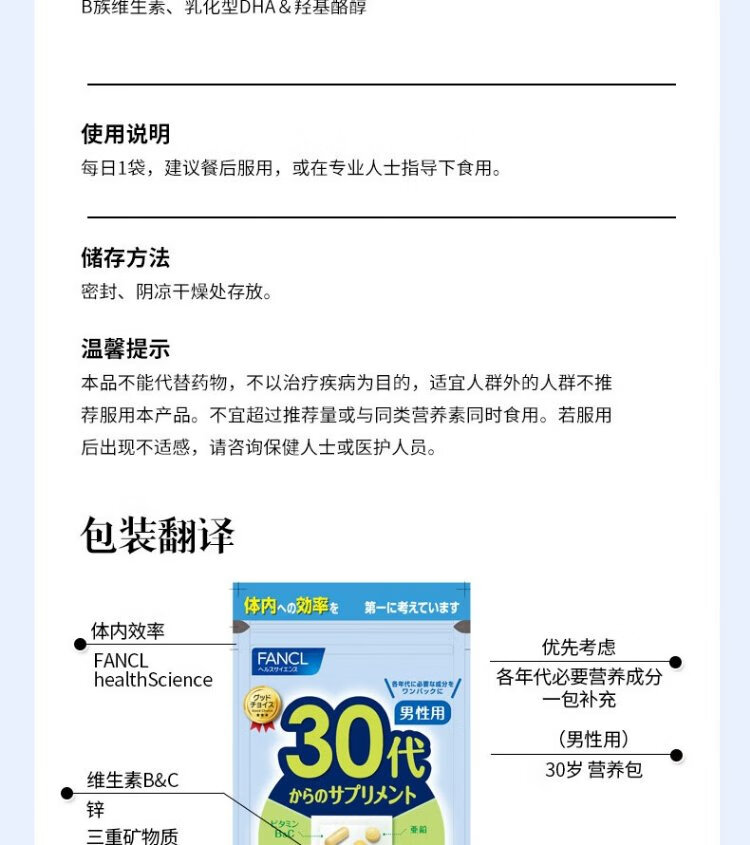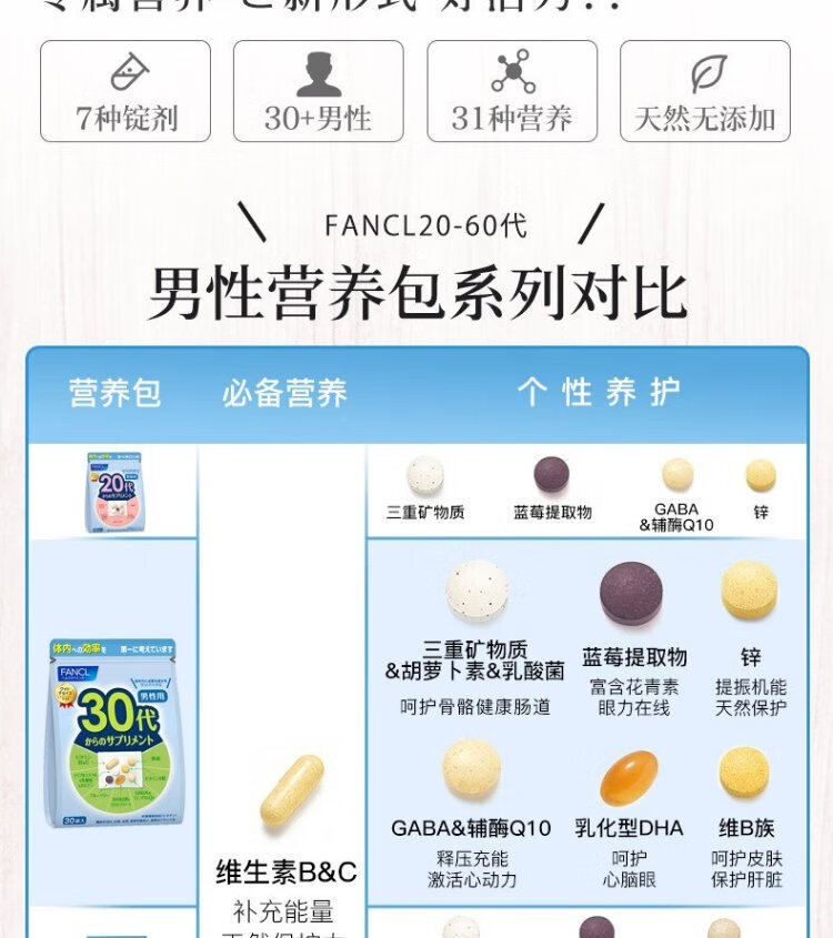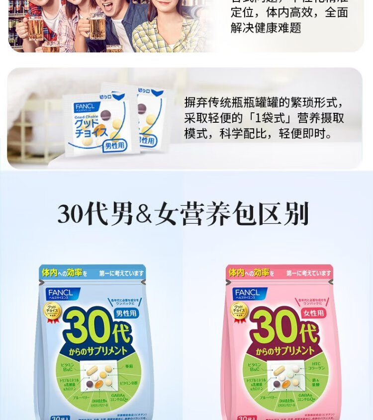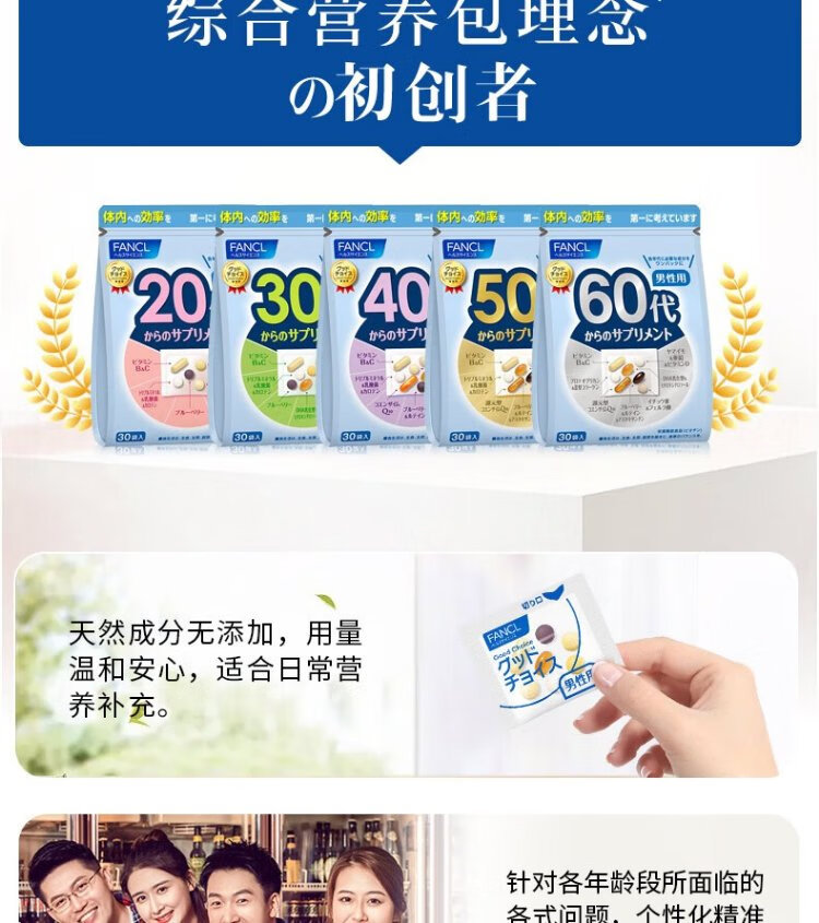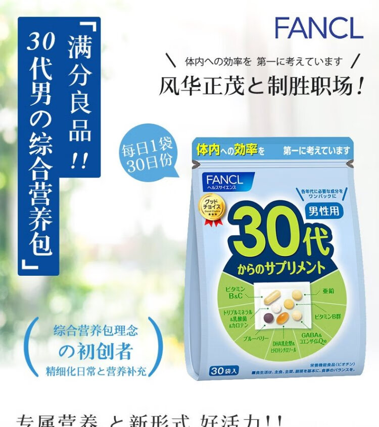 FANCL HealthScience Men's 30+ Daily Nutrition Pack 30-Day Quantity Multivitamin Zinc Coenzyme Q10 Relieves Fatigue and Boosts Energy