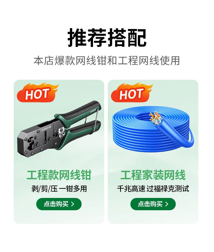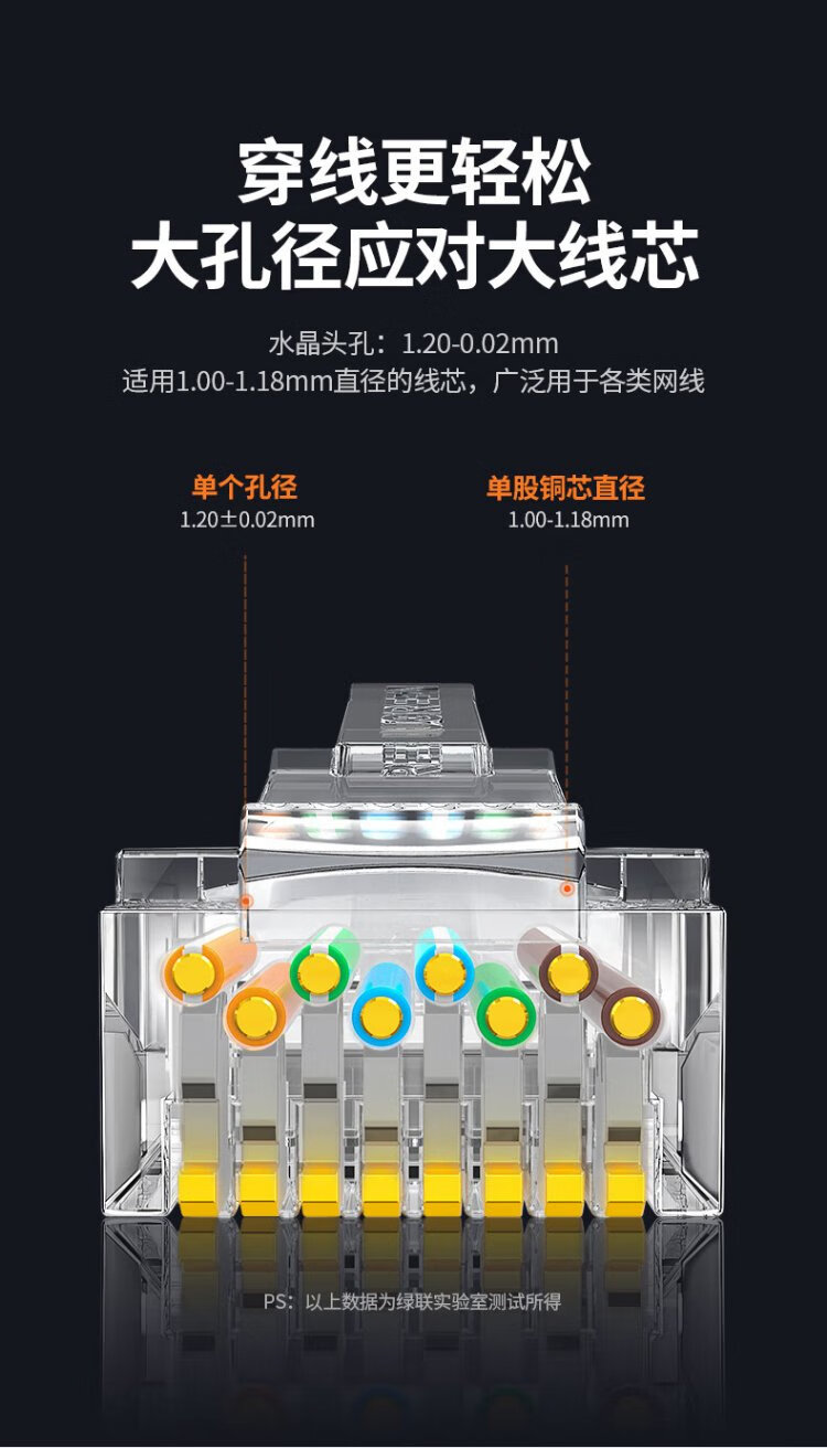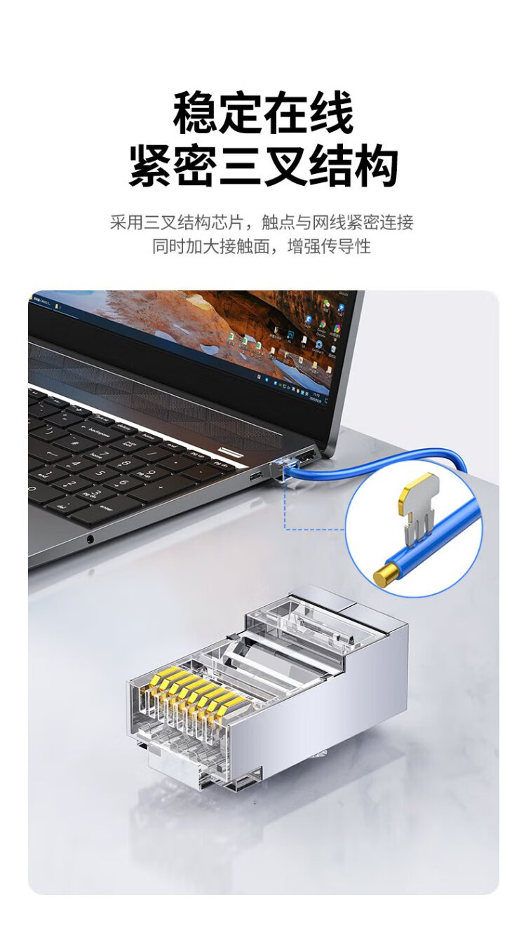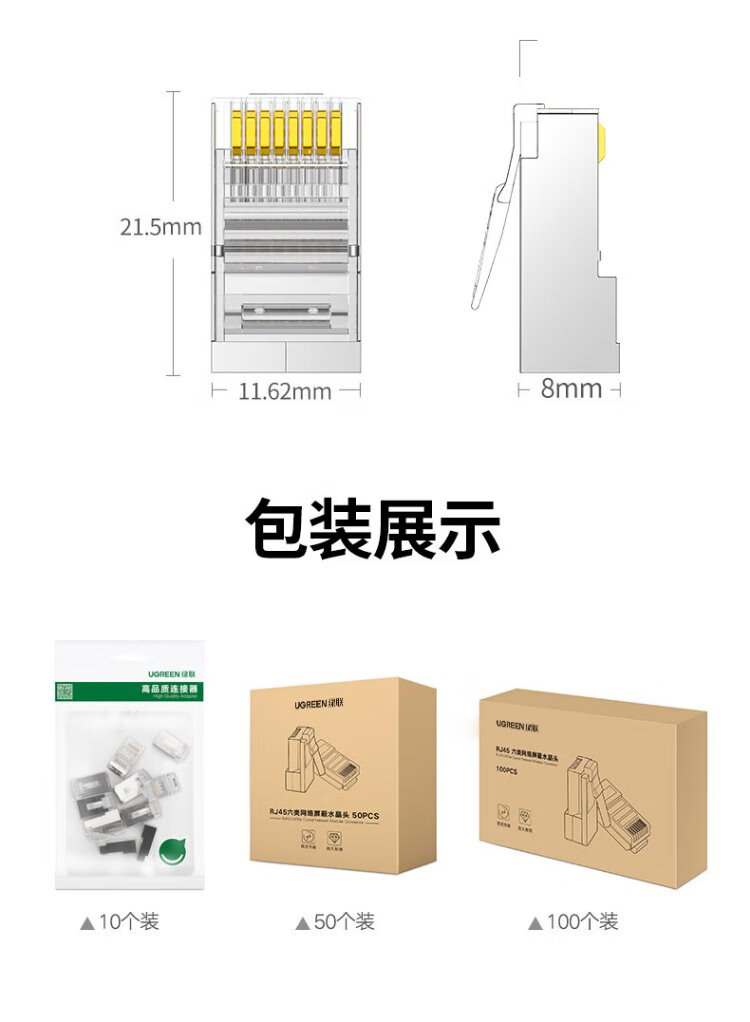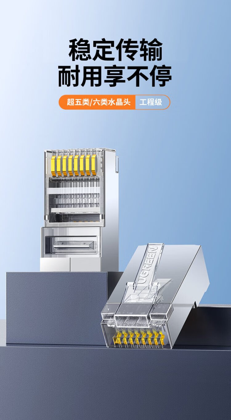 Greenlink Category 6 network cable shielded crystal head Category 6 Gigabit network connector Gold-plated engineering grade RJ45 computer network cable connector CAT6 crystal head 100 pieces 50248