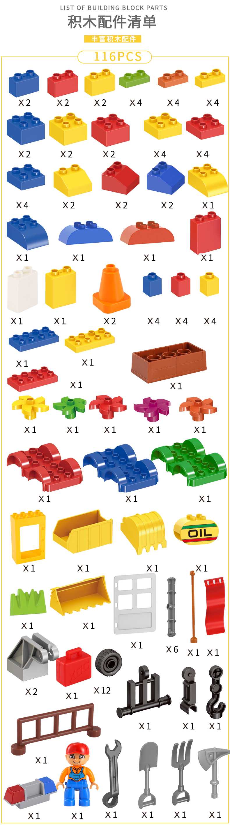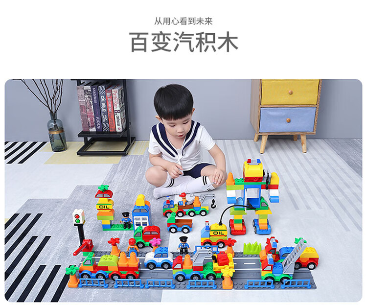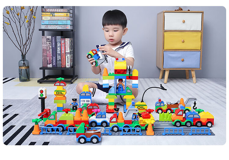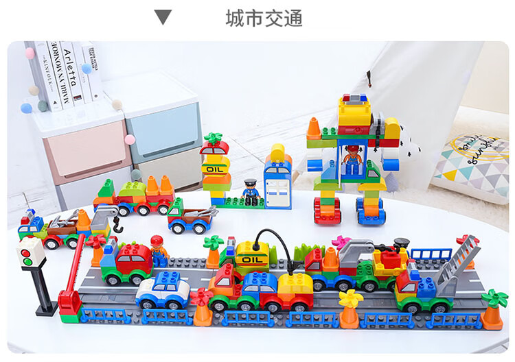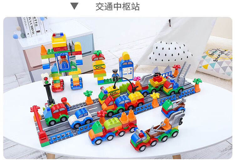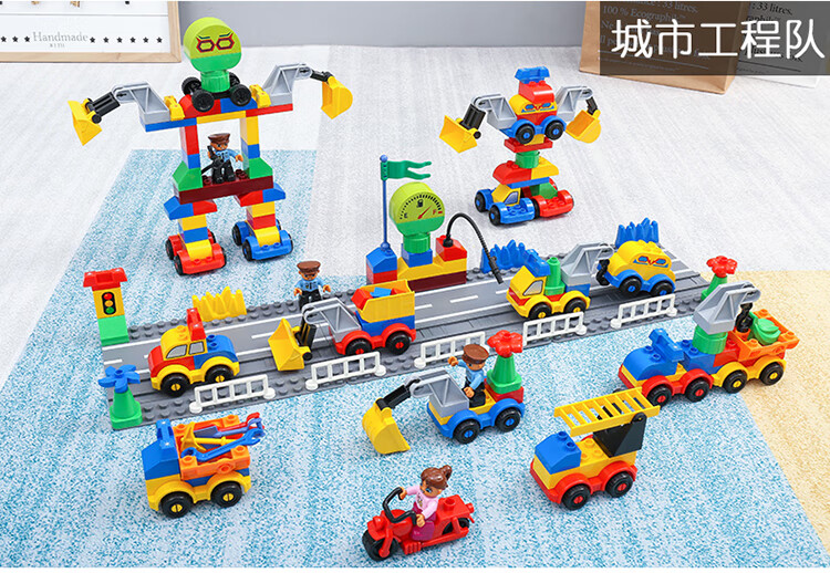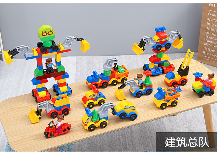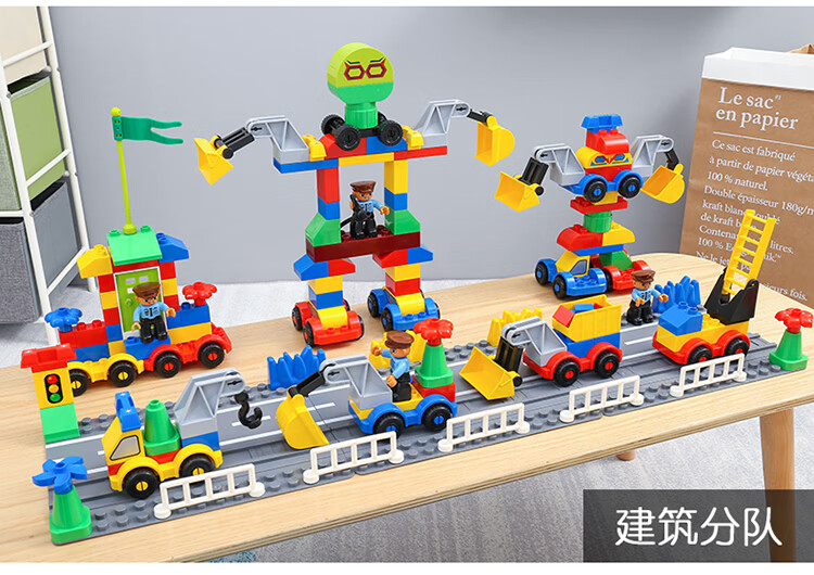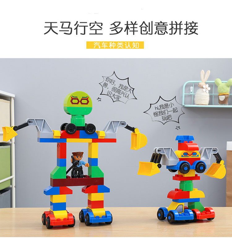 糖米儿童大颗粒汽车包积木城市交通百变拼插玩具3-6岁男孩女孩