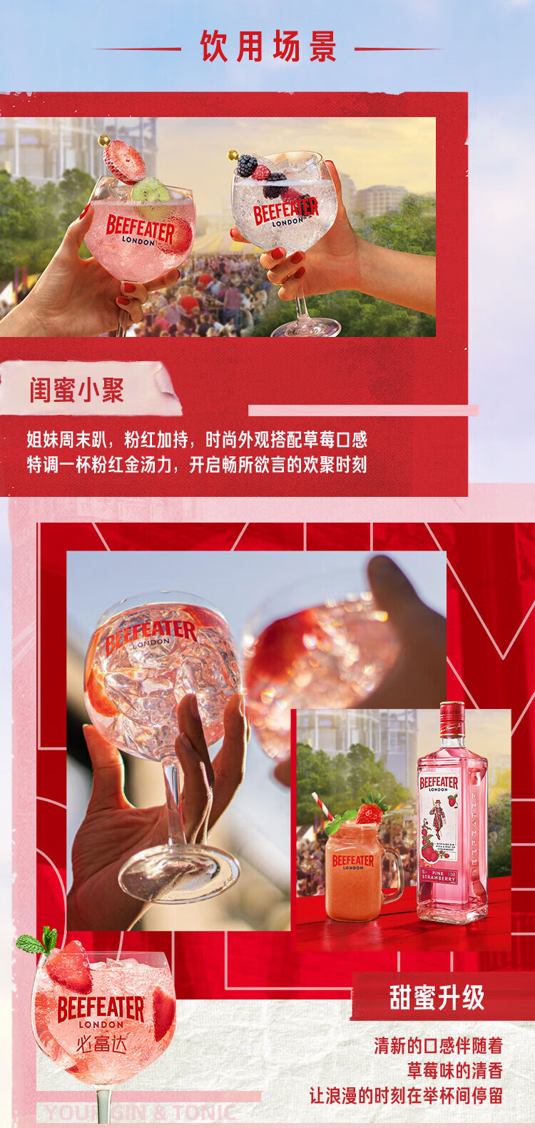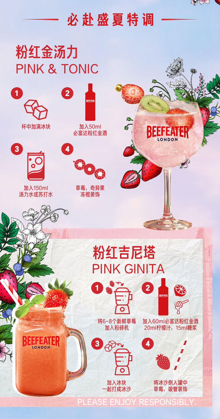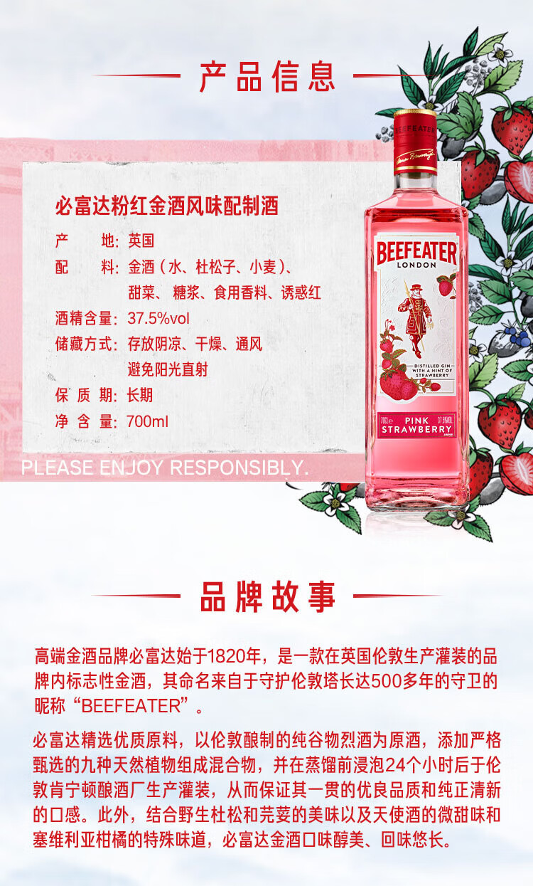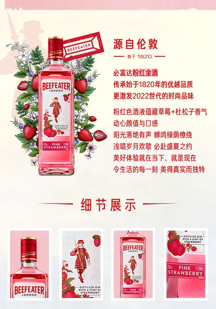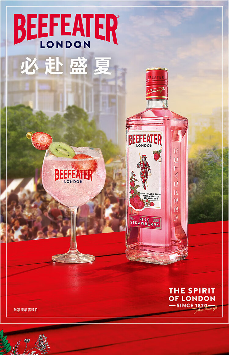 必富达(Beefeater)粉红金酒GIN琴酒杜松子 英国伦敦洋酒风味配制酒700ml