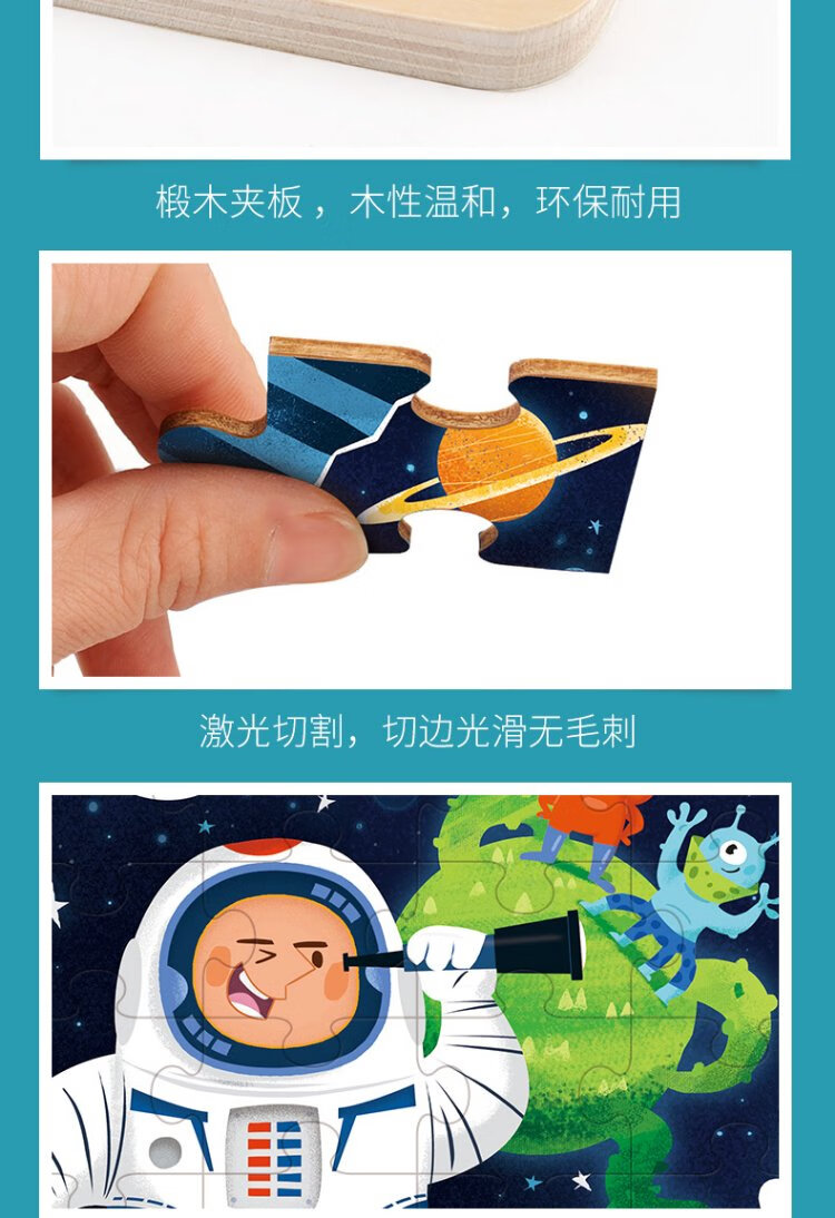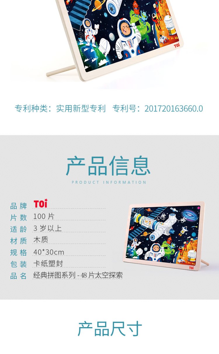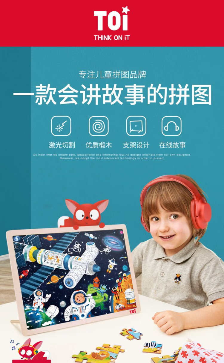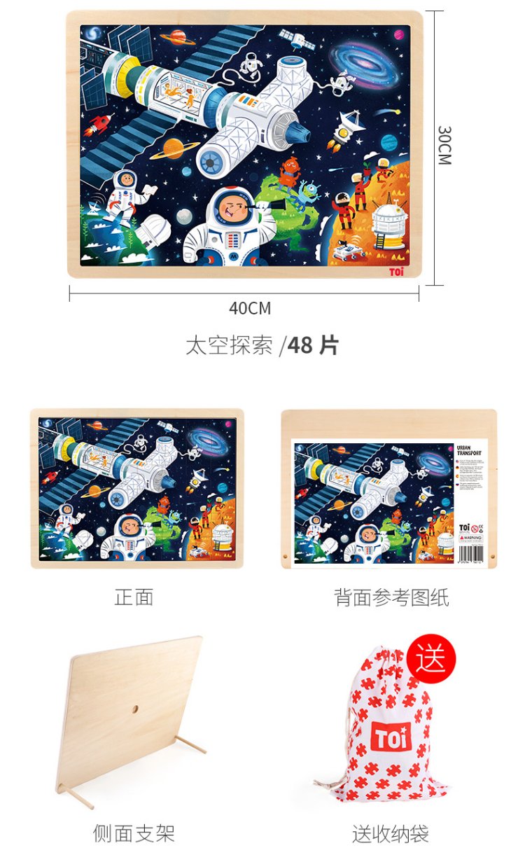 TOI Kindergeschichten-Puzzlespielzeug, frühe Bildung, Holzpuzzle, Brett, Jungen und Mädchen, Geschenke, 48 Teile, Weltraumforschung