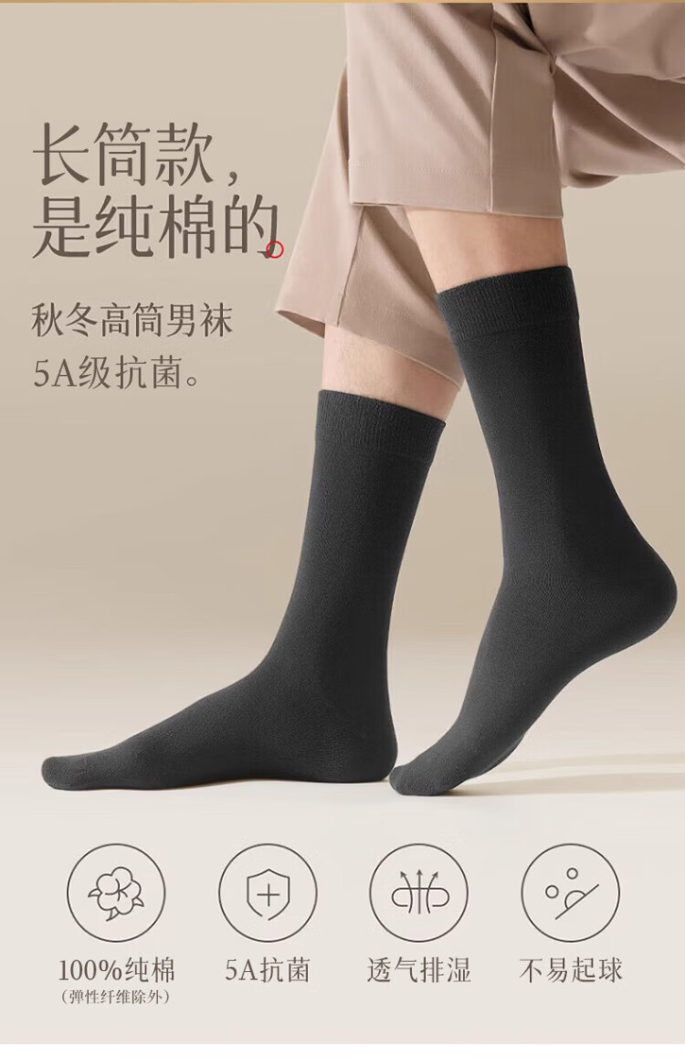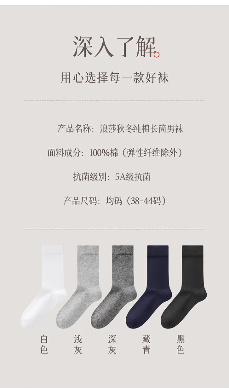 浪莎袜子男纯棉秋冬长袜抗菌防臭5A男士全棉长筒男袜皮鞋高筒袜共7双