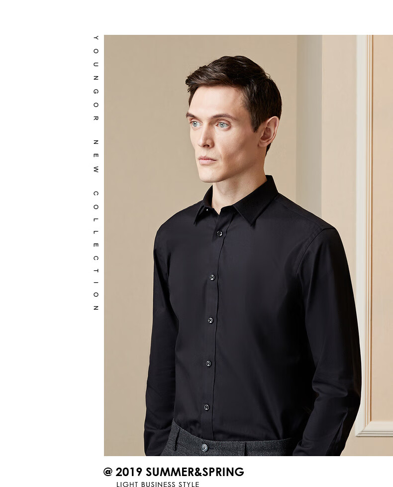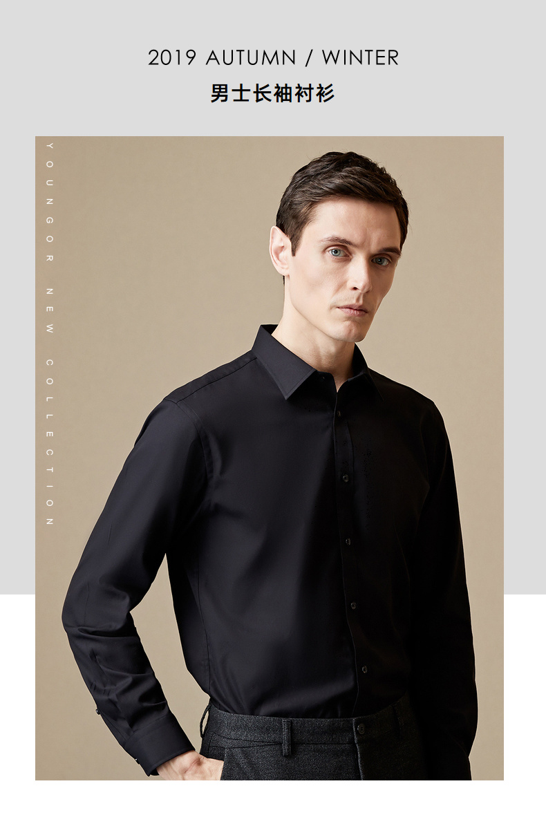 YOUNGOR (YOUNGOR) shirt men's four seasons young men's casual formal shirt GLDP16384AJA black 40