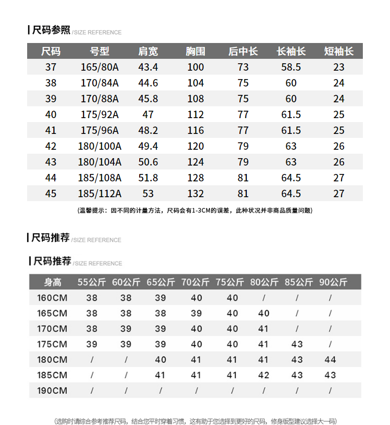 China (cm) 160-165/84-86 165-170 / 88-90 167-172 / 92-96 168-173 / 98-102 170-176 / 106-110
