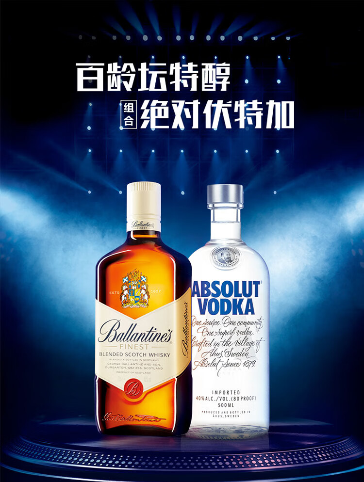 Ballantine's Extra 500ml + Absolut Vodka Original 500ml Whiskey + Vodka