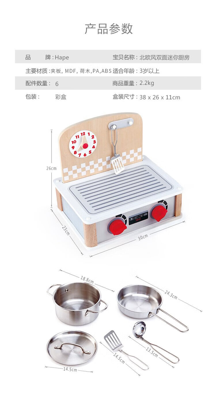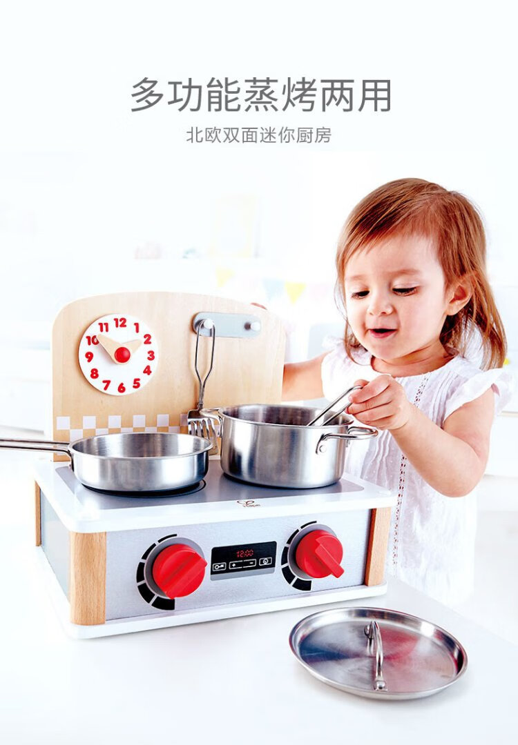 Hape (Alemania) juguetes de cocina para educación temprana para niños, casa de juegos, juguete de rol, cocina de doble cara de estilo nórdico E3151