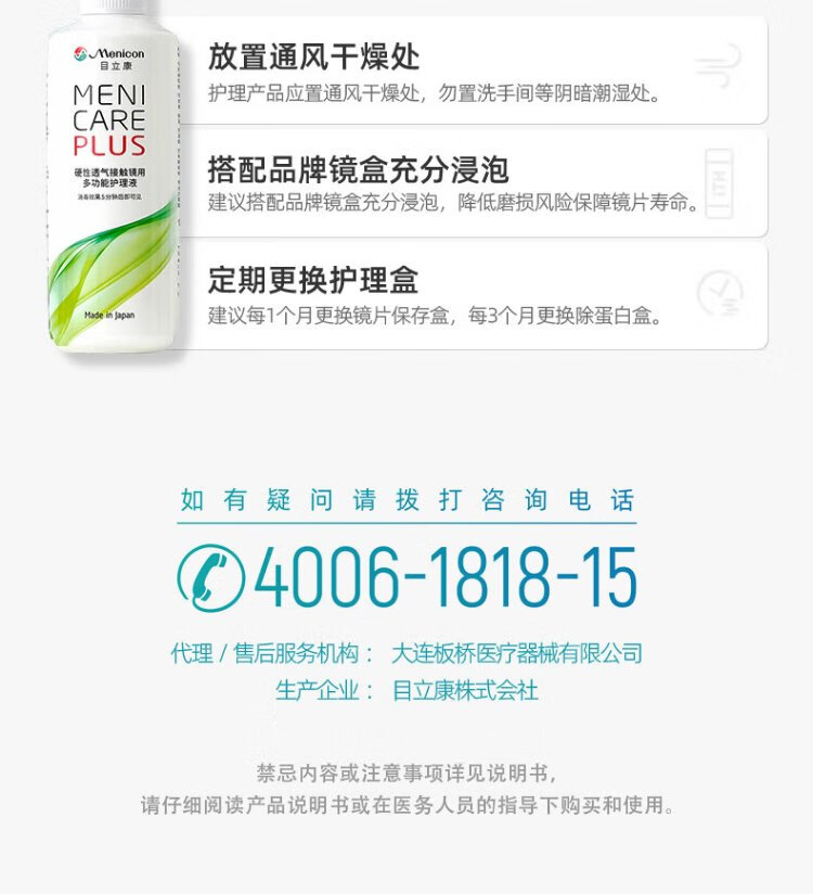 目立康(menicon)硬性角膜接触镜用多功能护理液ok镜RGP角膜塑形镜120ml