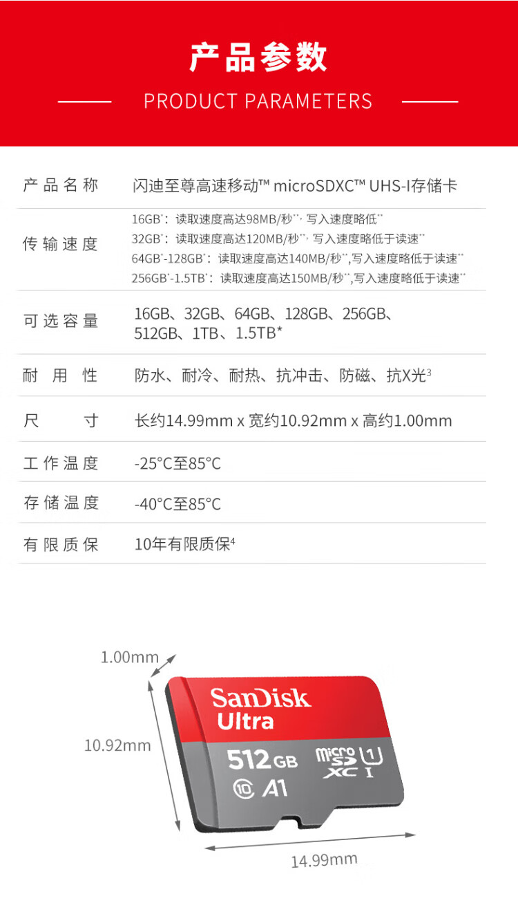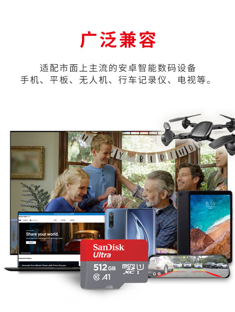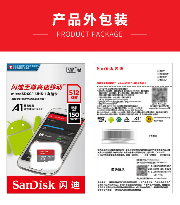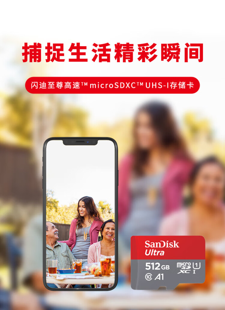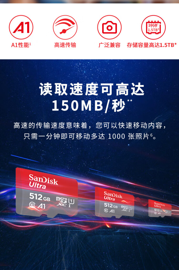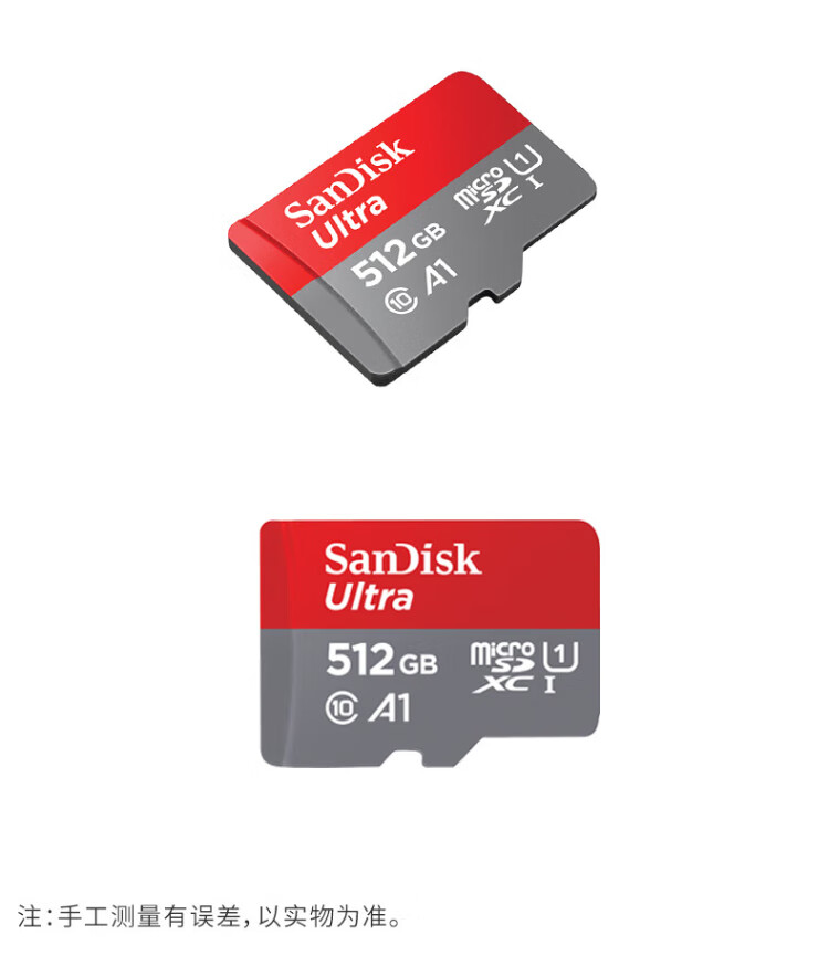 SanDisk 512GB TF (MicroSD) Memory Card A1 U1 C10 Extremely High-Speed Mobile Memory Card Reading Speed 150MB/s Mobile Phone Tablet Game Console Memory Card