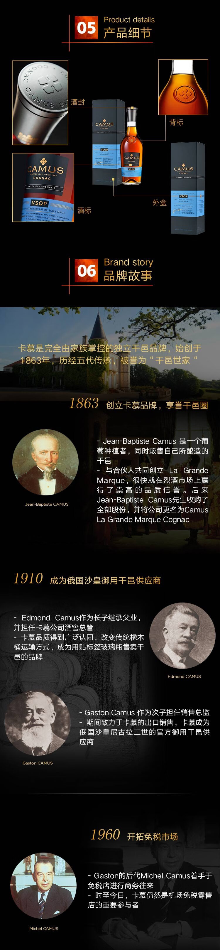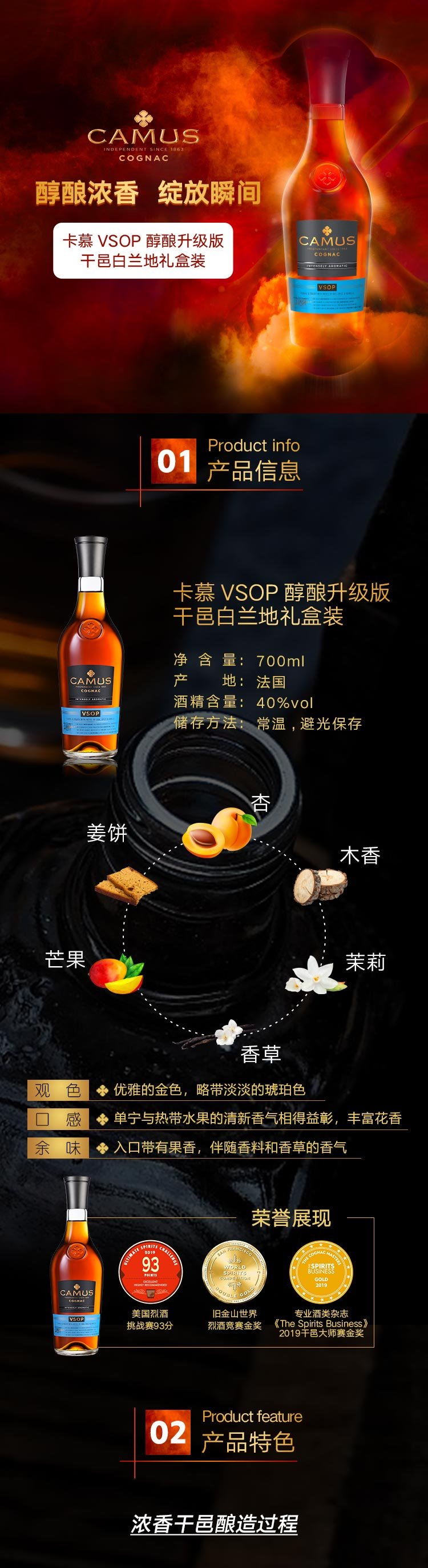 卡慕(CAMUS) VSOP醇酿升级版 700ml  法国原装 干邑白兰地洋酒 40度