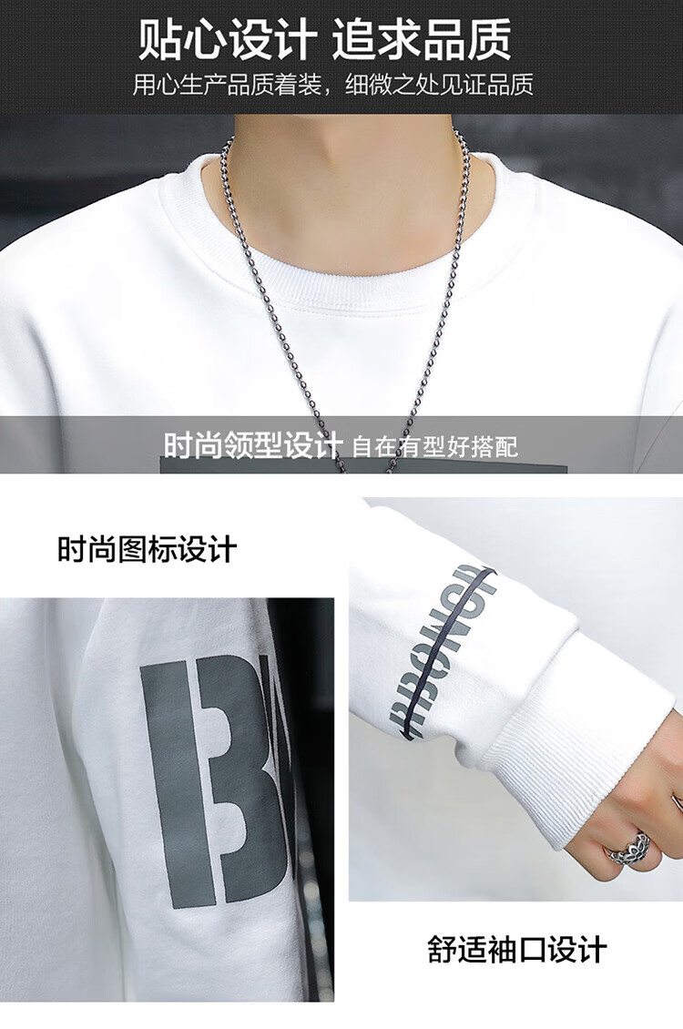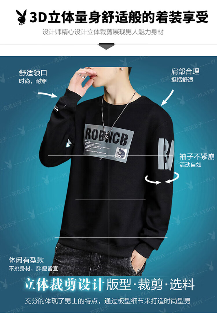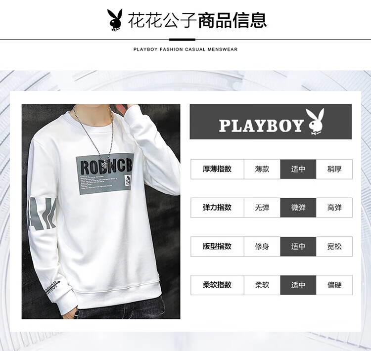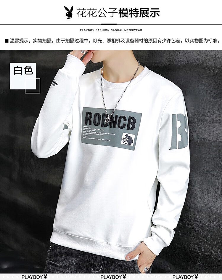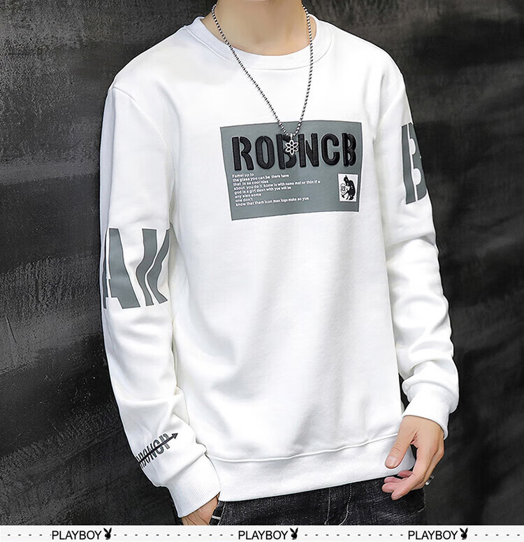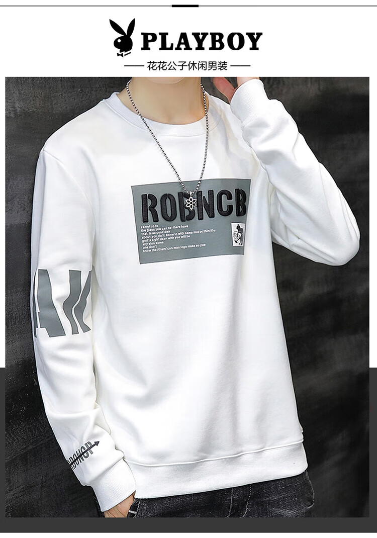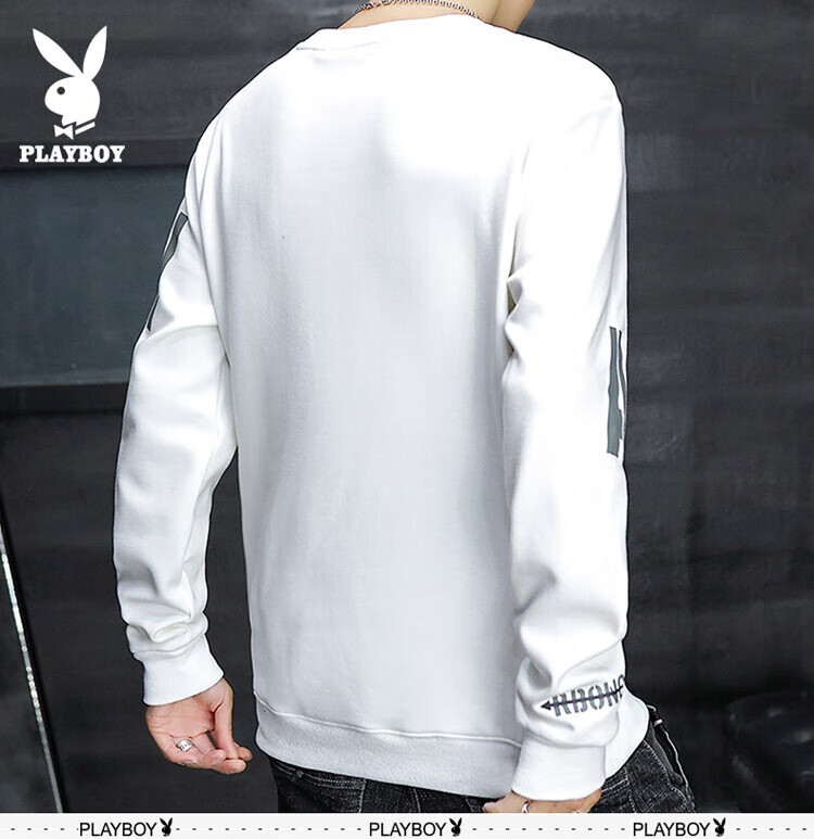 花花公子(PLAYBOY)卫衣男秋冬季长袖T恤男士外套休闲上衣服潮流男装 白色 XL