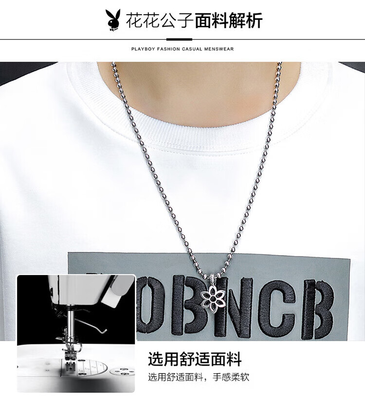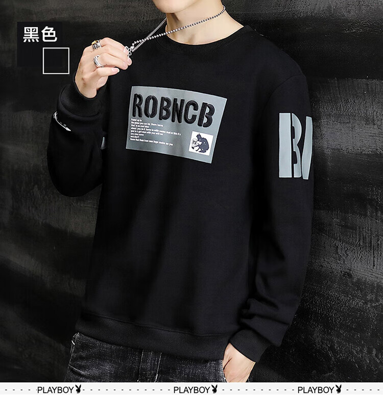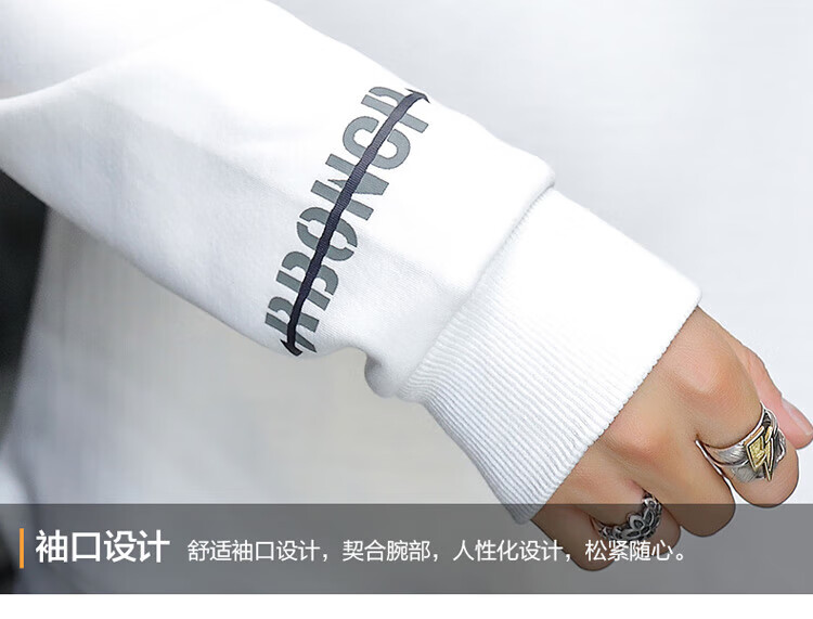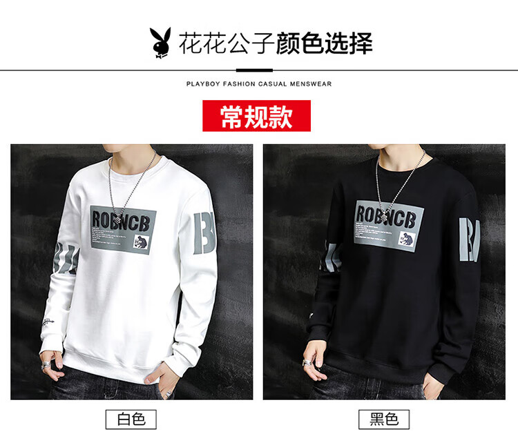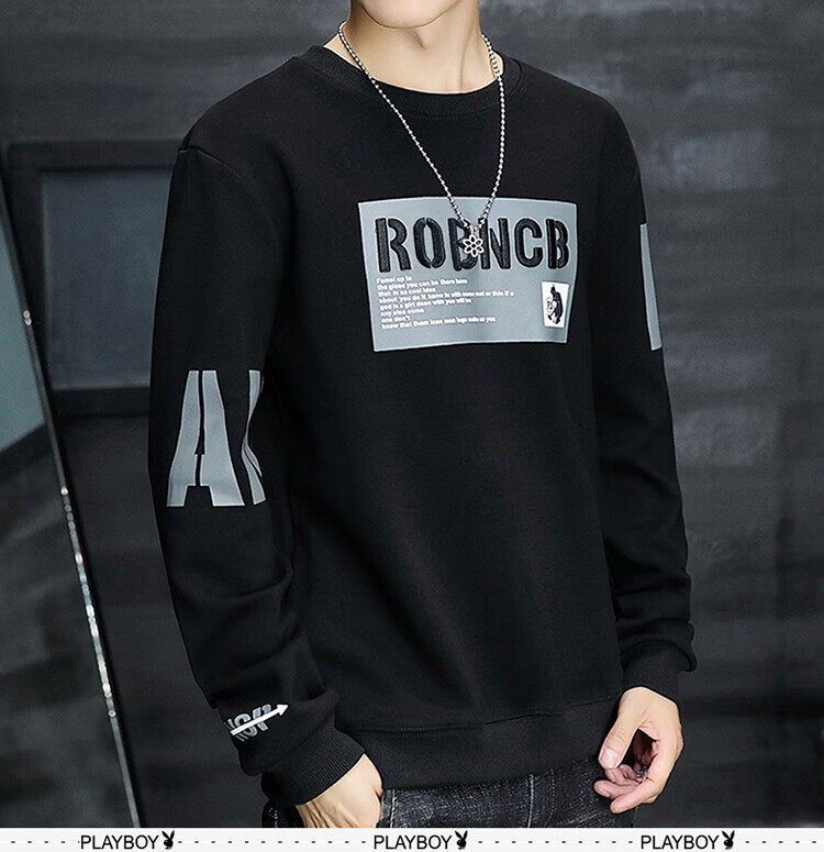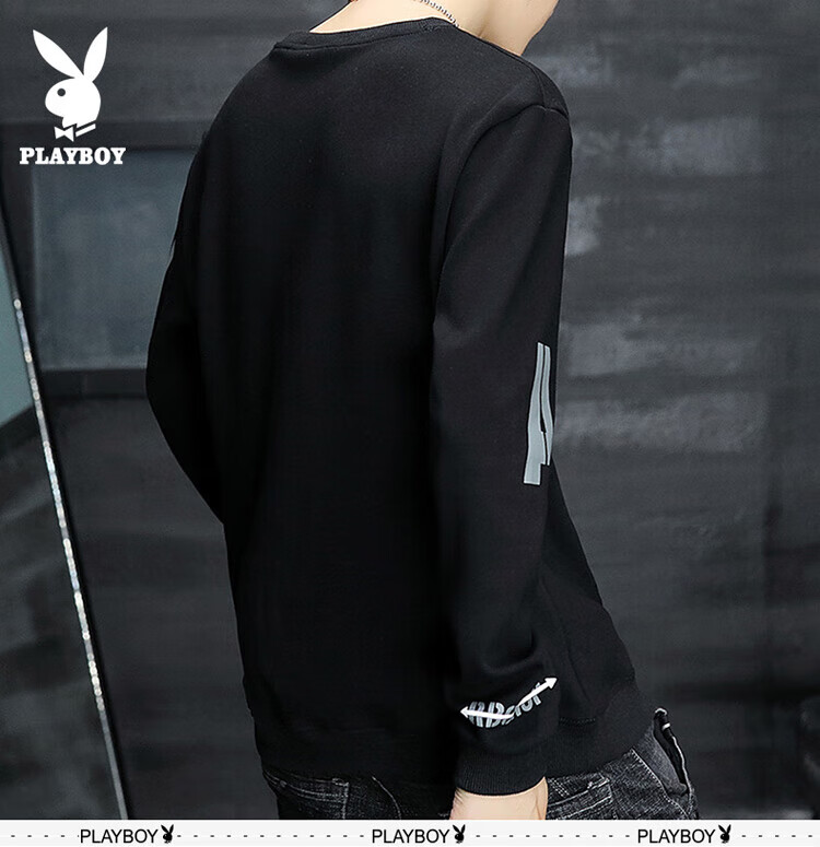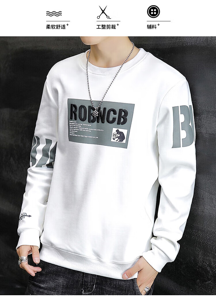 花花公子(PLAYBOY)卫衣男秋冬季长袖T恤男士外套休闲上衣服潮流男装 白色 XL