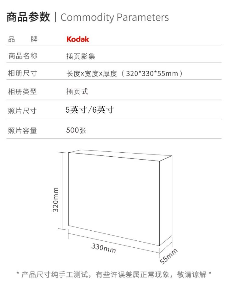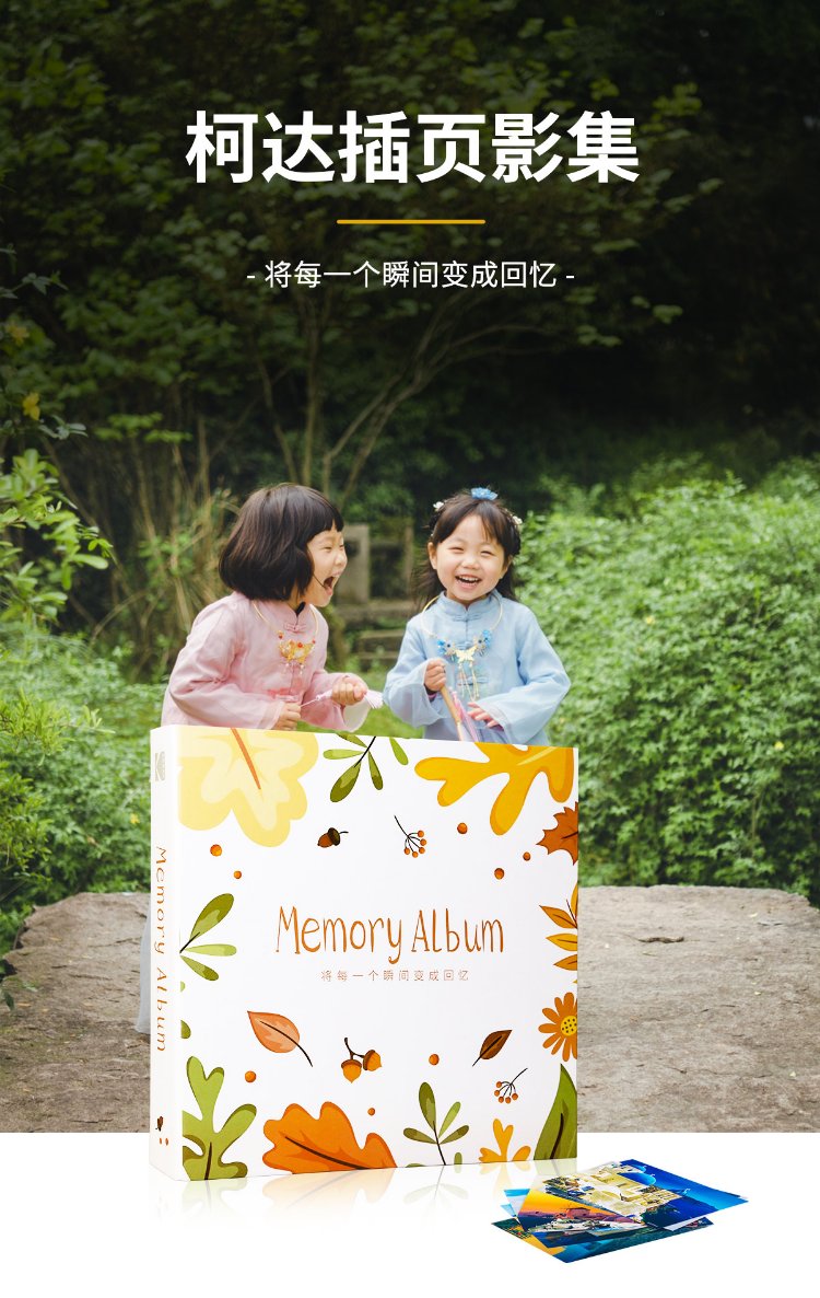 Kodak柯达相册簿插页式5英寸6英寸混装大容量影集18英寸家庭宝宝情侣纪念册装500张9891-193拾光回忆