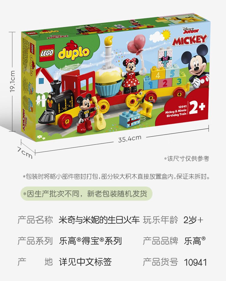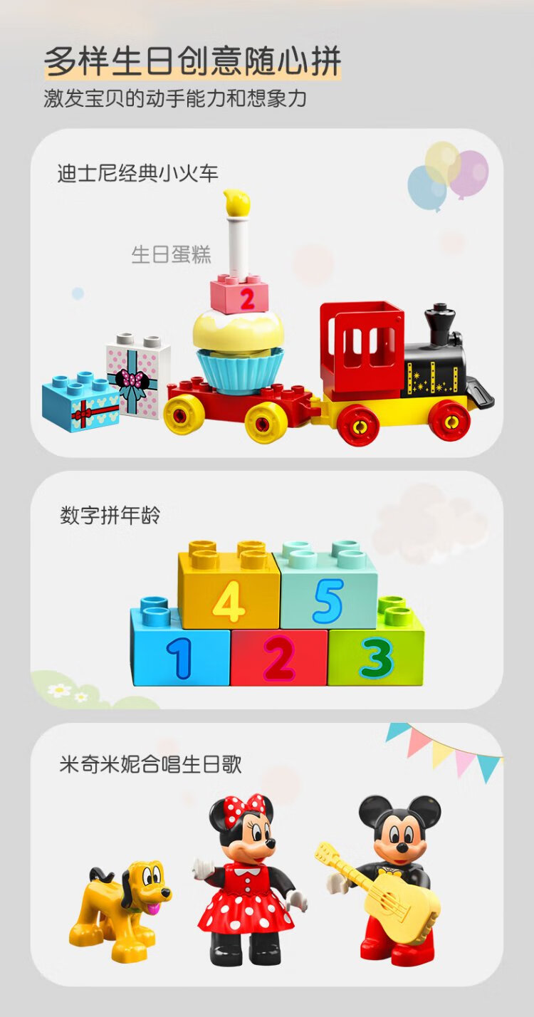 乐高(LEGO)积木拼装得宝10941 米奇和米妮的生日火车大颗粒儿童玩具生日礼物