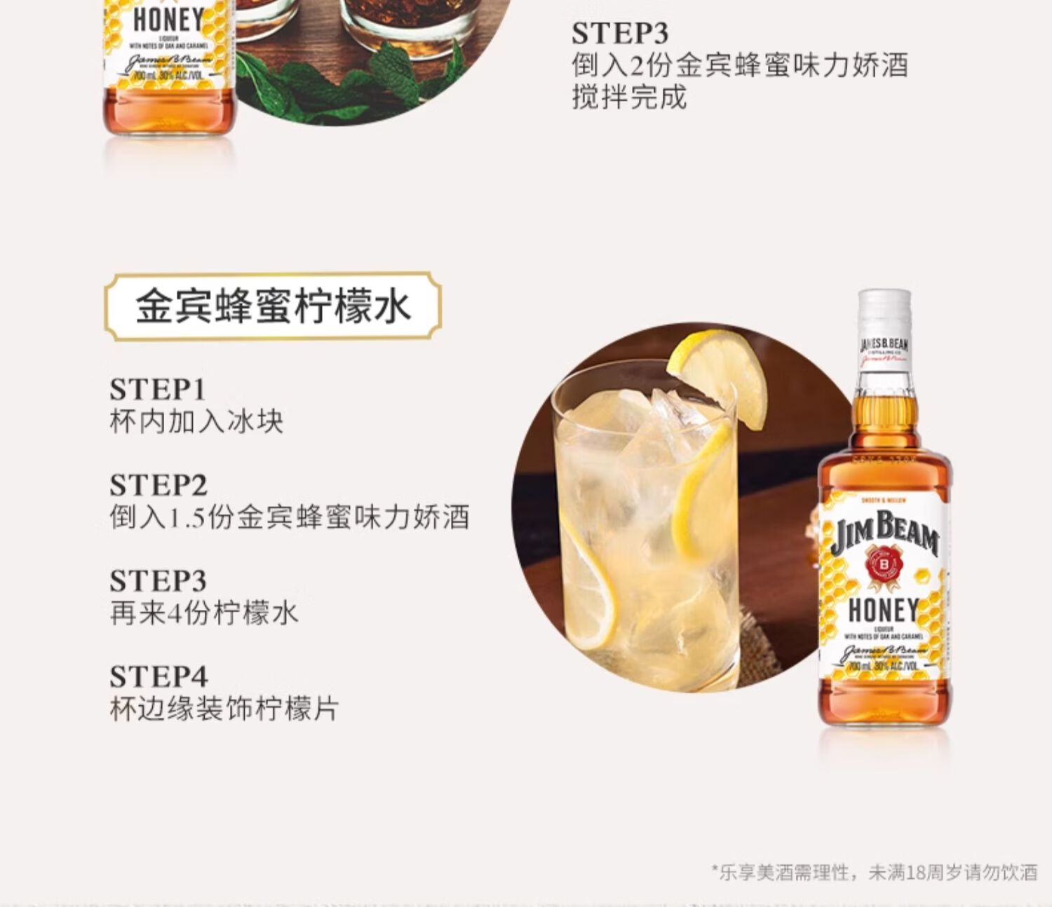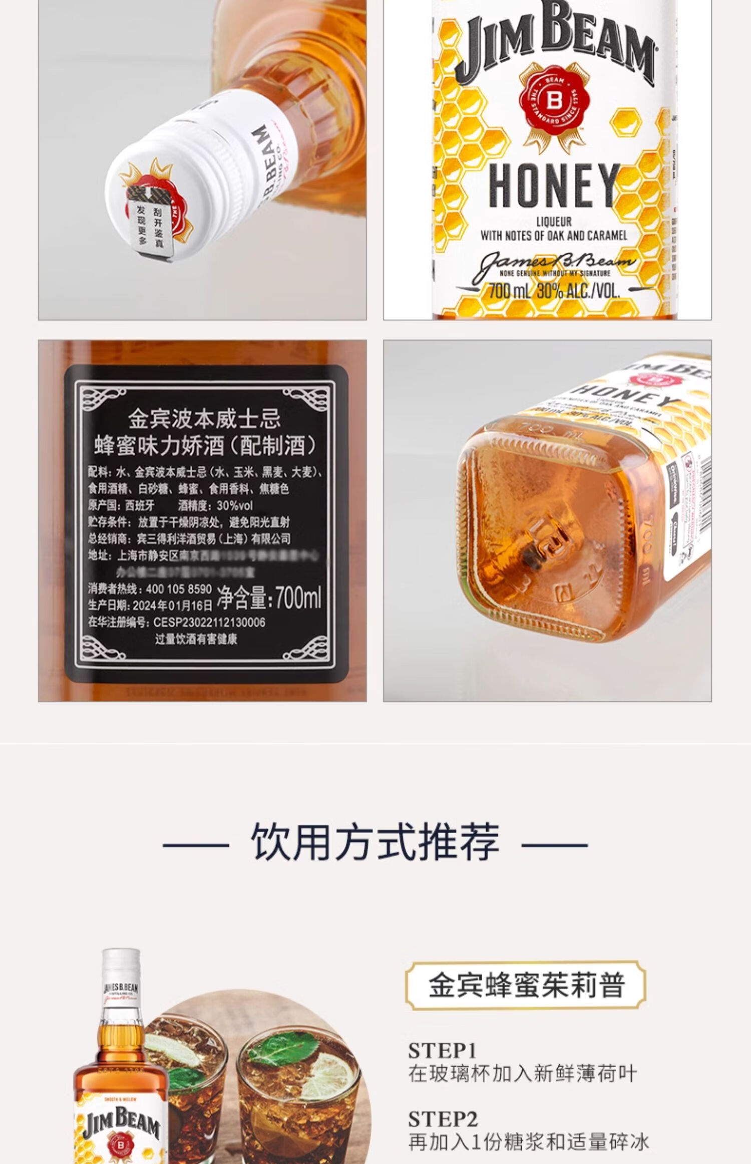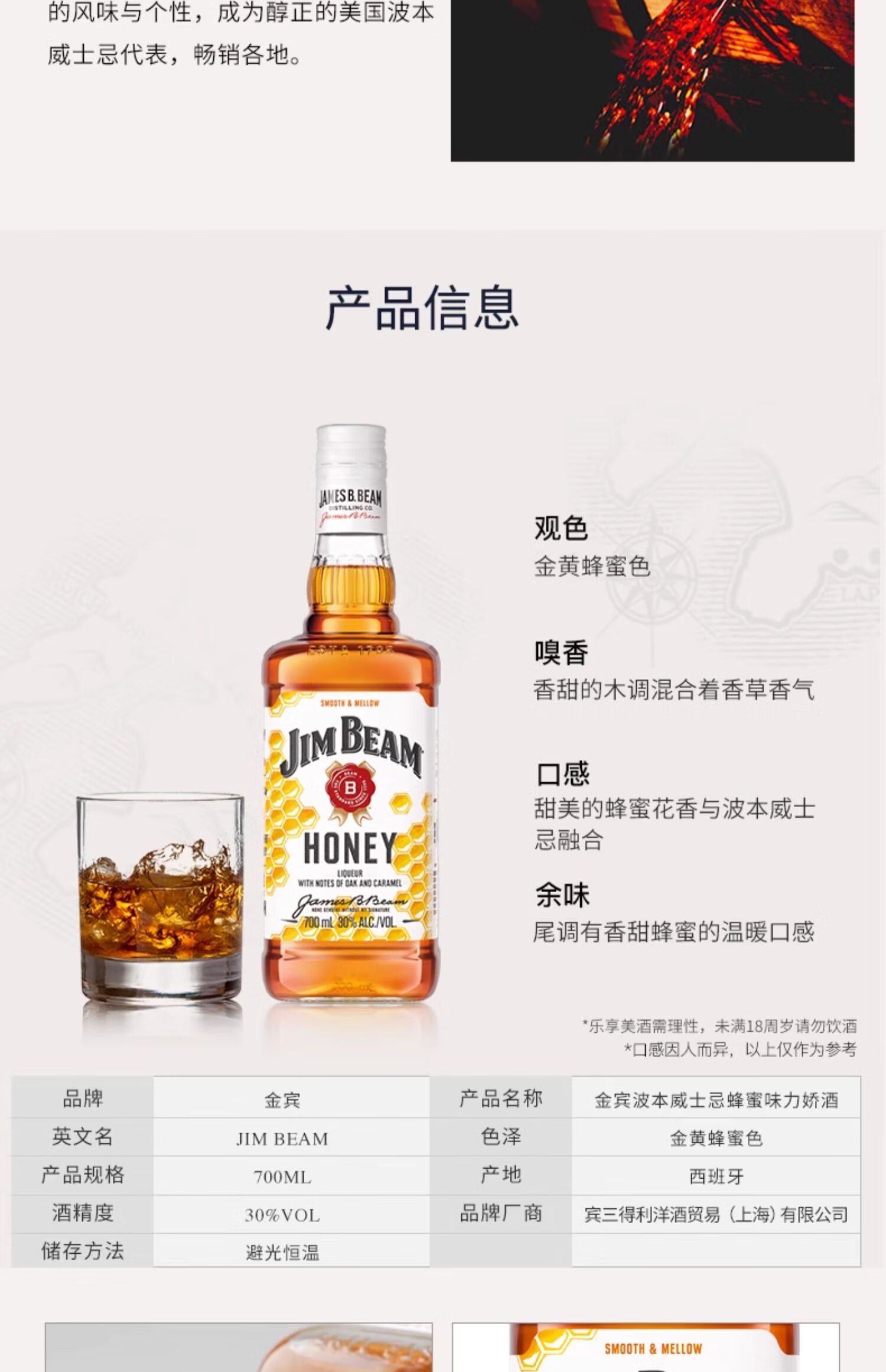 金宾(Jim Beam)蜂蜜 力娇酒700ml波本威士忌洋酒