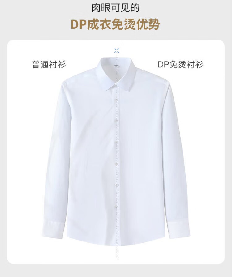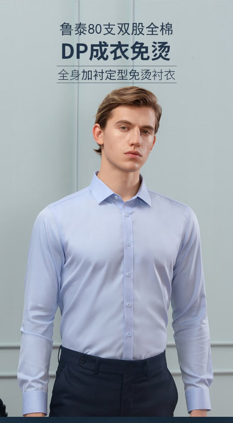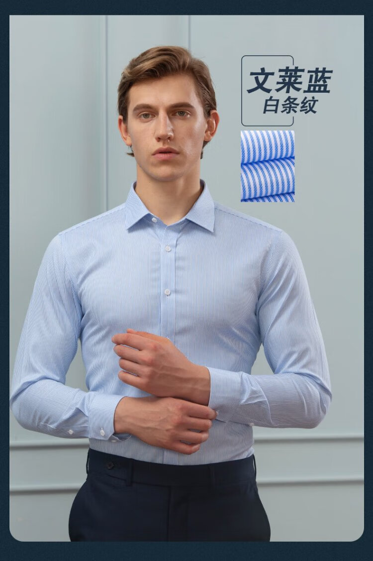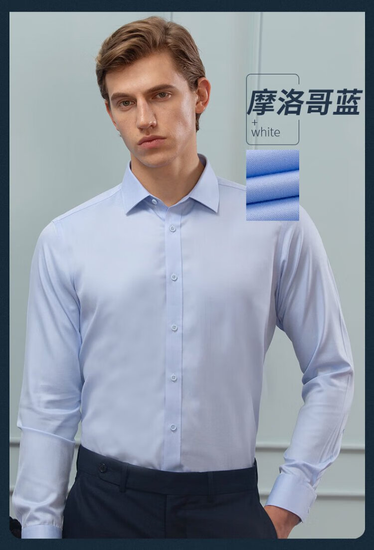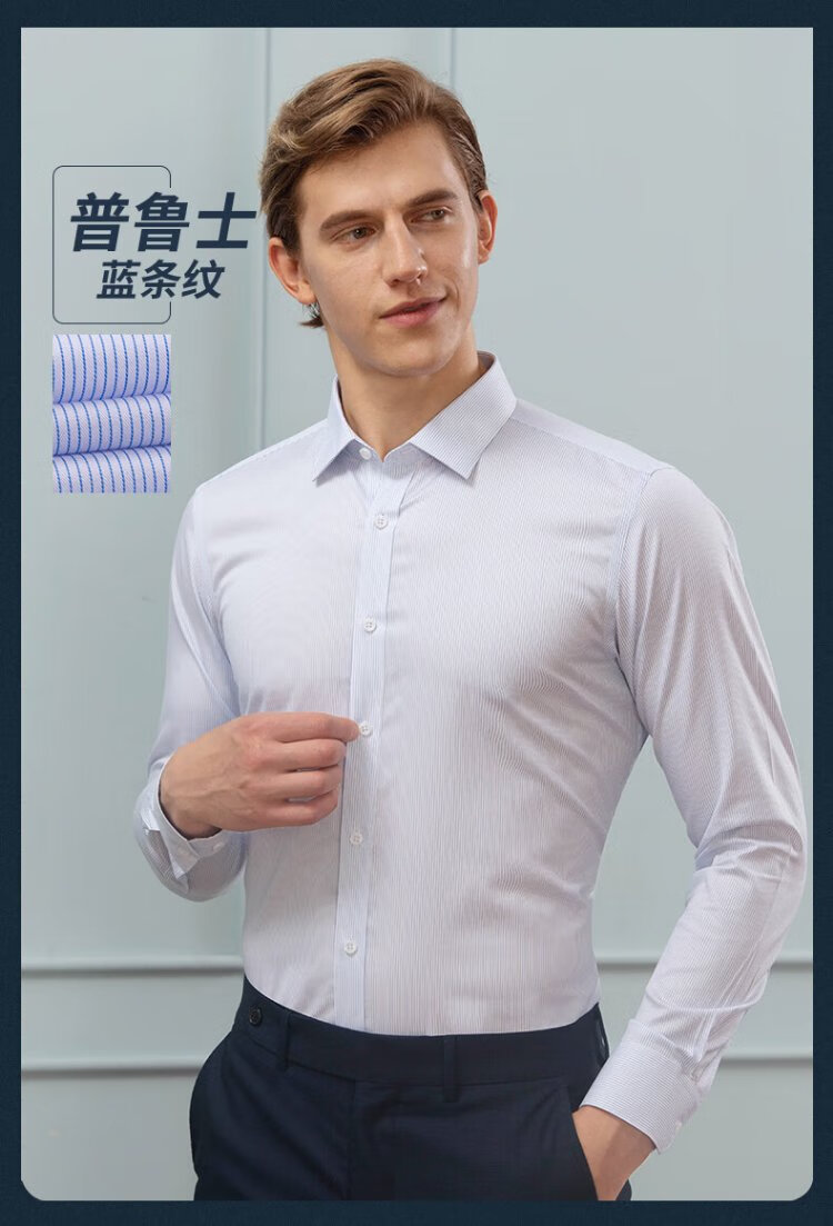 杉杉DP免烫100%棉抗皱 长袖衬衫男士衬衣长袖商务休闲上班纯棉打底衫