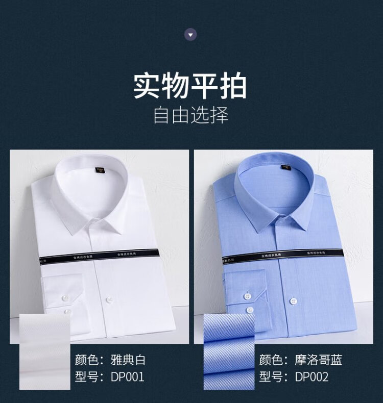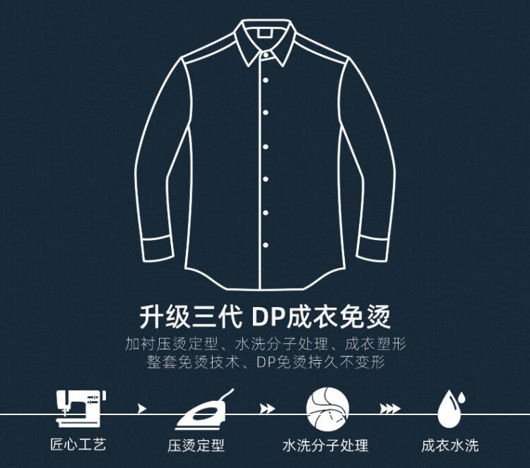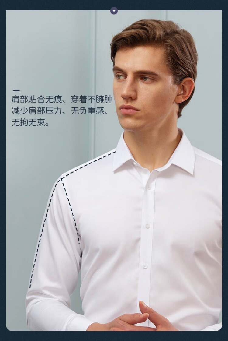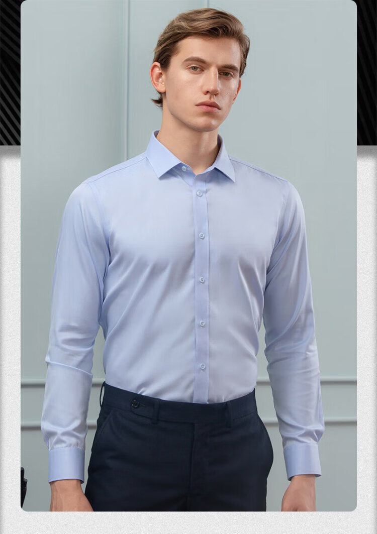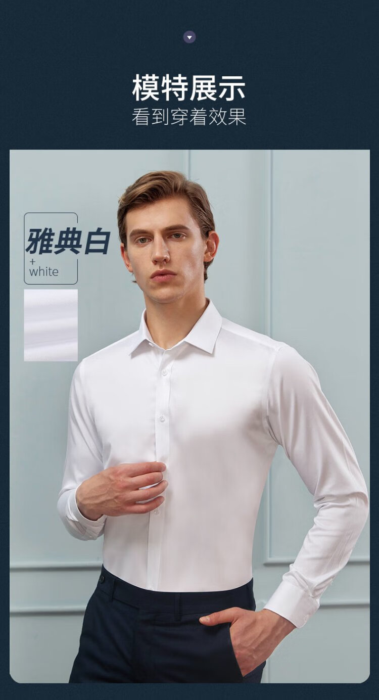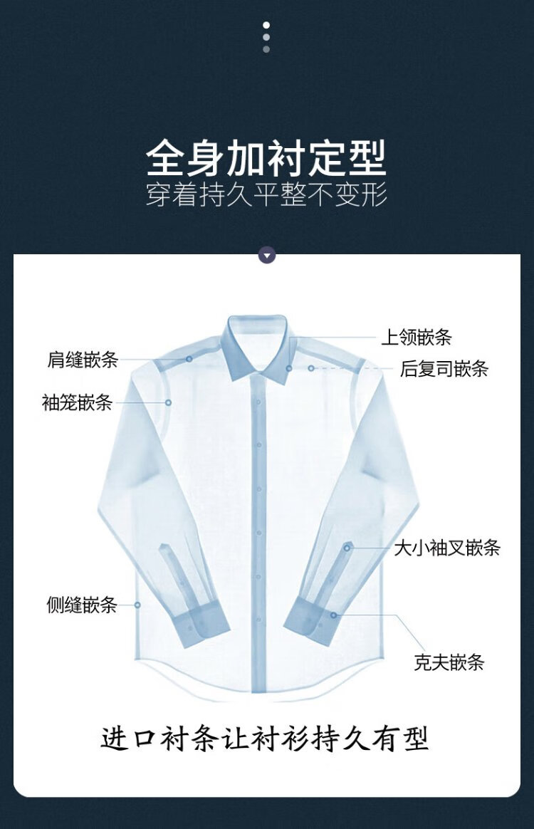 杉杉DP免烫100%棉抗皱 长袖衬衫男士衬衣长袖商务休闲上班纯棉打底衫