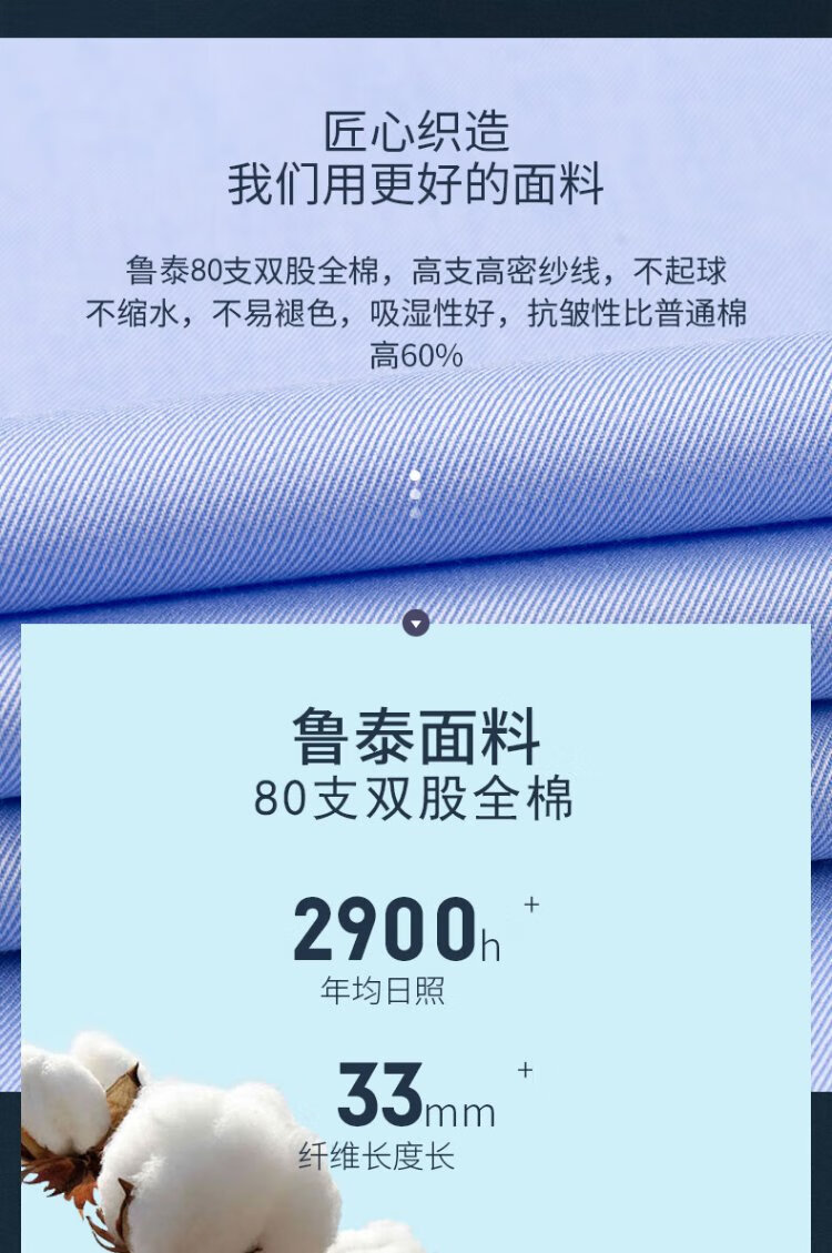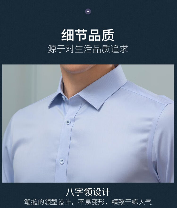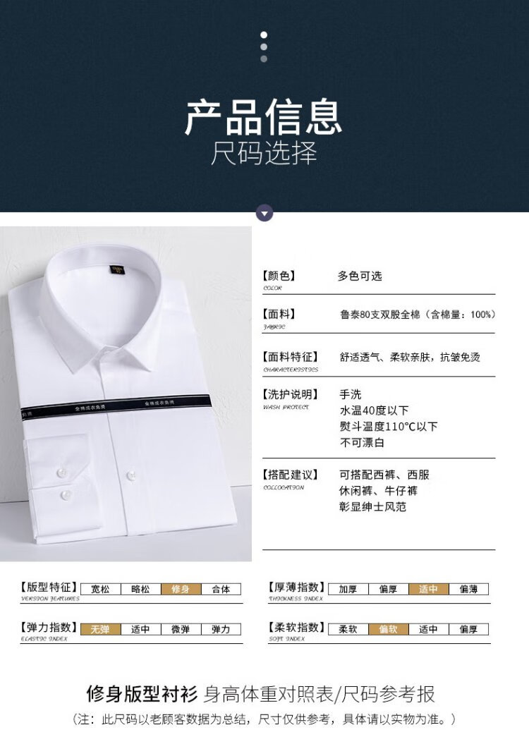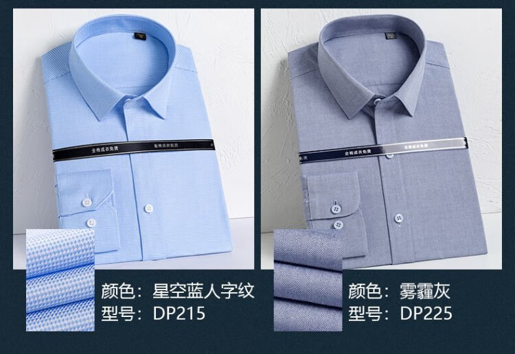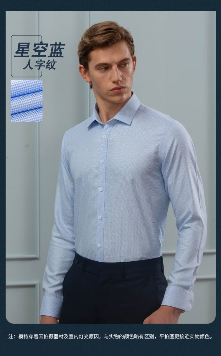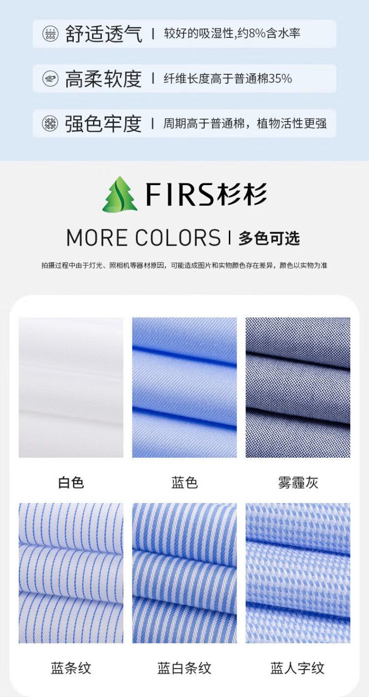 杉杉DP免烫100%棉抗皱 长袖衬衫男士衬衣长袖商务休闲上班纯棉打底衫