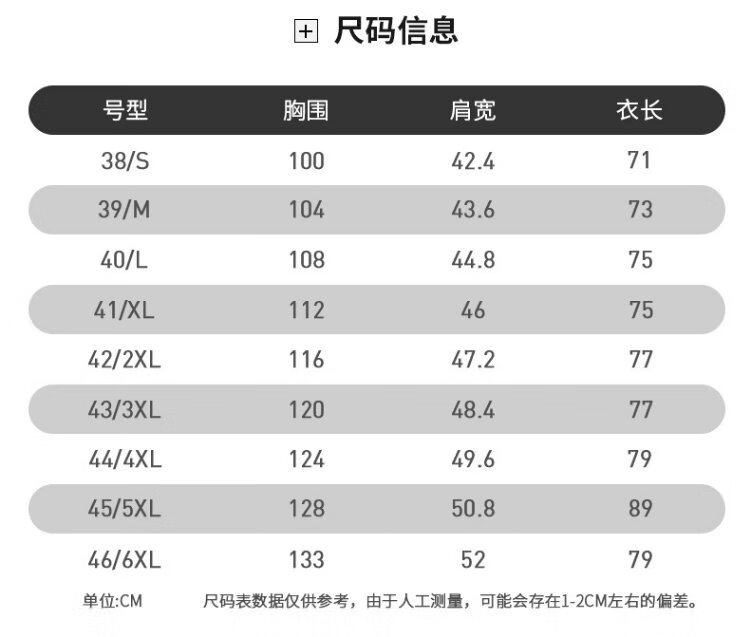 China (cm) 165 / 88-90 170 / 96-98 175 / 108-110 180 / 118-122 185 / 126-130