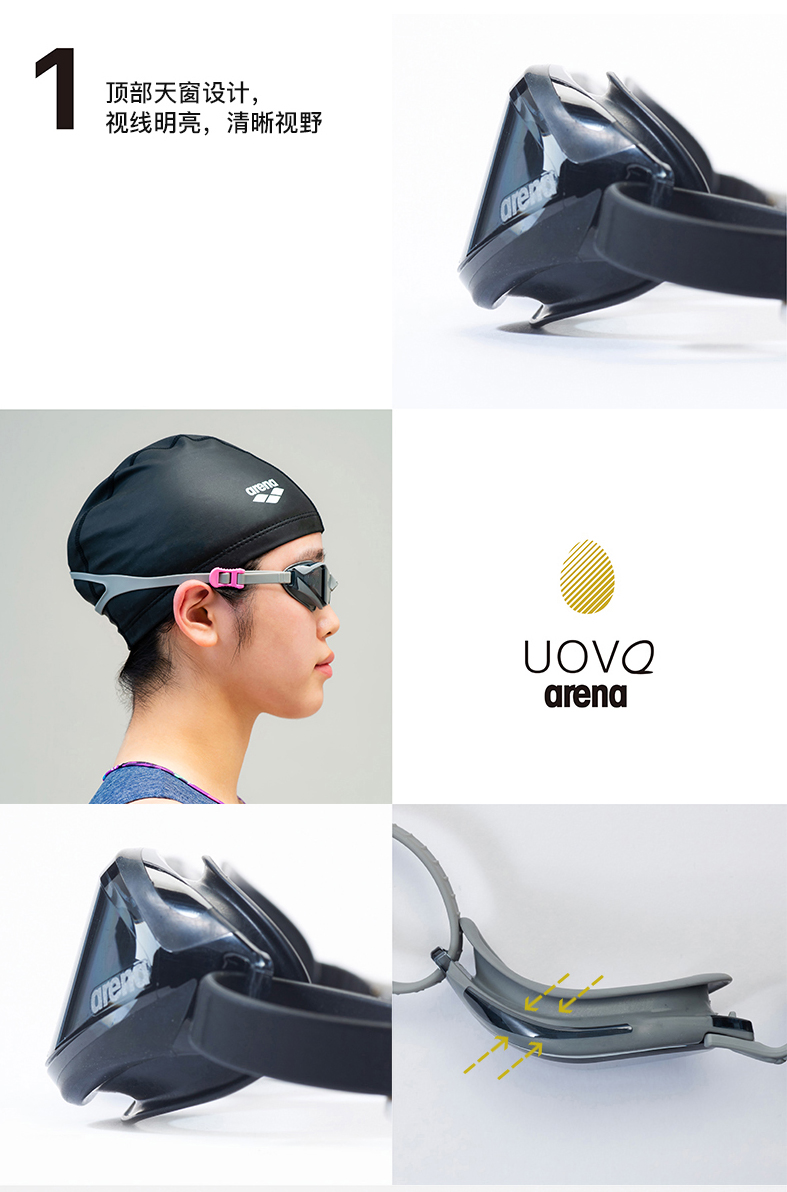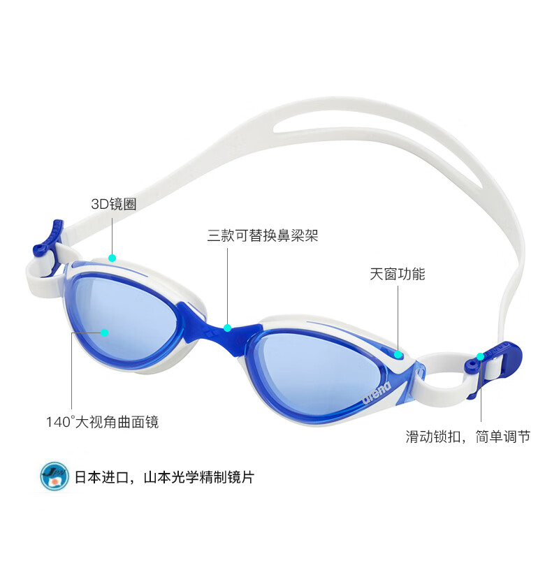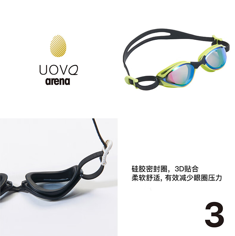 阿瑞娜arena进口泳镜专业防雾大框大视野高清游泳镜健身训练游泳装备男女士AGL1100E-SMBK黑