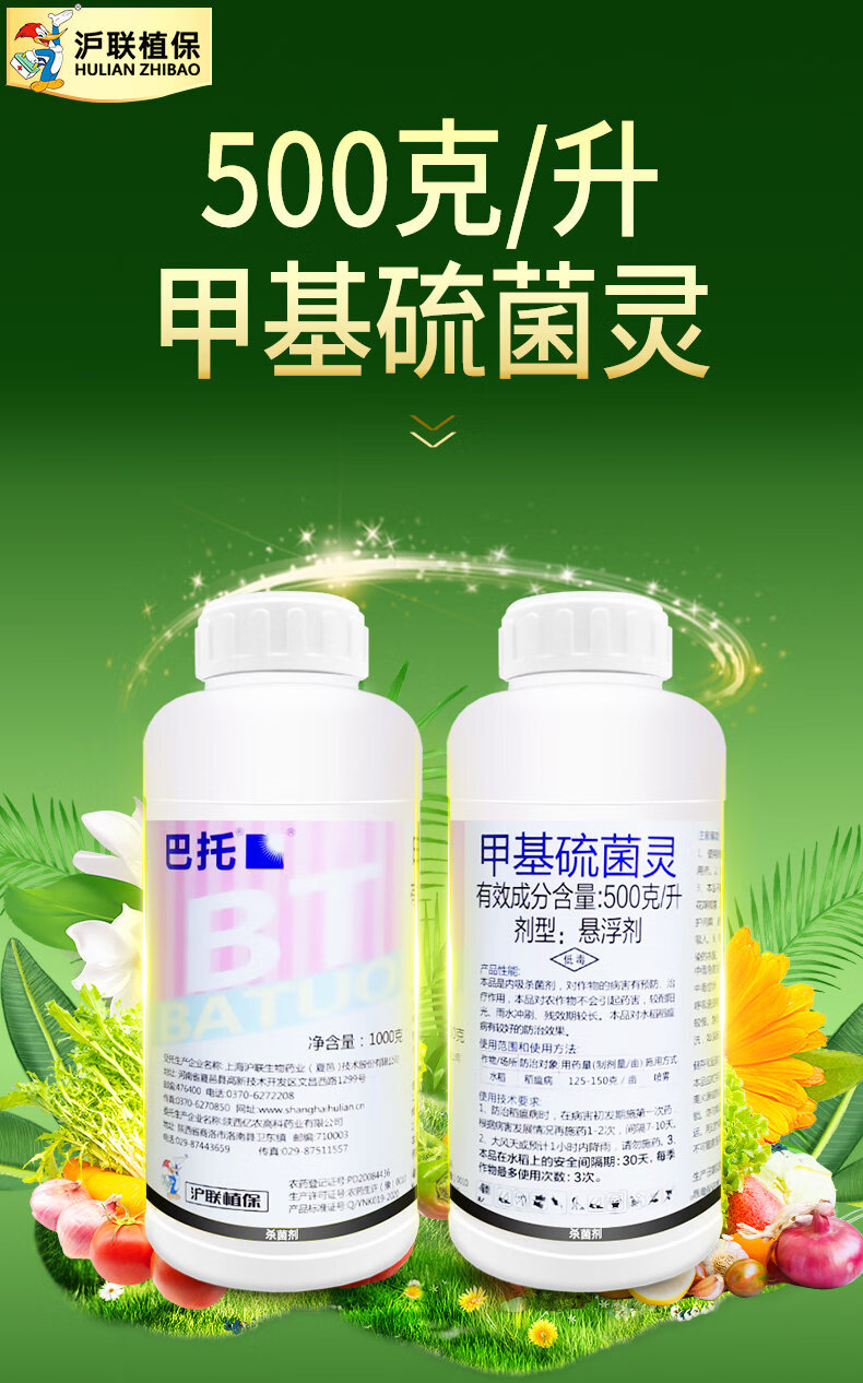 沪联植保巴托甲基硫菌灵500克/升甲托甲基硫水稻果树赤霉稻瘟病农药杀菌剂