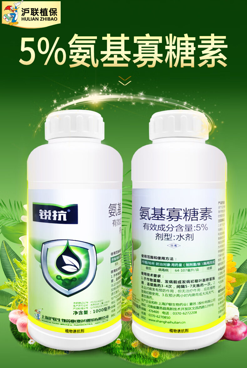 沪联植保锐抗5%氨基寡糖素病毒病专用药果蔬病毒病提高抗逆农药植物诱抗剂