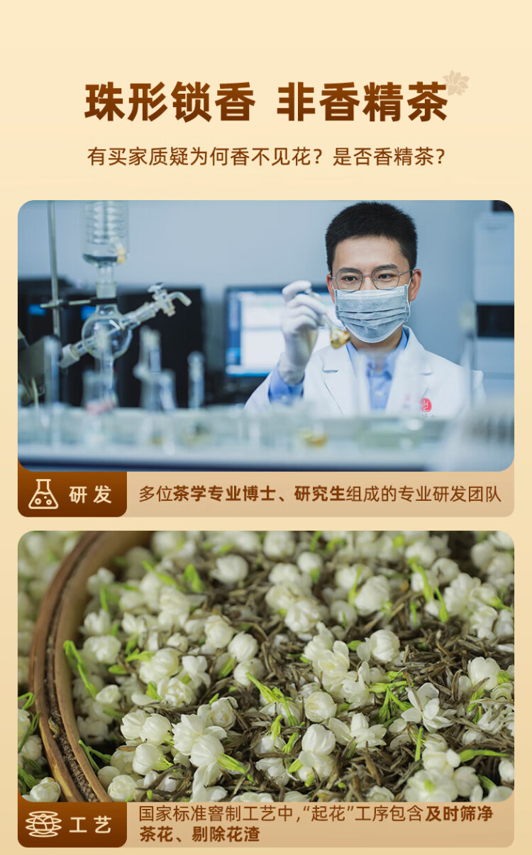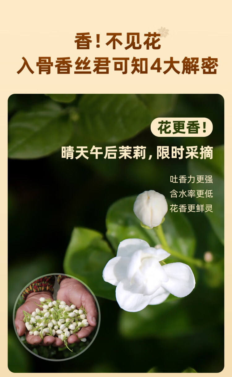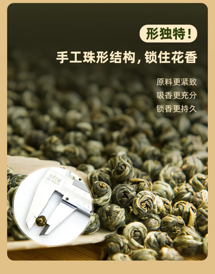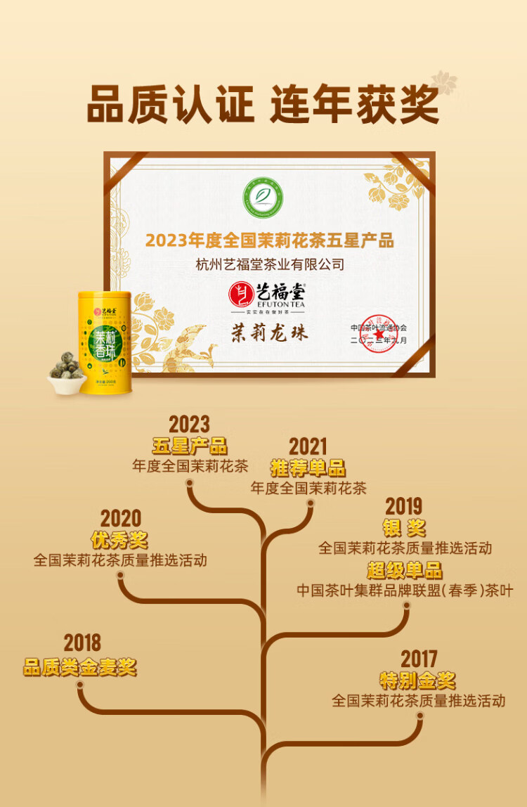 艺福堂茶叶 茉莉花茶 茉莉香珠龙珠新花特种级七窨浓香横县自己喝200g