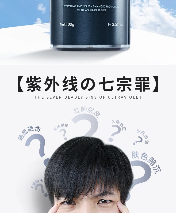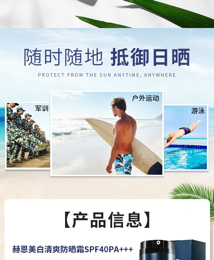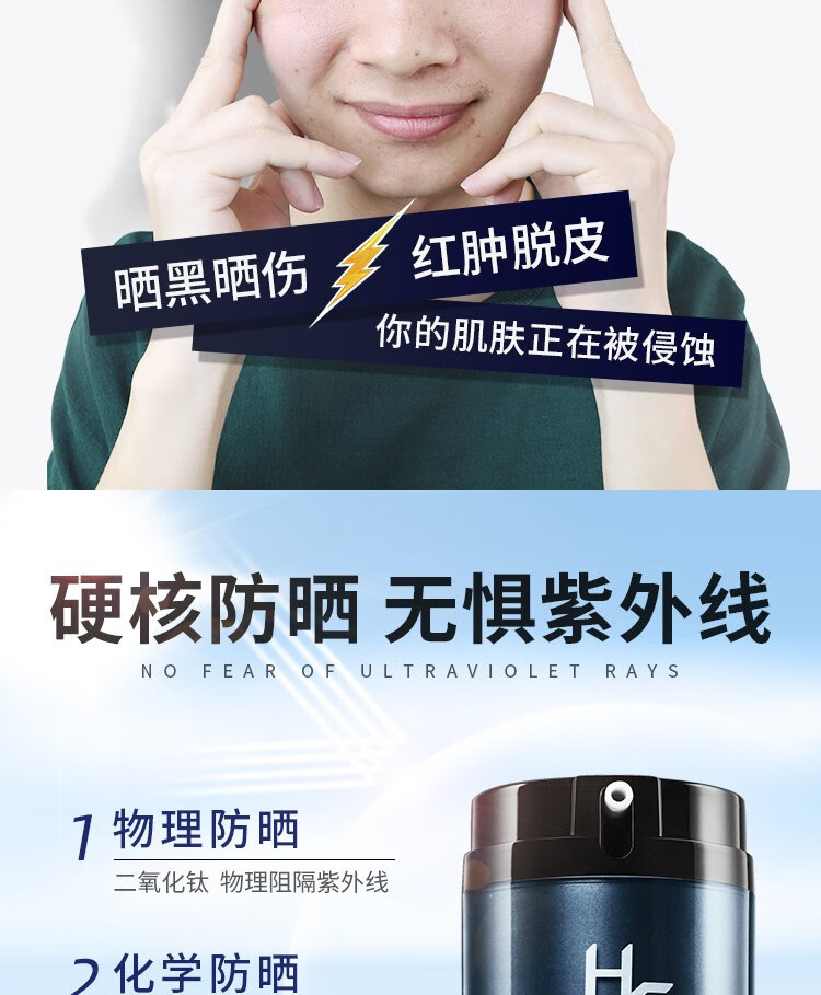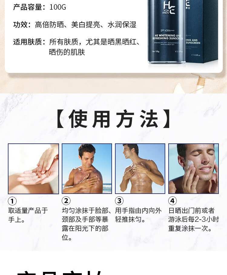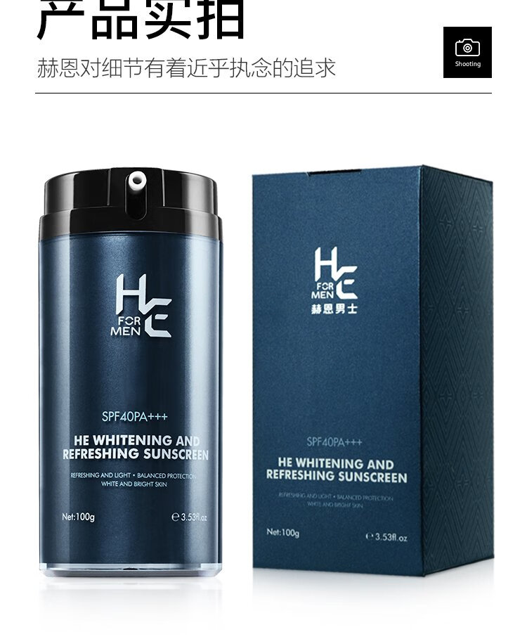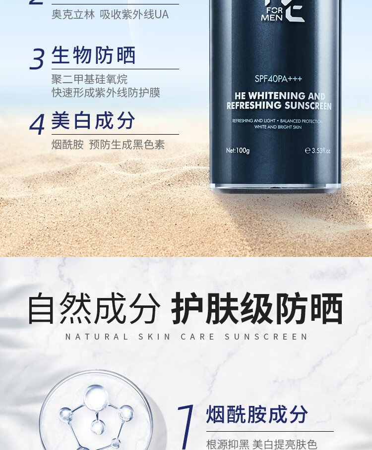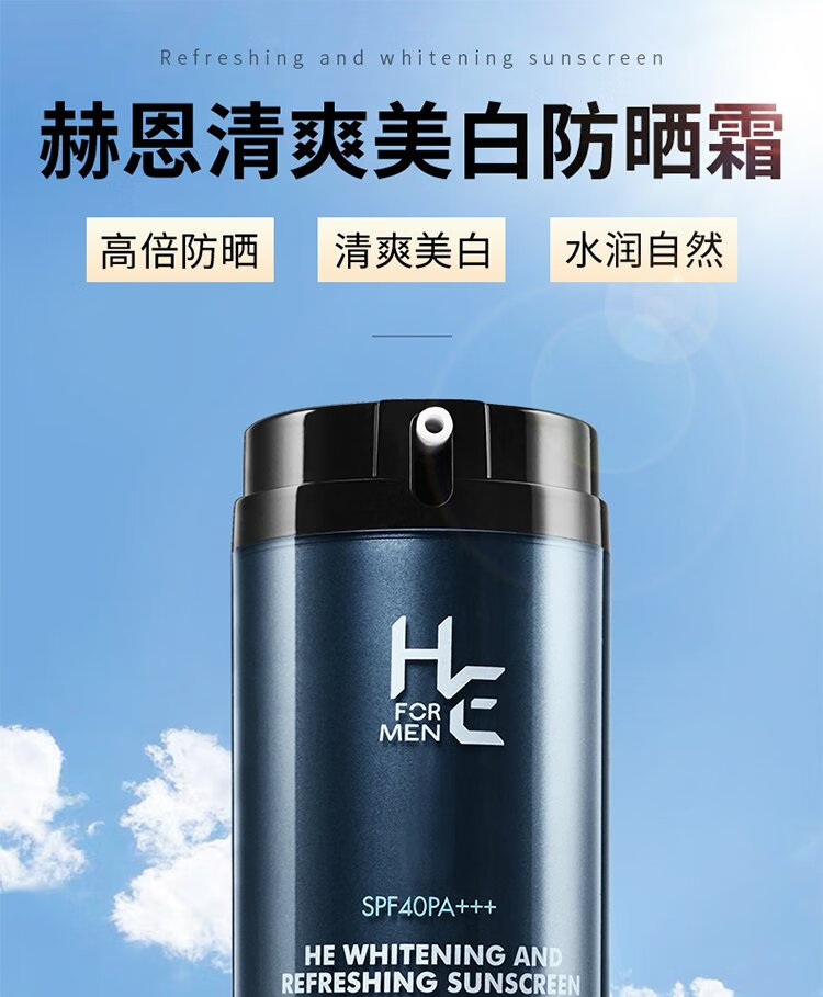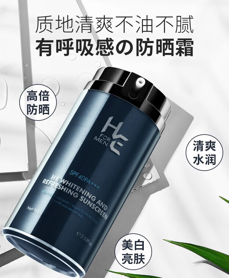 H&E Men's Refreshing Sunscreen Cream Men's 100g SPF40/PA+++ Outdoor Sunscreen Cream Refreshing and Moisturizing