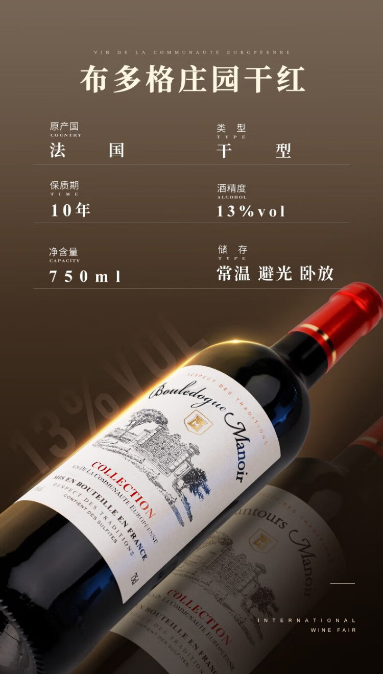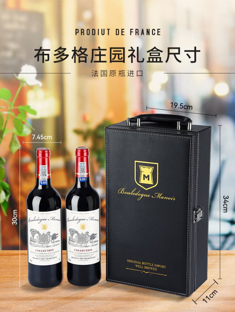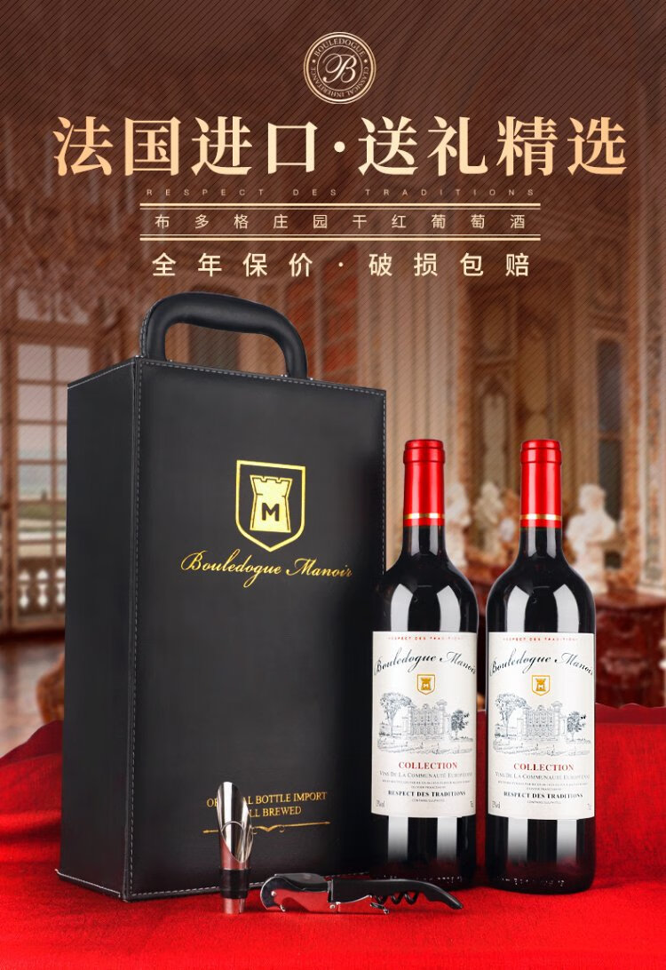 CANIS FAMILIARIS布多格 法国原瓶进口红酒 庄园干红葡萄酒 节日礼品礼盒2双支装