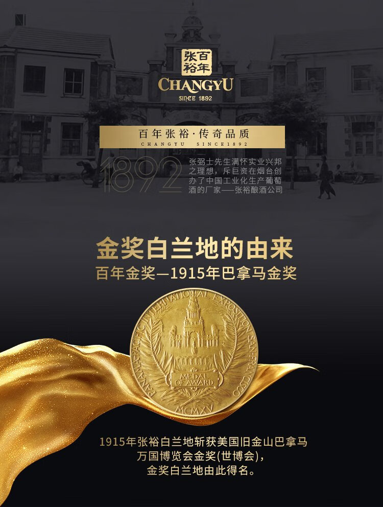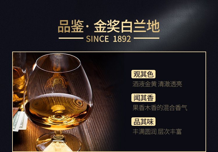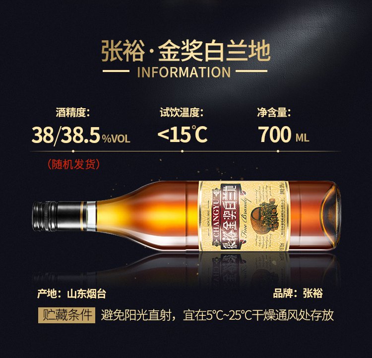 张裕 金奖白兰地 700ml 单支装 洋酒 自饮宴请聚会