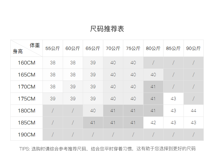 China (cm) 36 - 37 38 - 39 40 - 42 43 - 44 45 - 47