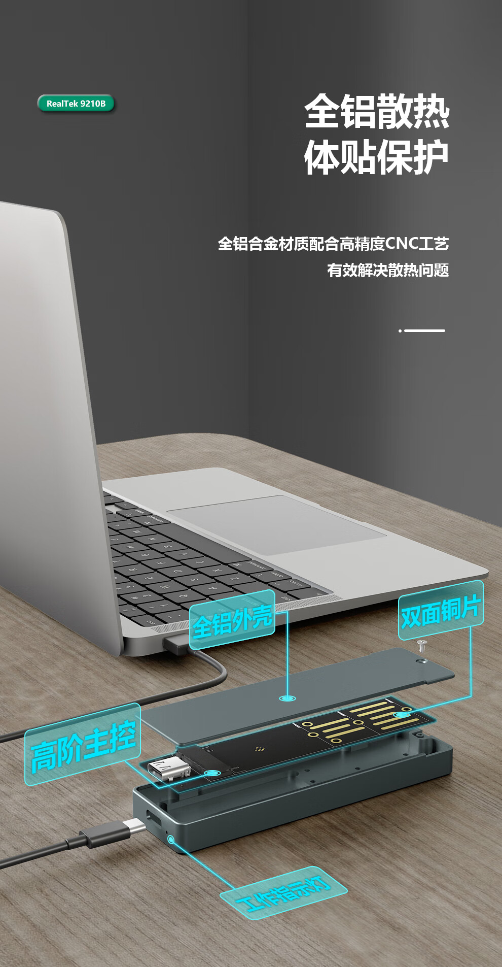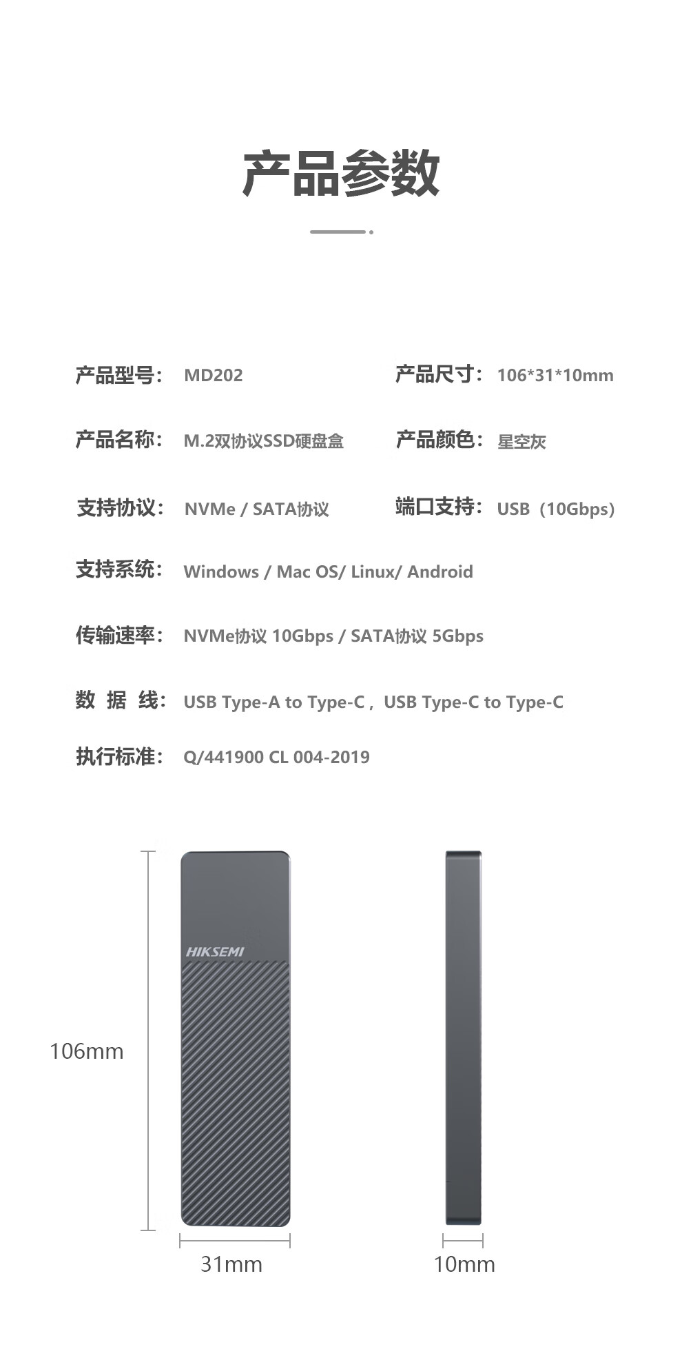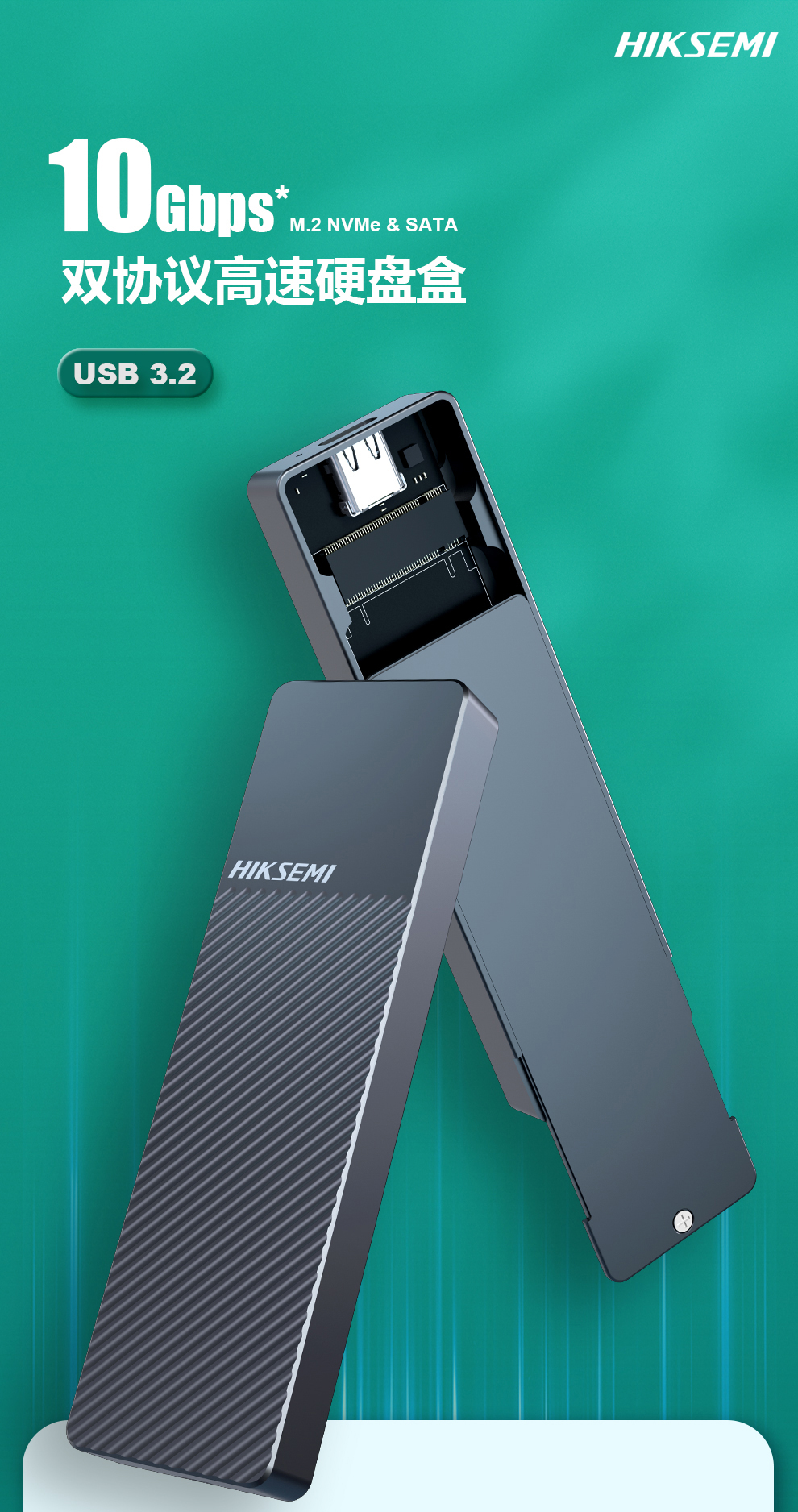 HIKVISION M.2 NVMe/SATA dual protocol mobile hard drive box alloy Type-C3.2 interface SSD solid state drive external box suitable for laptop tablet M2 box