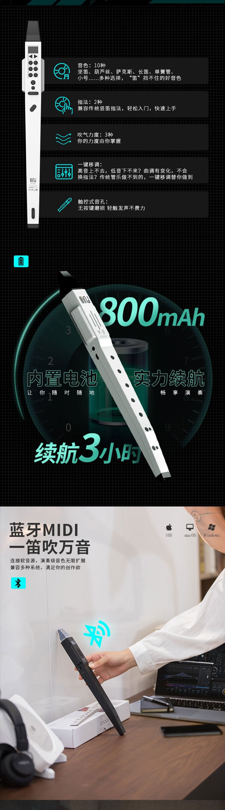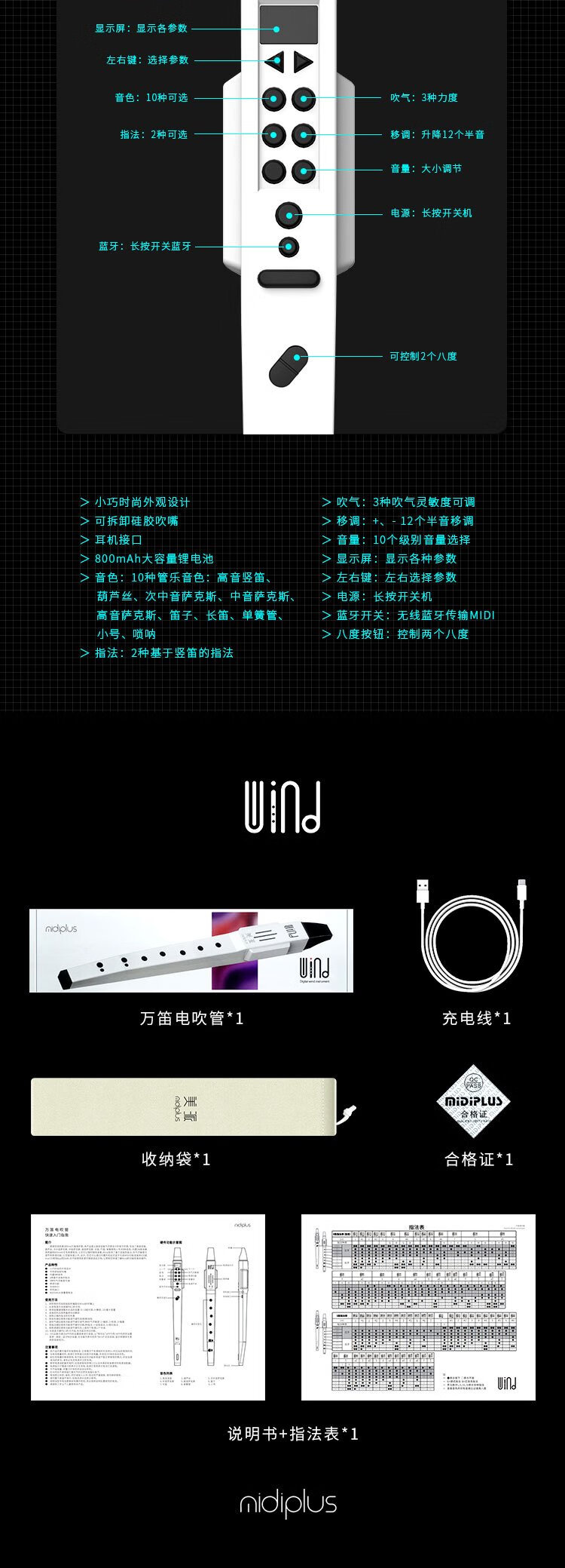 midiplus美派万笛电吹管学生初学者竖笛乐器萨克斯老年人葫芦丝白色礼物
