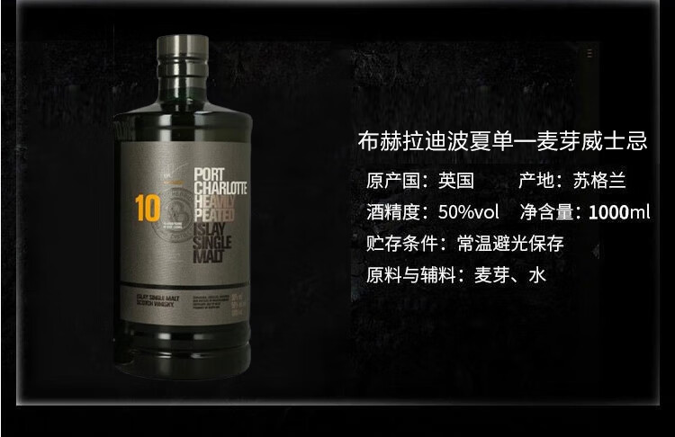 布赫拉迪(Bruichladdich)10年 波夏 苏格兰单一麦芽威士忌 1000ml 50度 洋酒