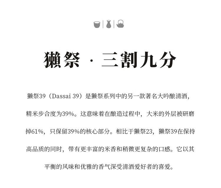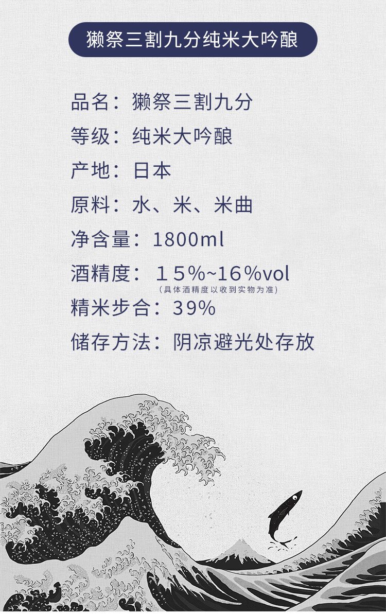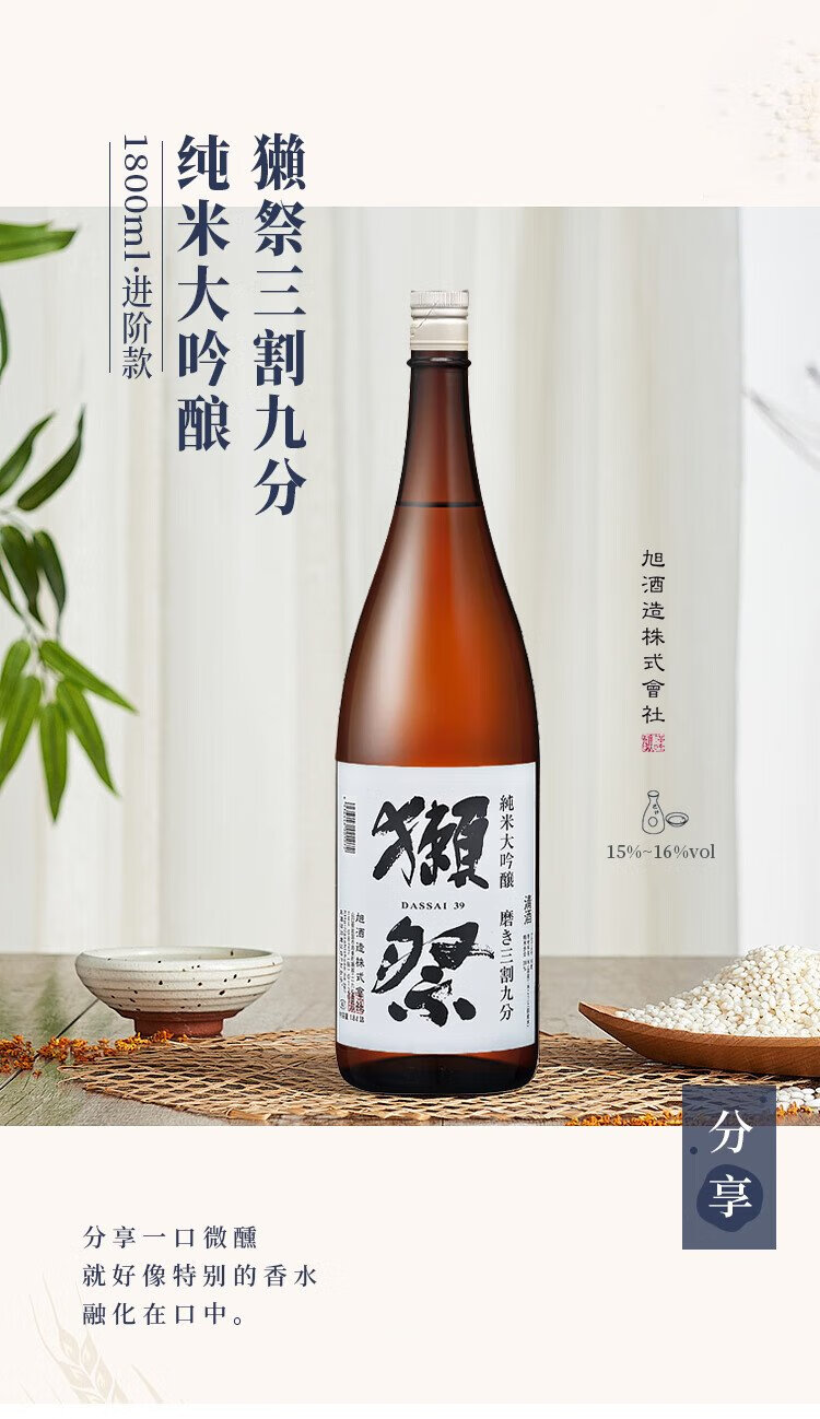 獭祭Dassai 39三割九分1.8L纯米大吟酿 日本清酒伴手礼 原装进口