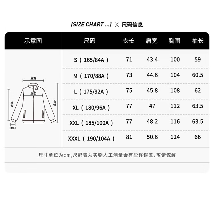 China (cm) 160-165/84-86 165-170 / 88-90 167-172 / 92-96 168-173 / 98-102 170-176 / 106-110