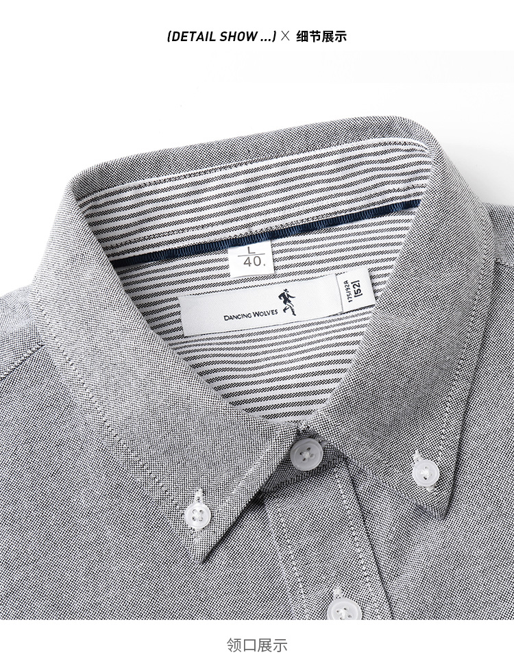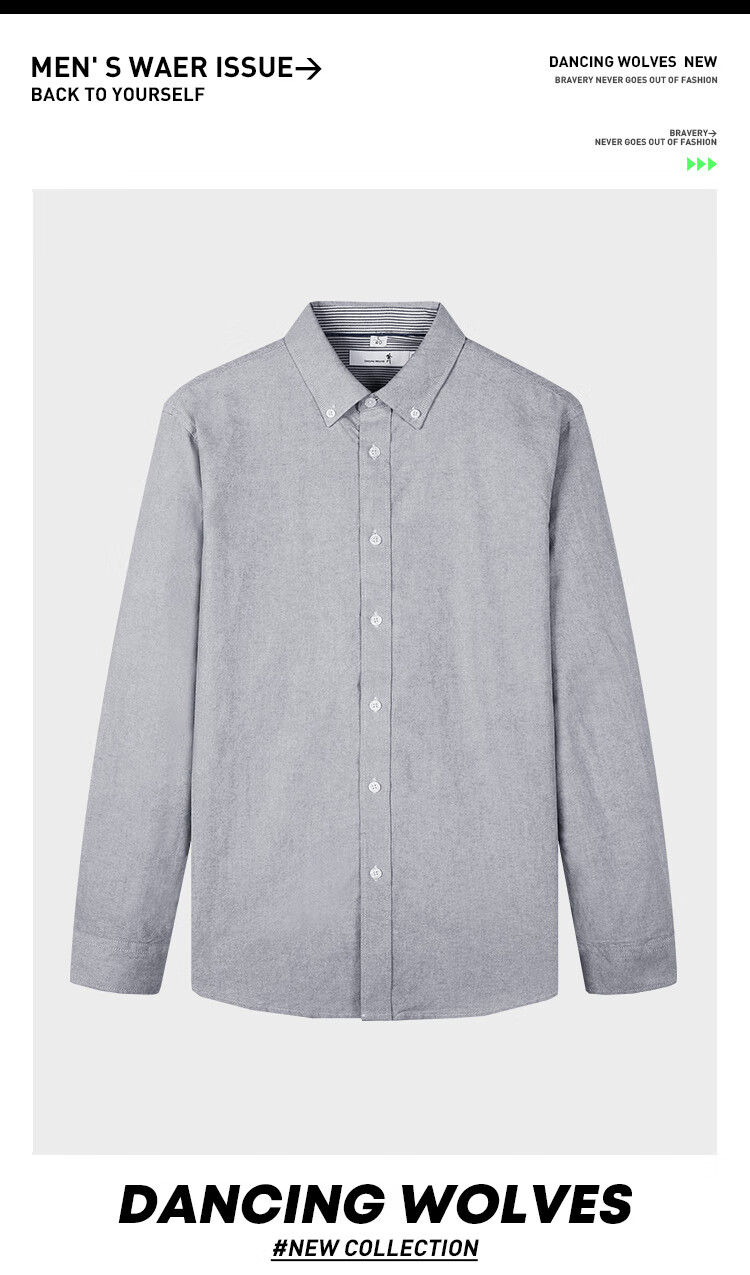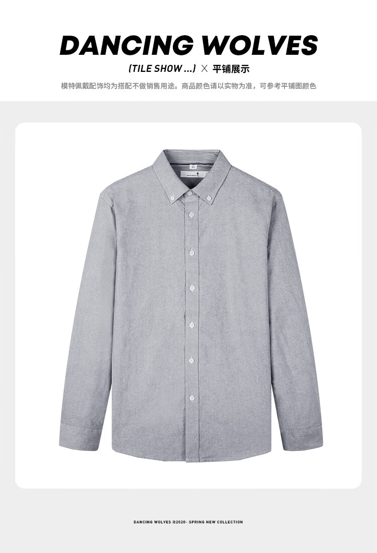与狼共舞【100%棉】轻商务休闲男士长袖衬衫轻正装 015深灰 170