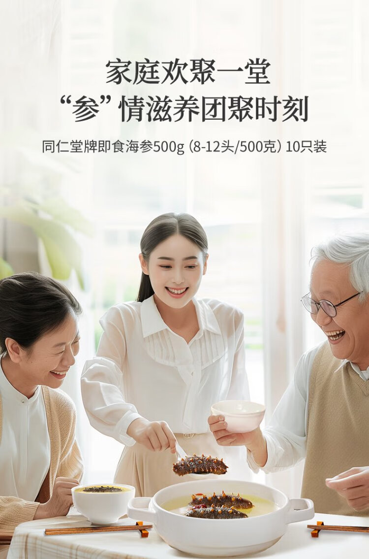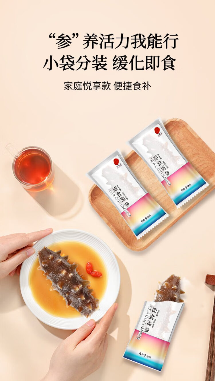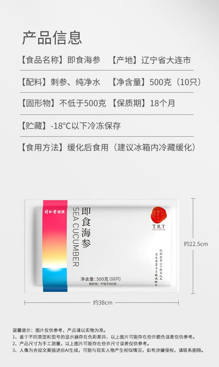 Tongrentang Sea Cucumber Dalian Ready-to-Eat Sea Cucumber Ready-to-eat Liao Cucumber 1Jin Jin is equal to 0.5kg 10 pieces solid 100% ready-to-eat bagged seafood