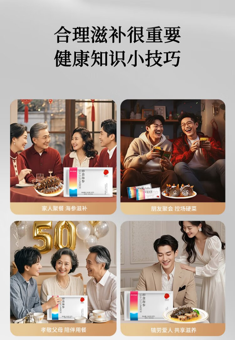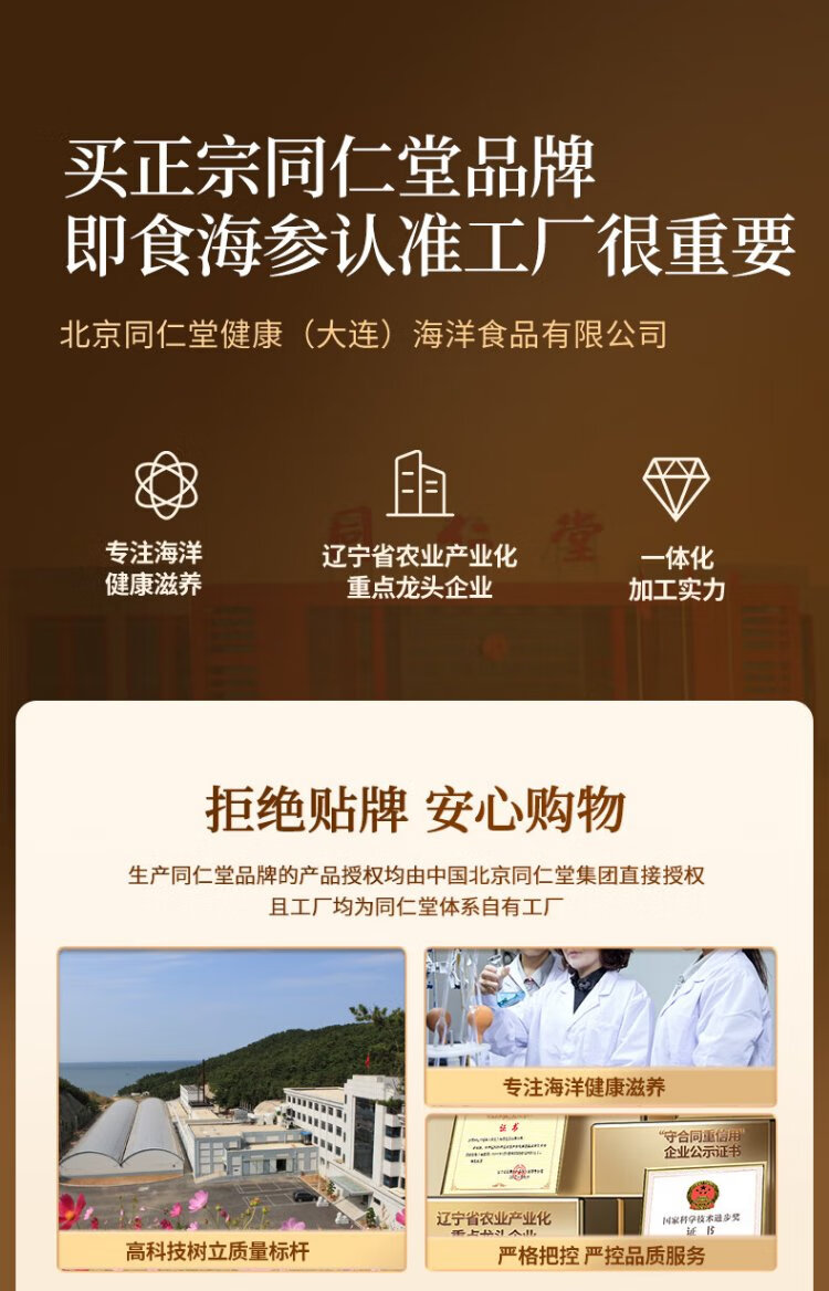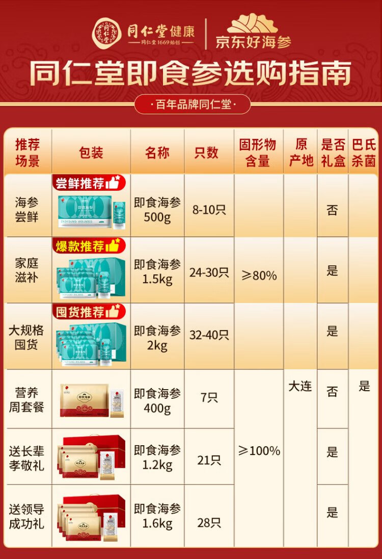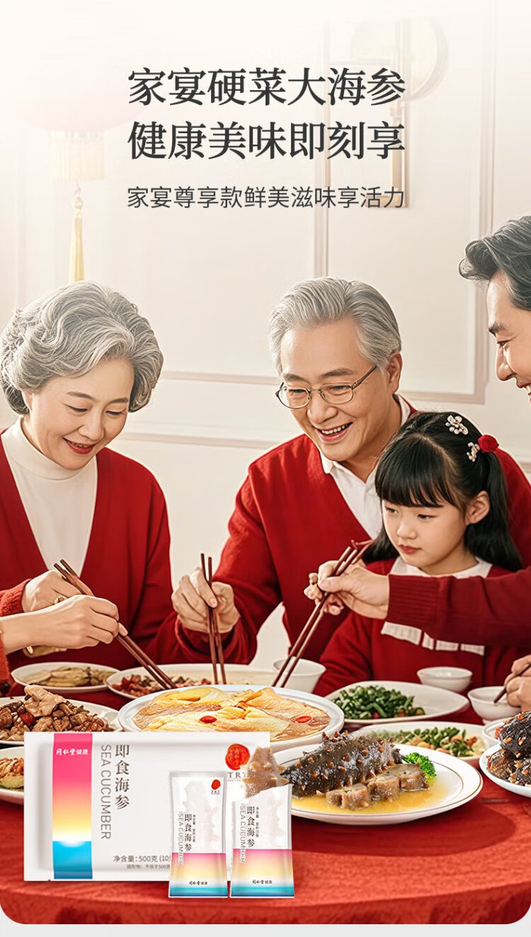 Tongrentang Sea Cucumber Dalian Ready-to-Eat Sea Cucumber Ready-to-eat Liao Cucumber 1Jin Jin is equal to 0.5kg 10 pieces solid 100% ready-to-eat bagged seafood
