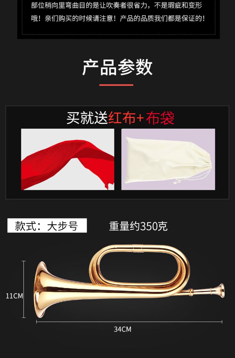 阿萨斯冲锋号34cm军号 大步号吹号集结号乐器 黄铜号