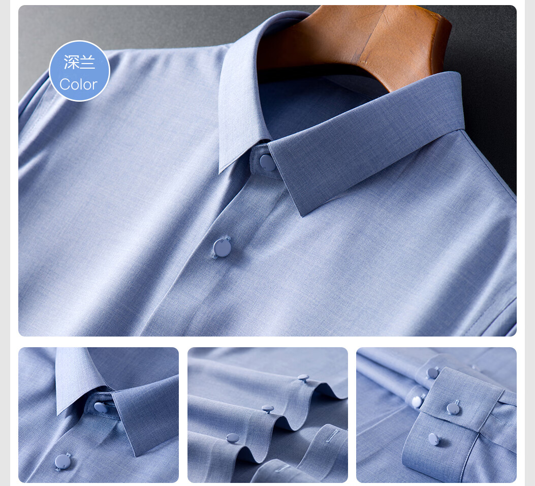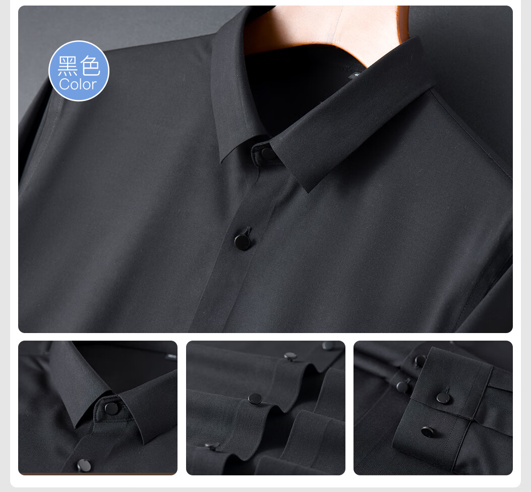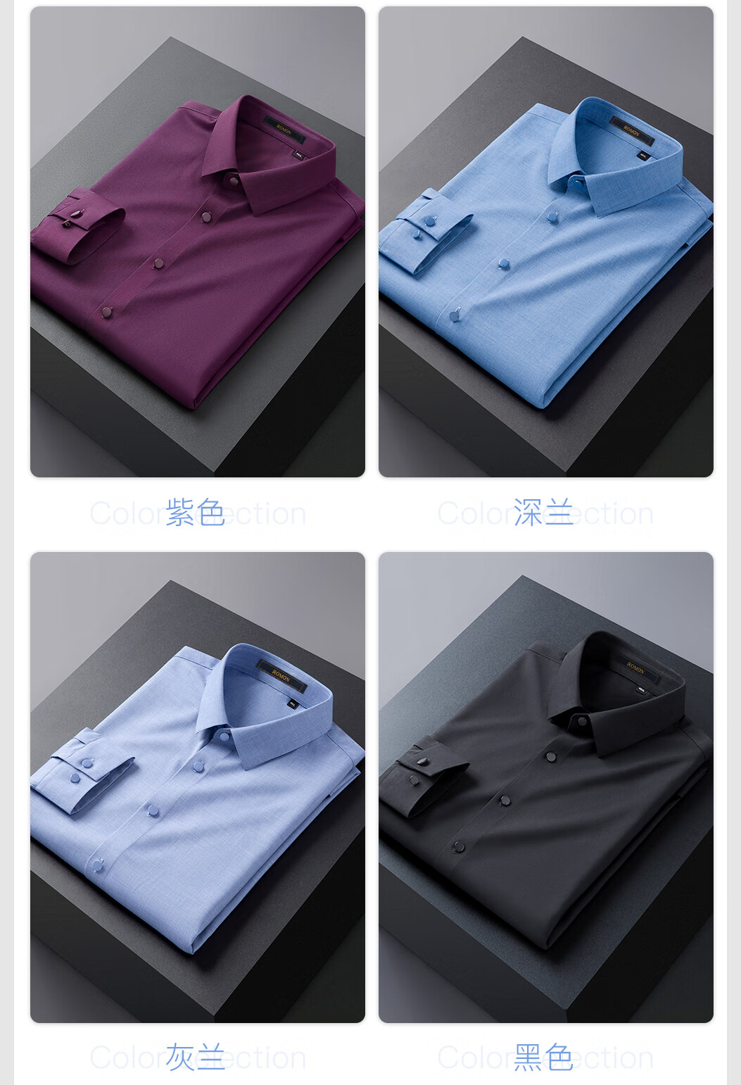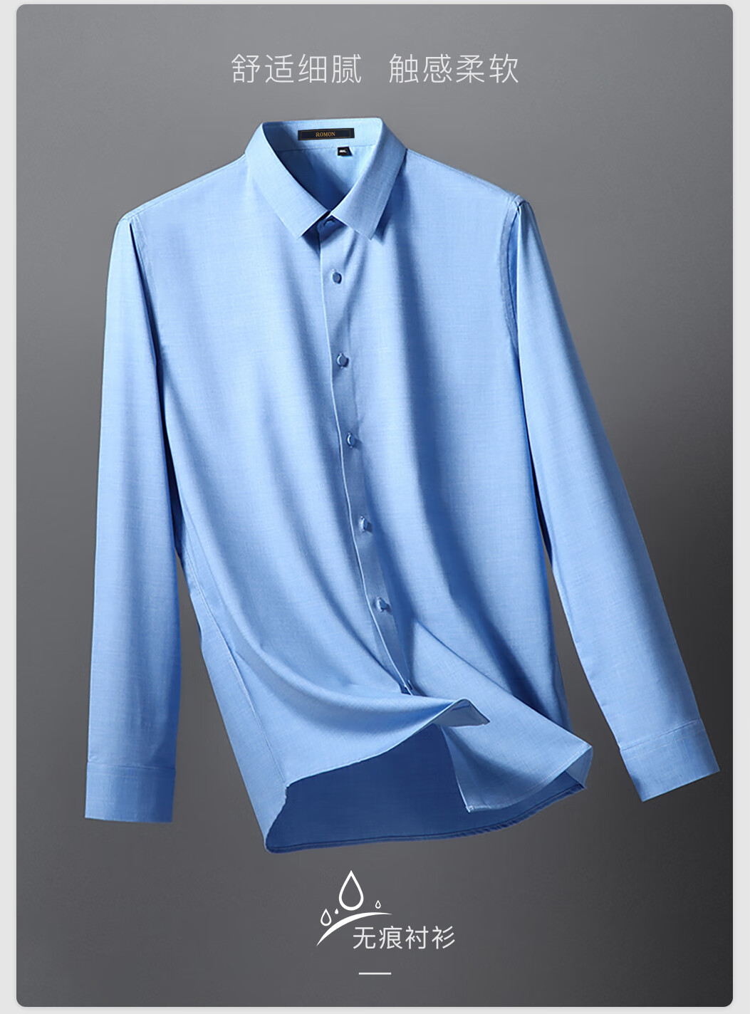 罗蒙免烫衬衣男士无痕冰丝长袖衬衫纯色商务休闲弹力打底爸爸上衣男装