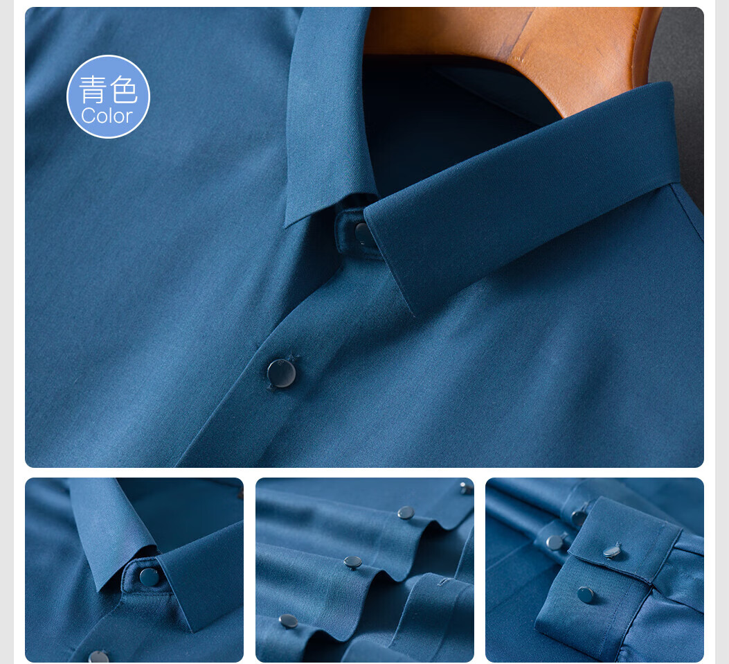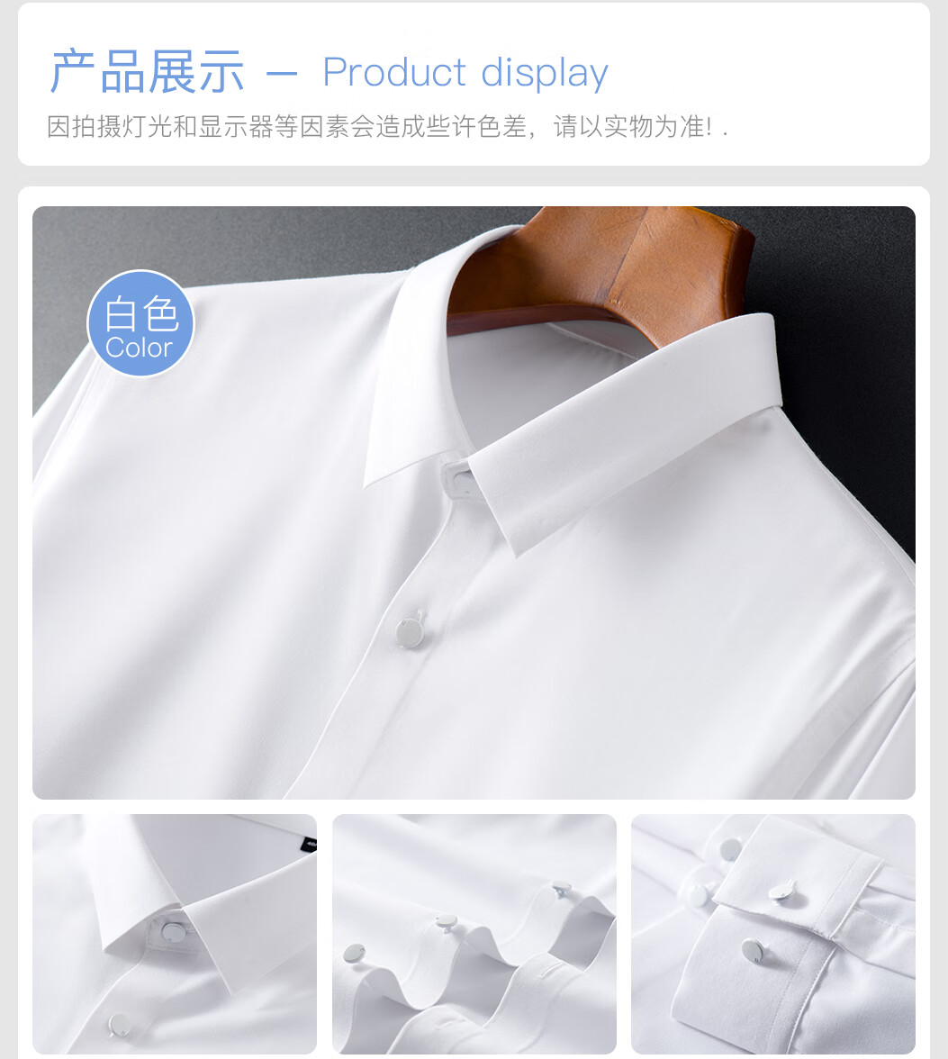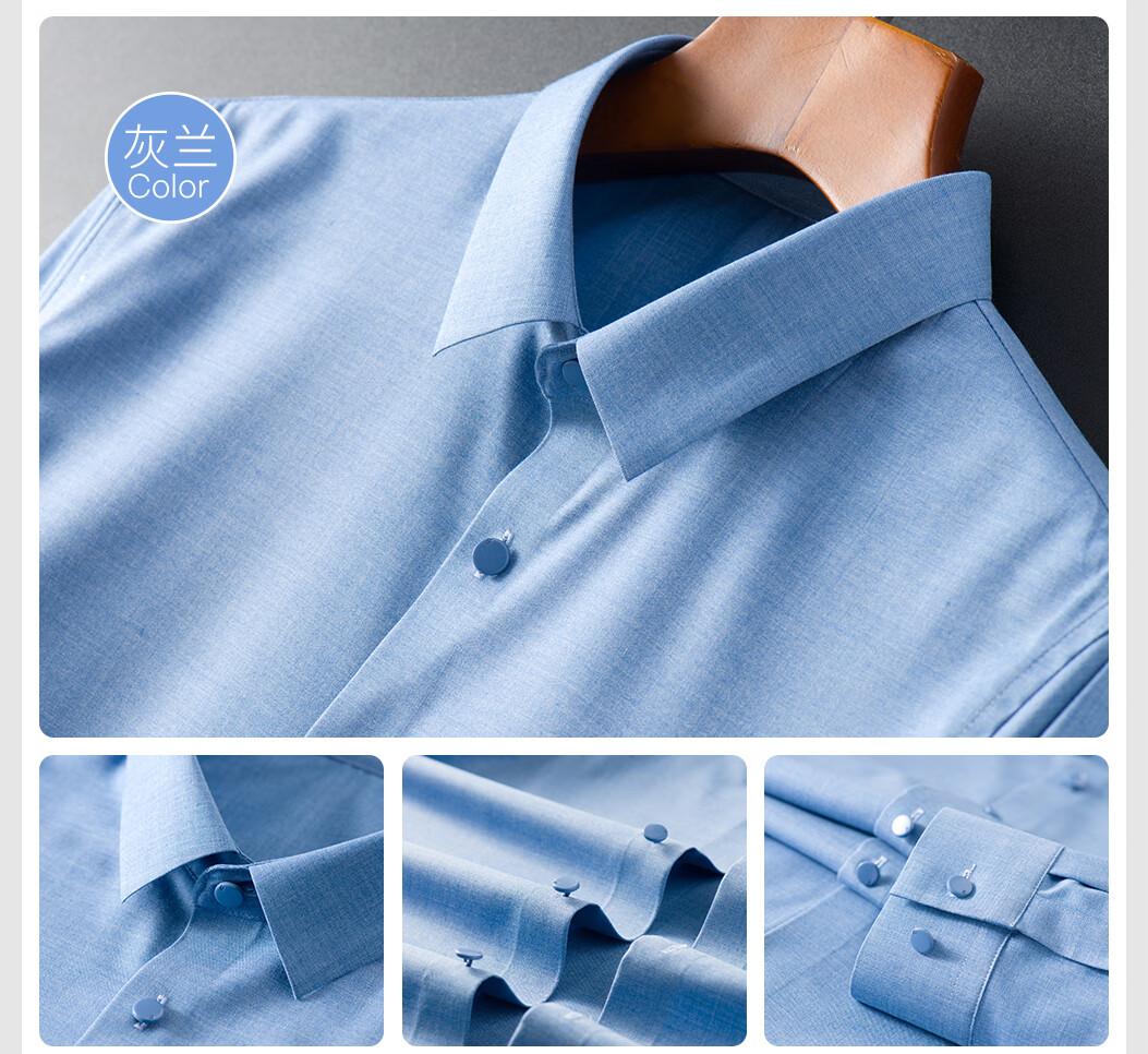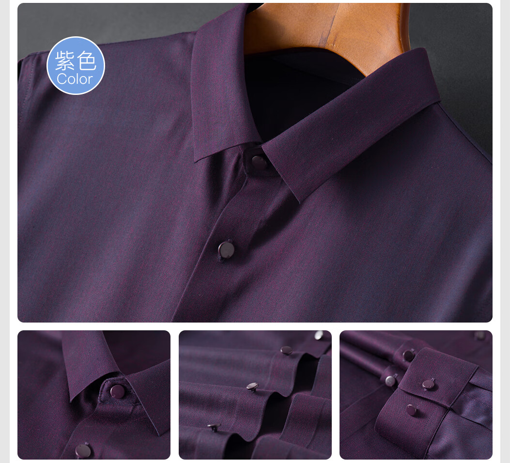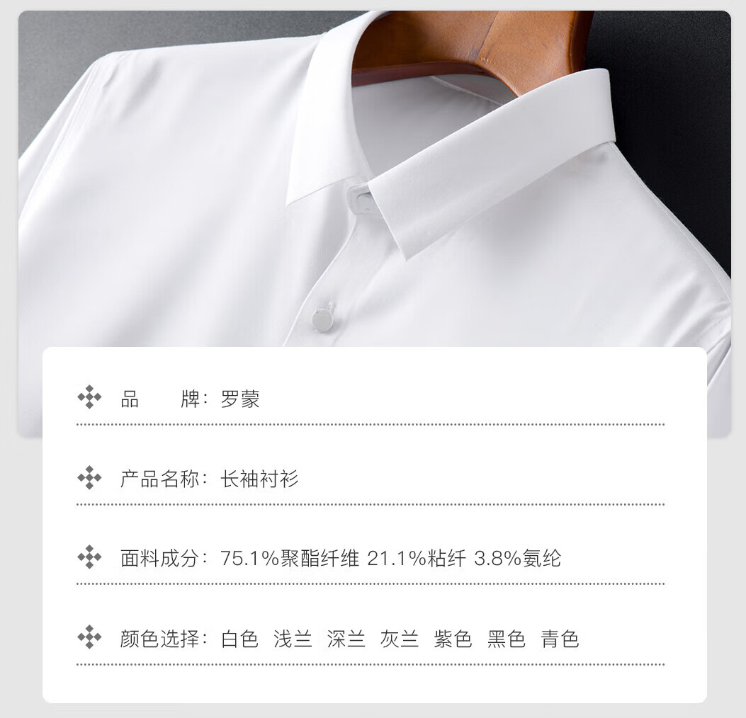 罗蒙免烫衬衣男士无痕冰丝长袖衬衫纯色商务休闲弹力打底爸爸上衣男装