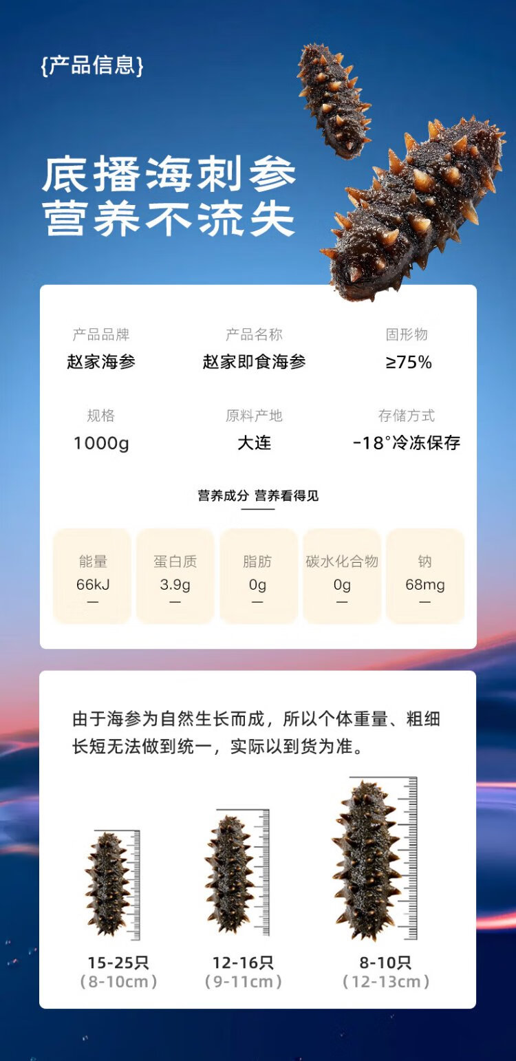 Zhaojia Dalian ready-to-eat sea cucumber base sea cucumber Net content 2Jin Jin equals 0.5kg (26-36 pieces) Straight from the source