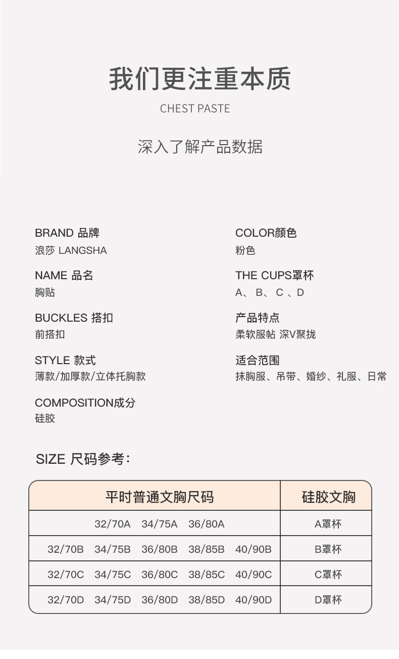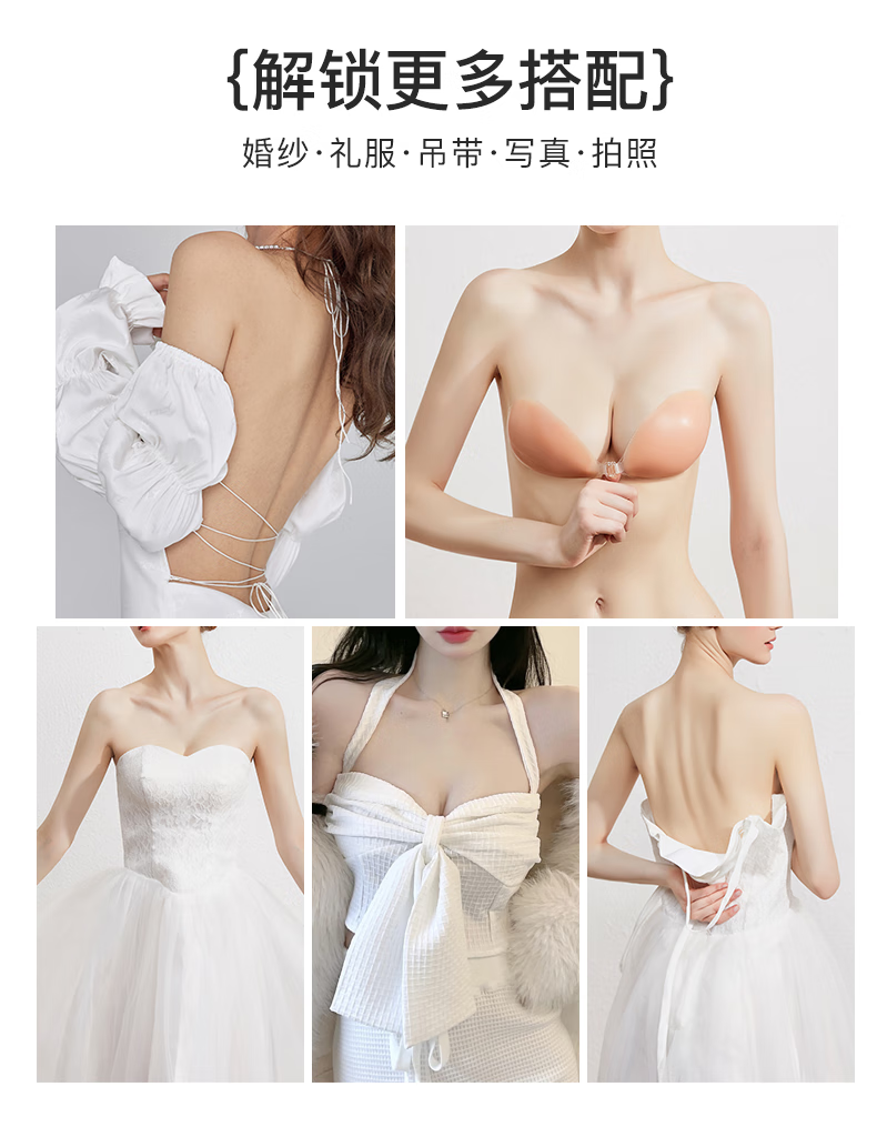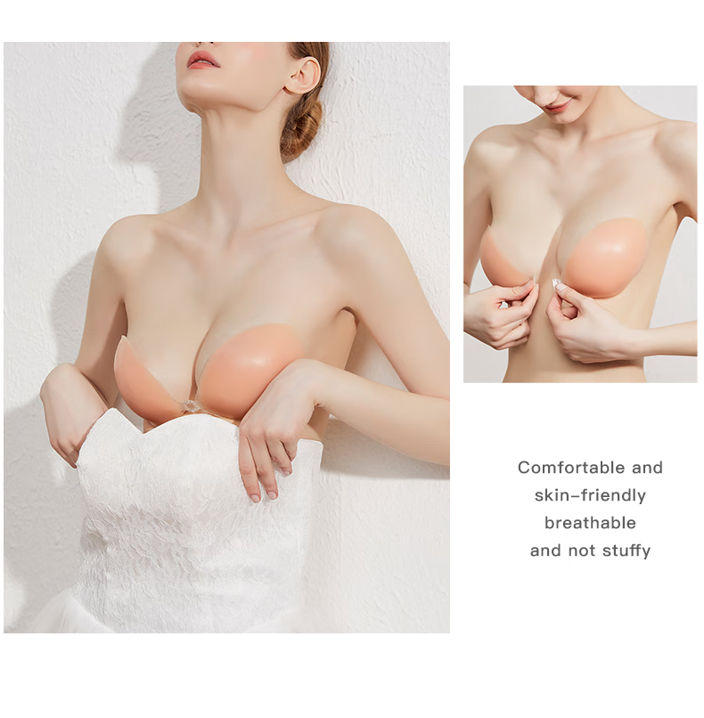 Langsha Silicone Bra Paste Women's Wedding Dress Small Breast Thin Style Wedding Photo Gathering Summer Thin Breathable Suspender Invisible Bra Paste Classic Thin Style B Cup