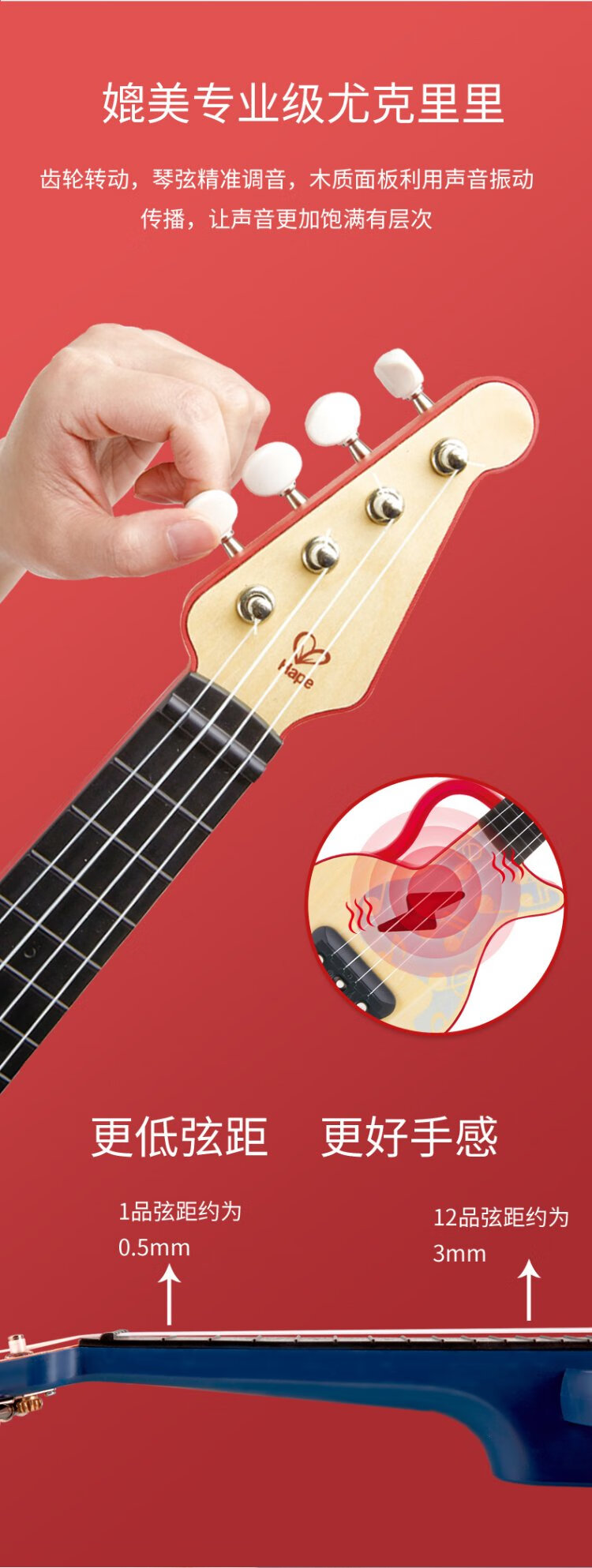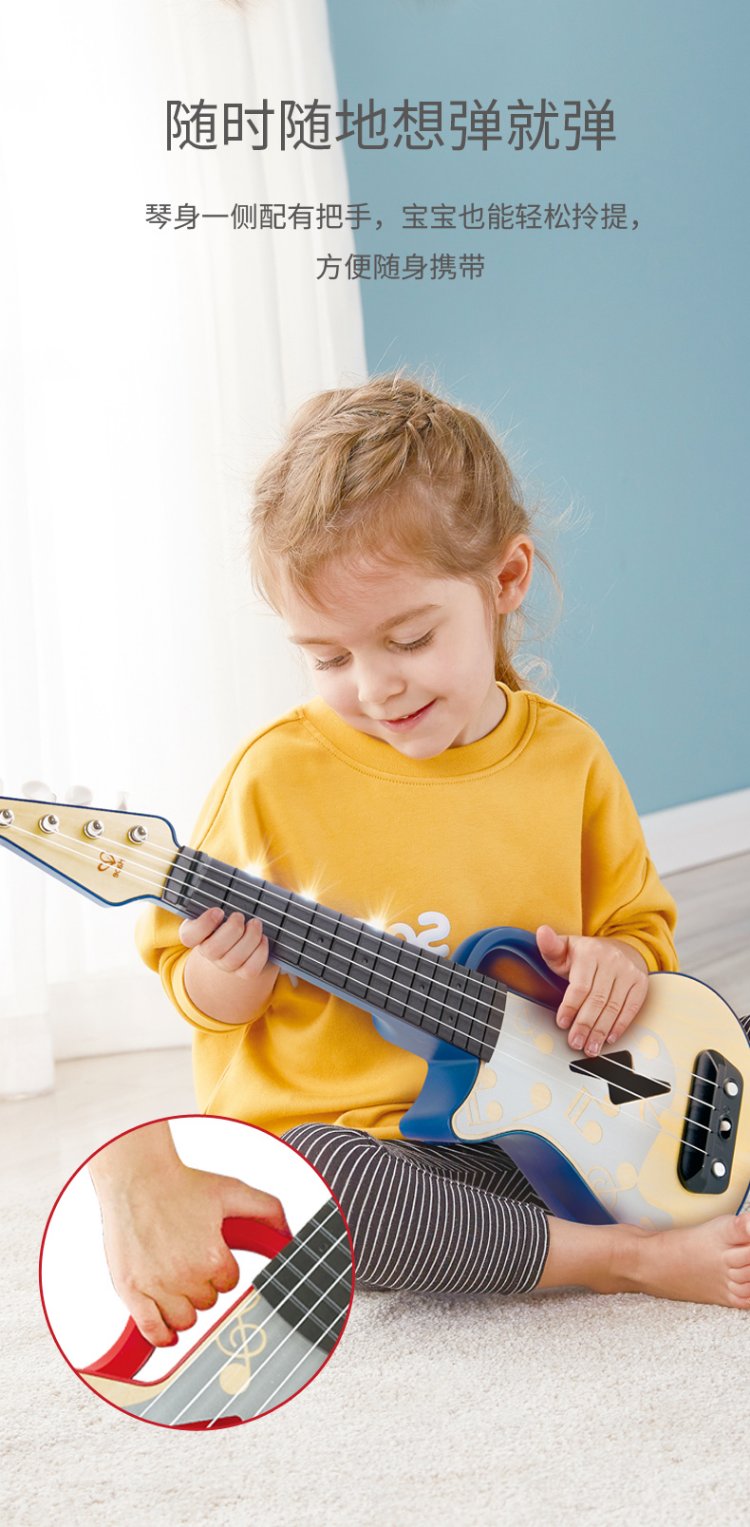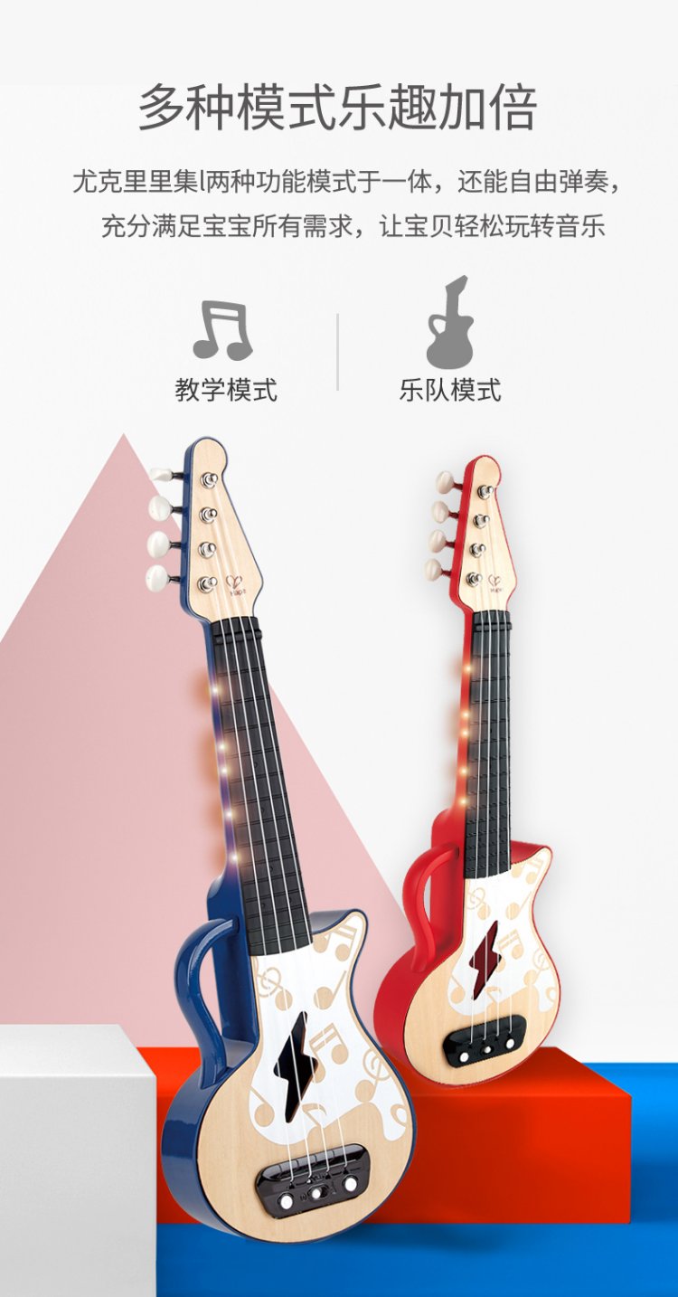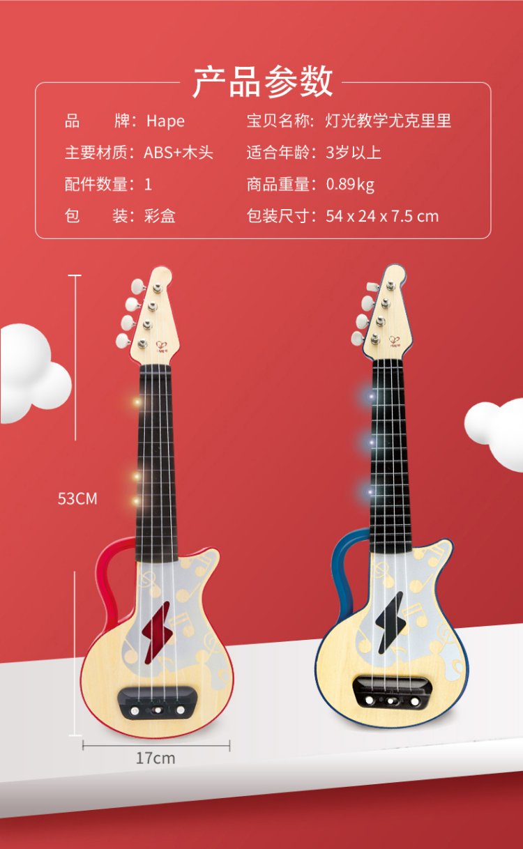 Hape-juguetes musicales para niños, iluminación de clase de iluminación, enseñanza, ukelele, regalo para niños y niñas E0625