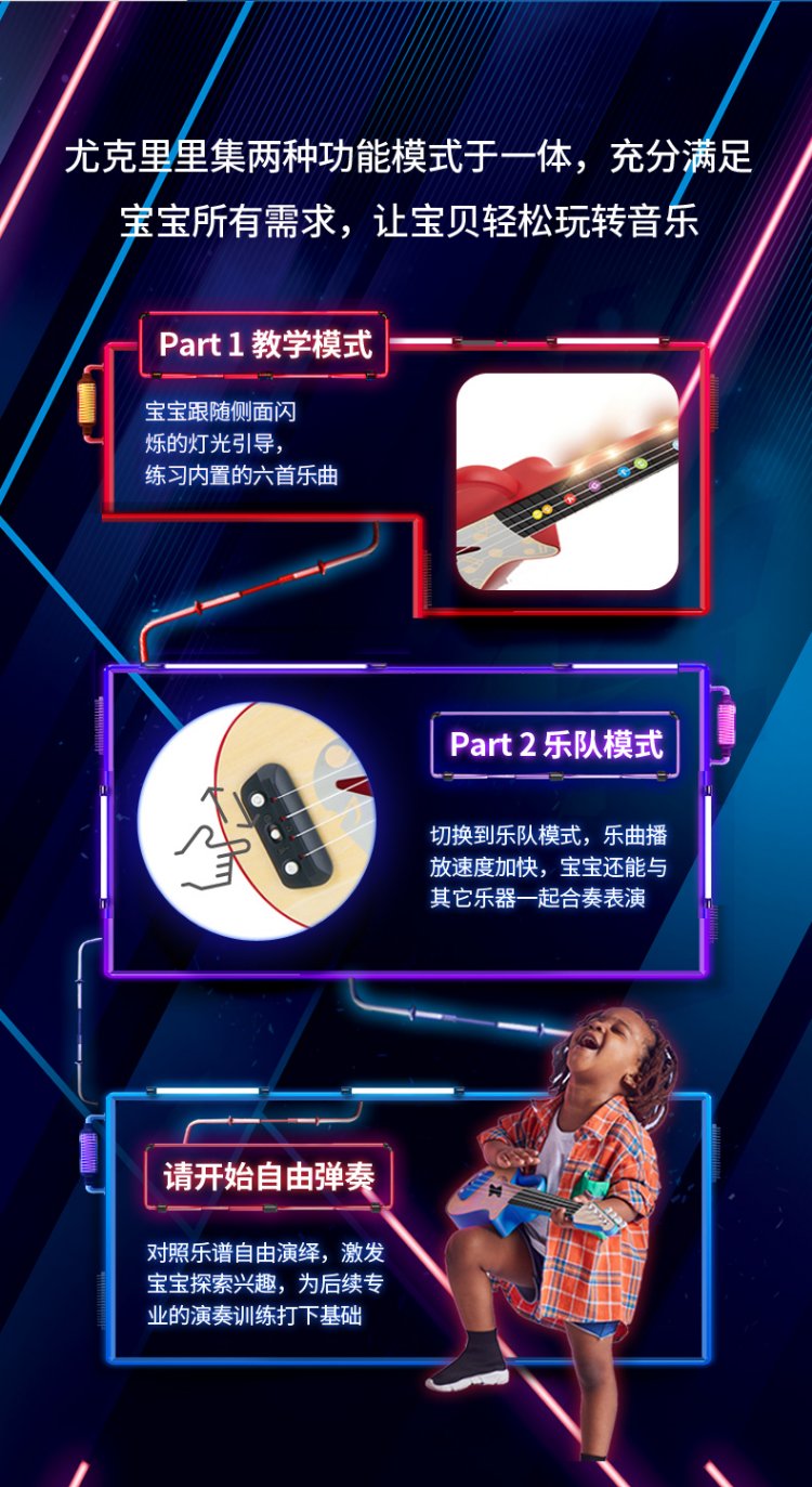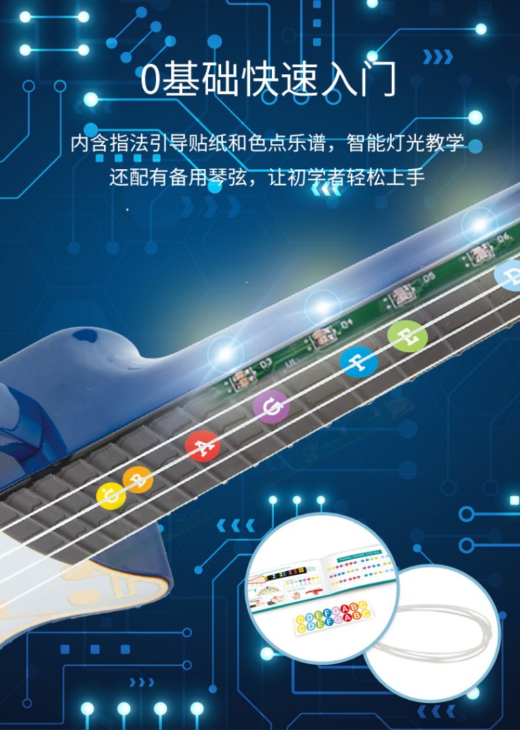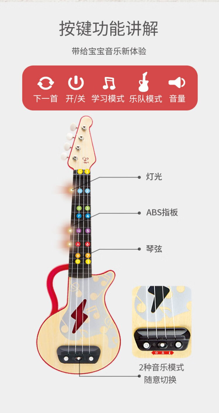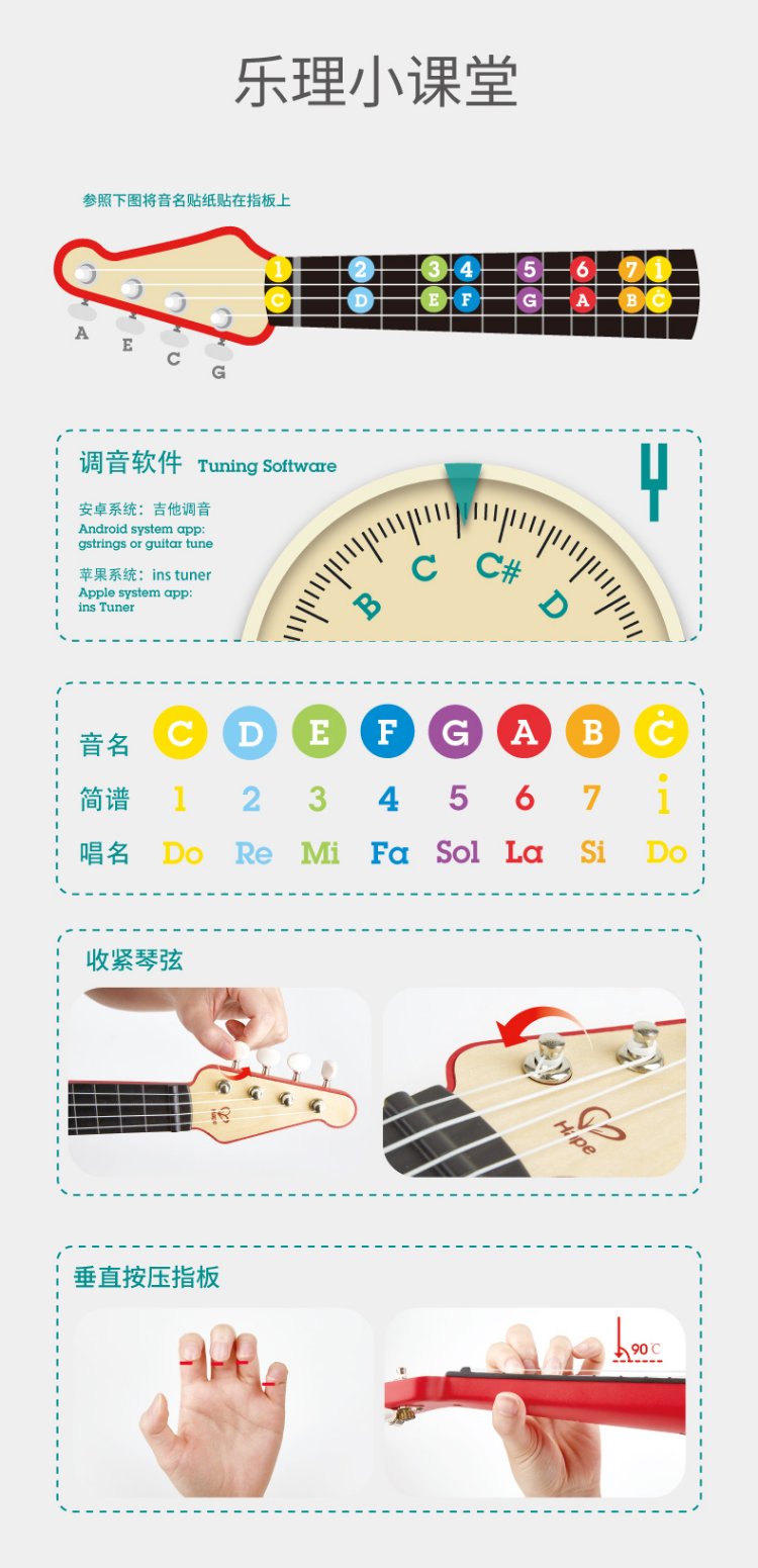 Hape-juguetes musicales para niños, iluminación de clase de iluminación, enseñanza, ukelele, regalo para niños y niñas E0625