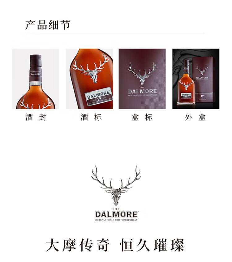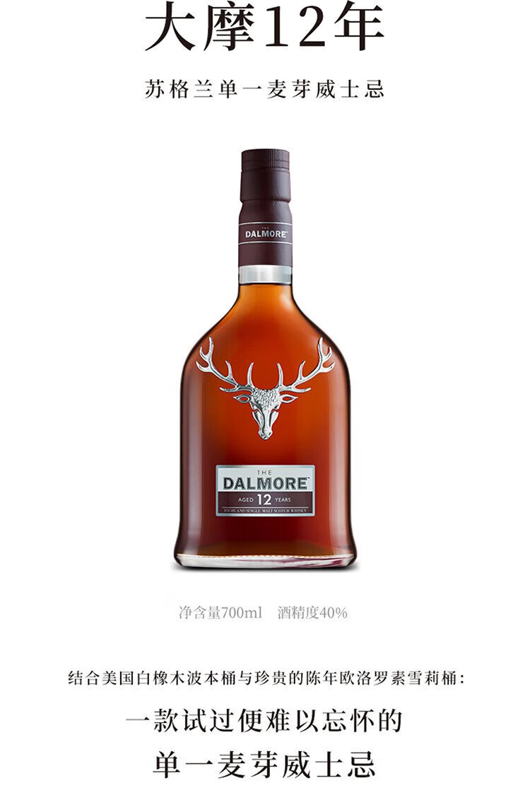 大摩(DALMORE)12年 苏格兰单一麦芽威士忌 洋酒 700ml